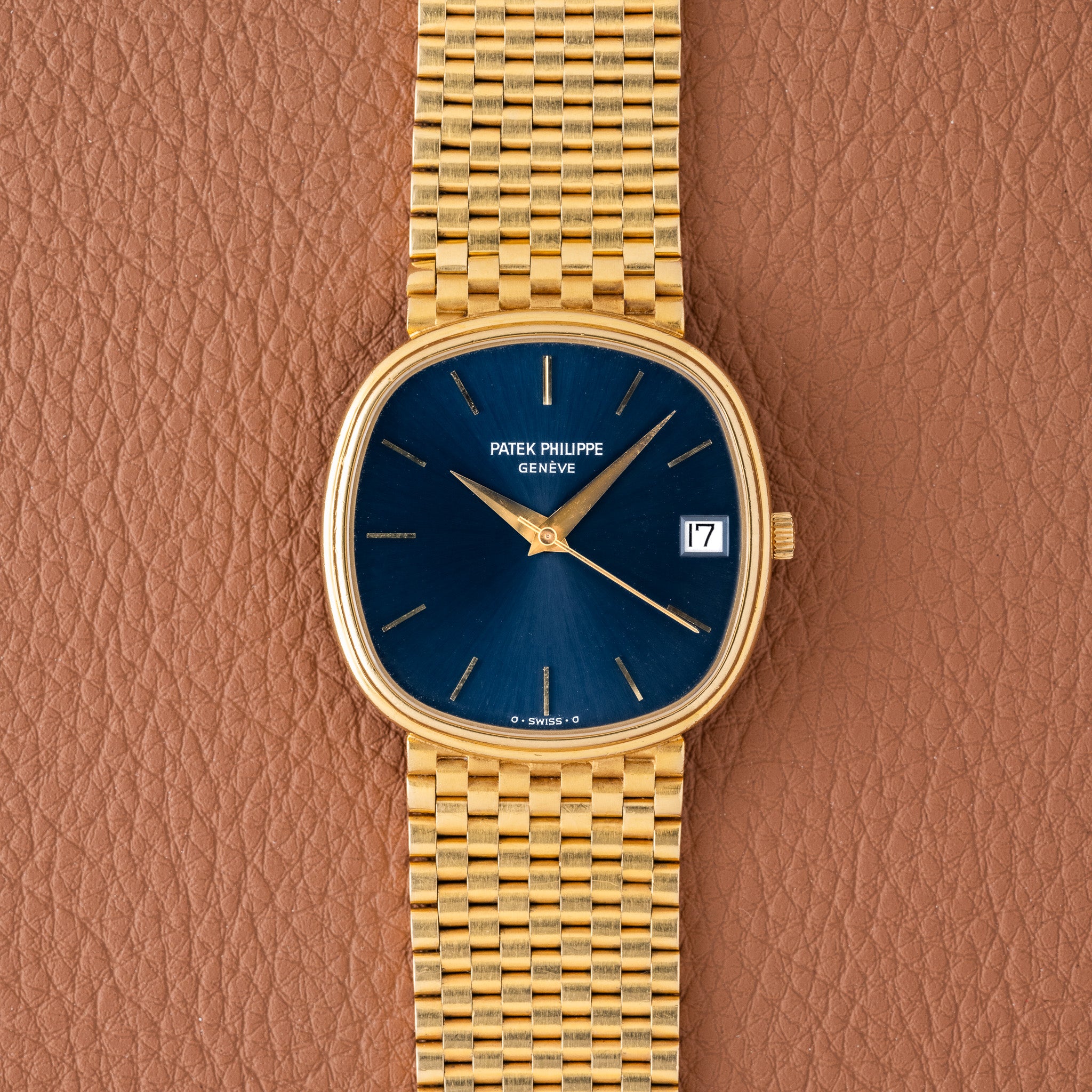 1980s Patek Philippe Blue Jumbo Ellipse With Brick Bracelet (Ref. 3734)