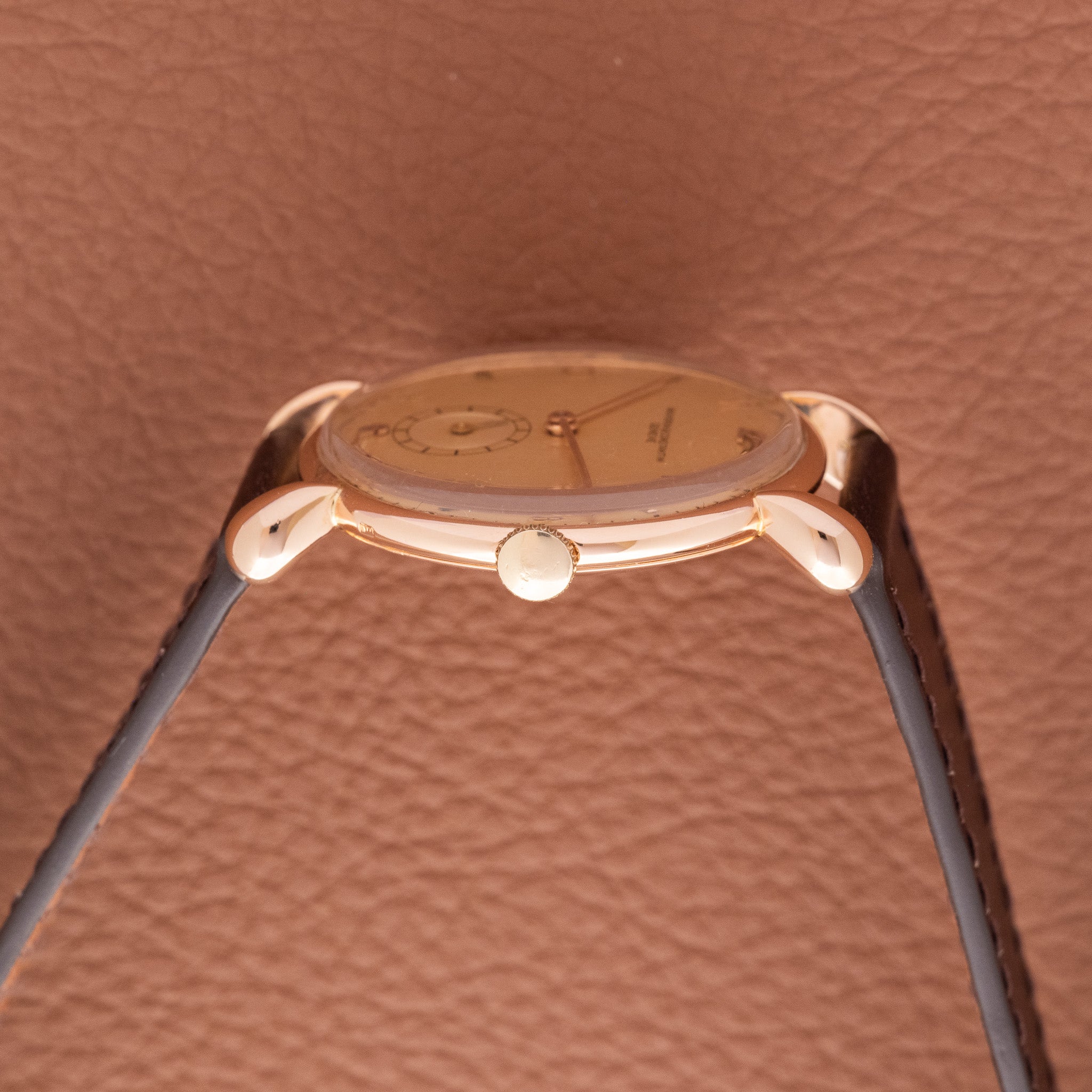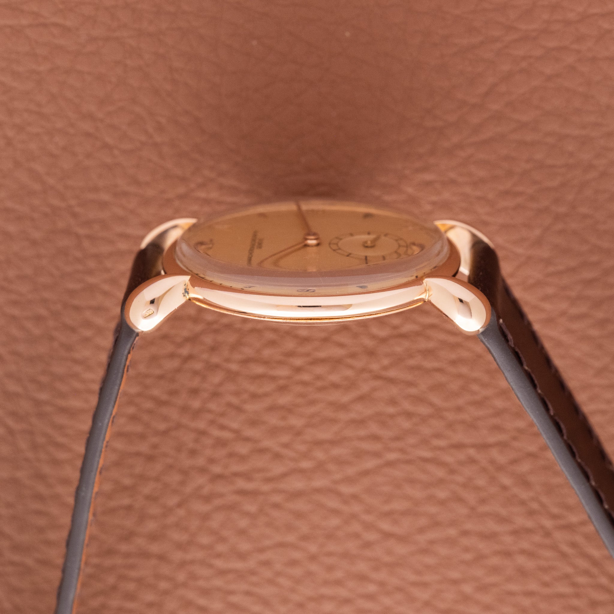 This particular example perfectly embodies that era. The warm rose gold case and matching gold-tone dial evoke quiet luxury, while the sculpted tear-drop lugs demonstrate Vacheron’s meticulous approach to design and proportion. Collectors value watches like this for their sophistication and rarity — the kind of detail-driven craftsmanship that defines Vacheron’s preeminent legacy.