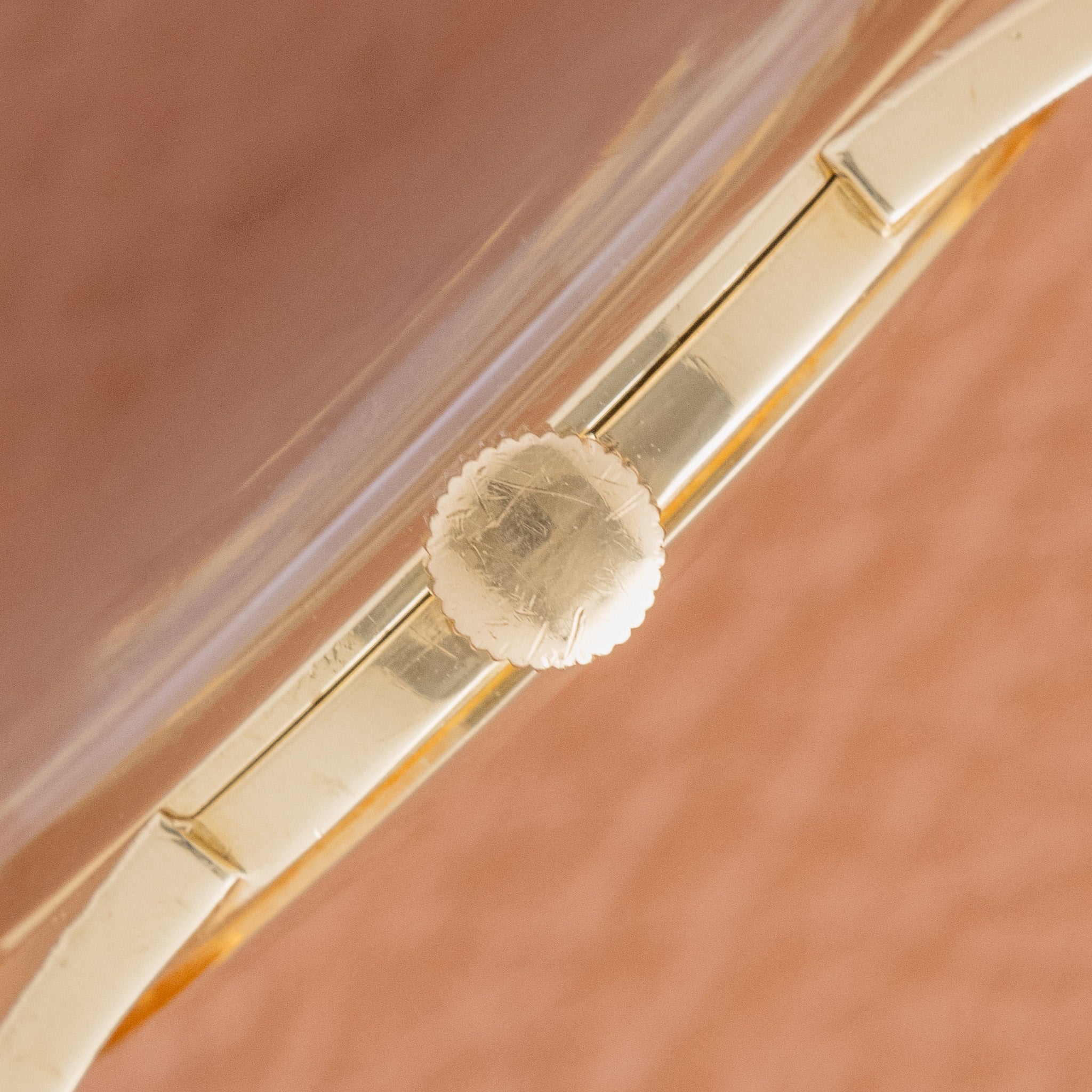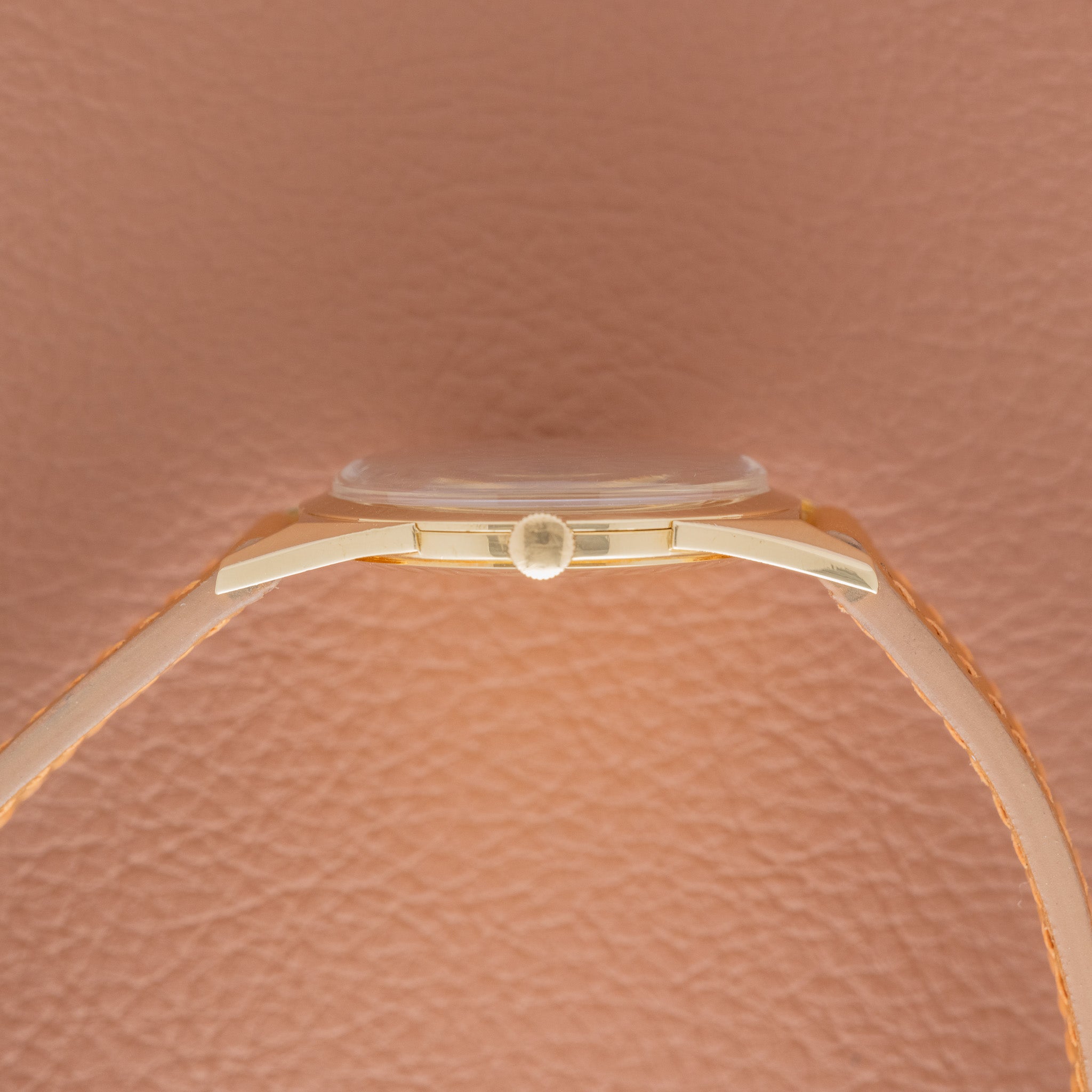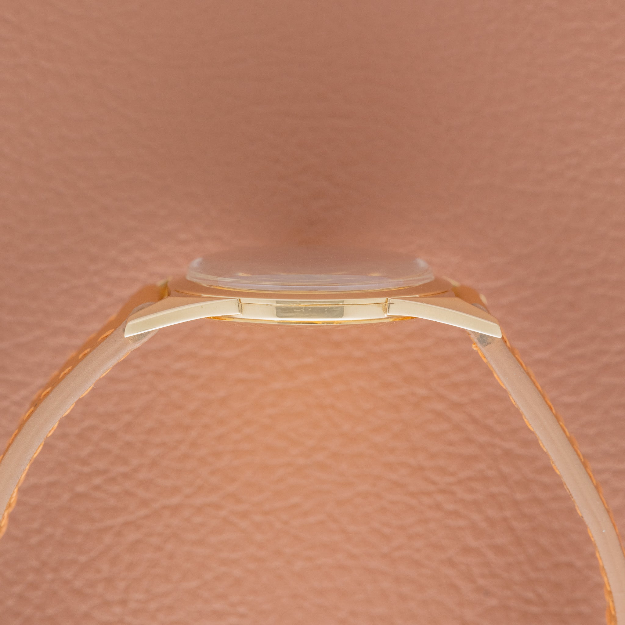 Case: Yellow-gold case appears unpolished, with sharp edges and clearly defined lugs. Hallmarks remain deep and well preserved. Light surface wear consistent with age is visible under close inspection.