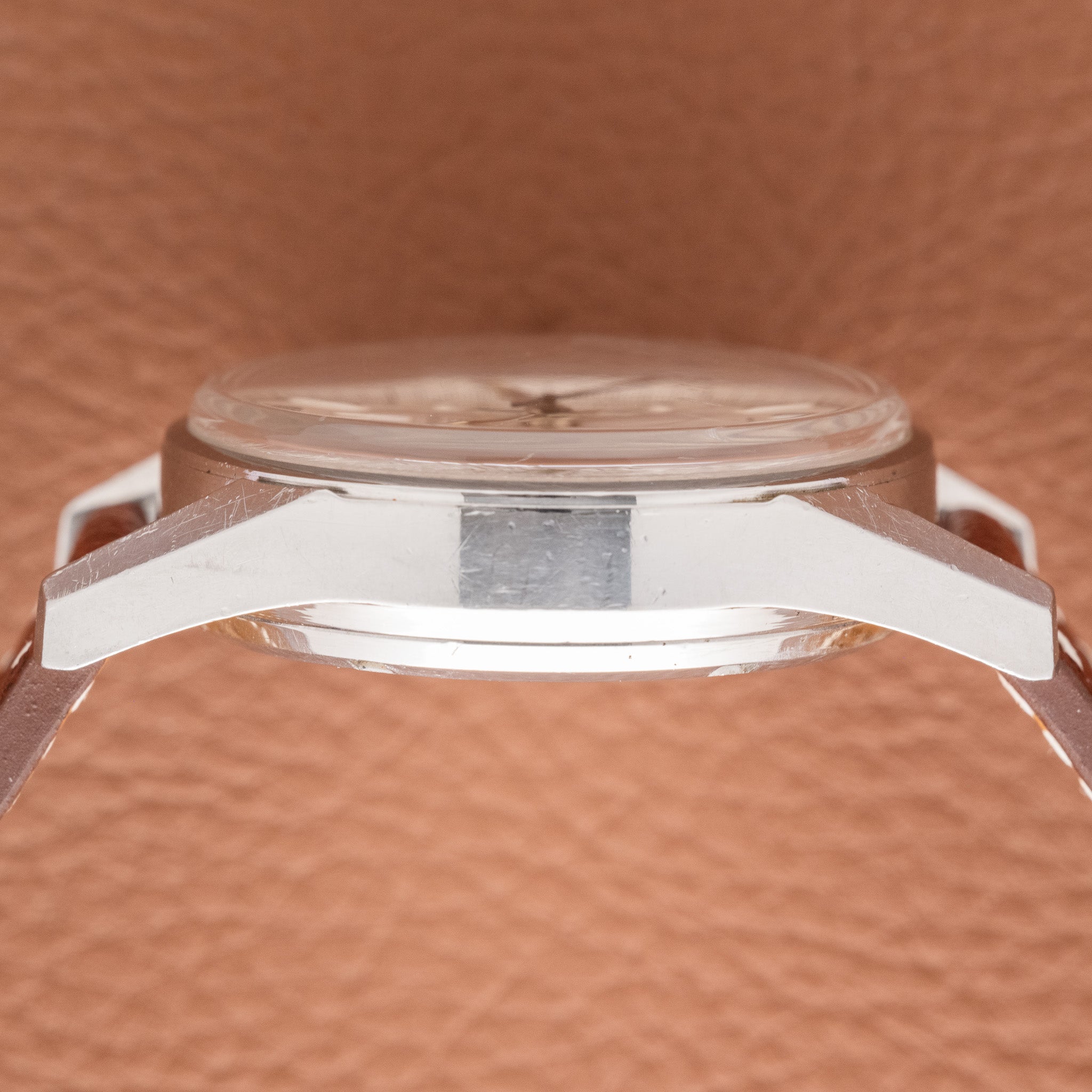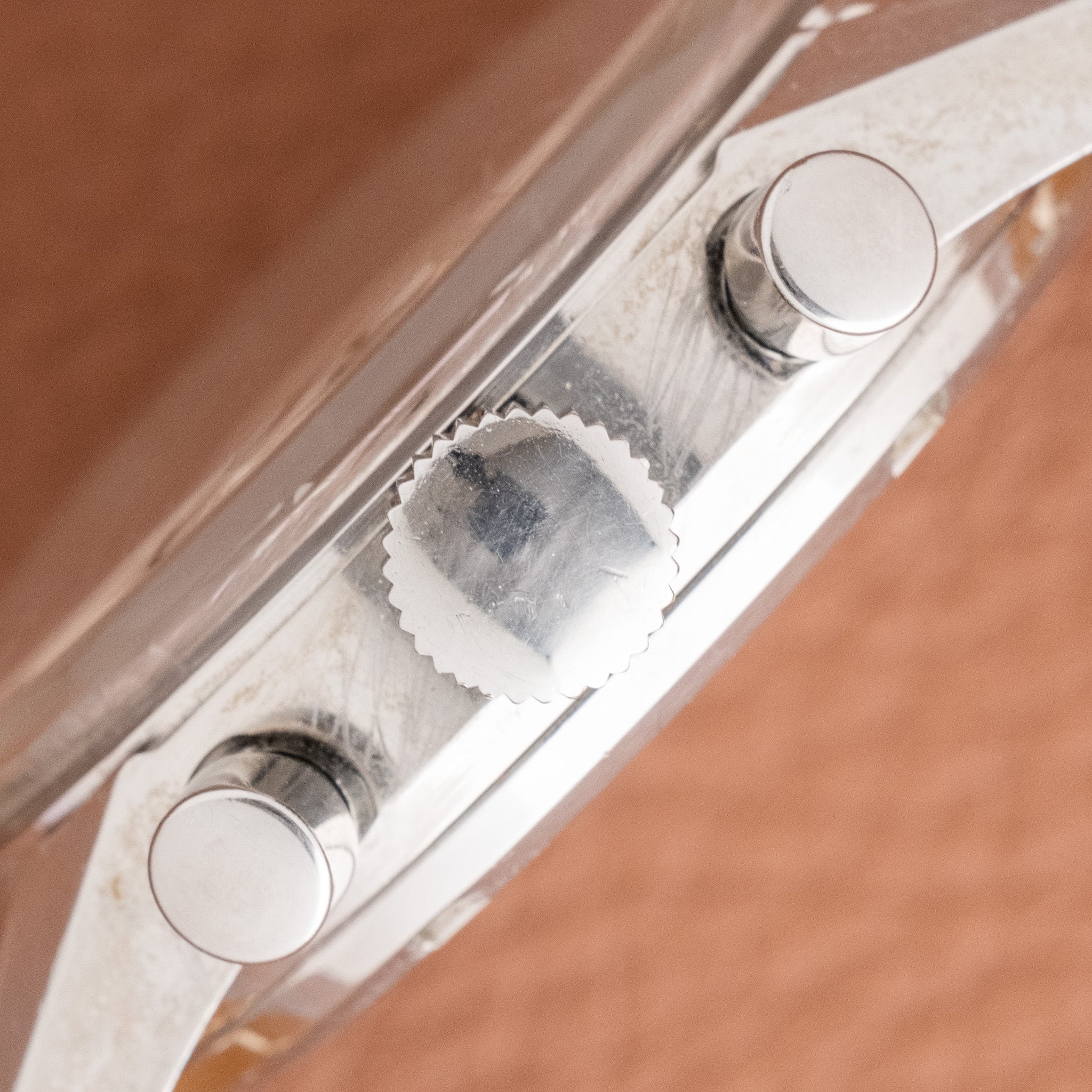 This is a particularly honest example of the Carrera Dato 45. The unpolished 35mm case retains its original shape and presence, and the silver dial has aged gracefully while remaining clear and legible. The date at 12 o’clock gives the watch its own identity within the Carrera lineup and makes it stand out without compromising balance. It wears exactly as a vintage Carrera should, understated, purposeful, and full of character.