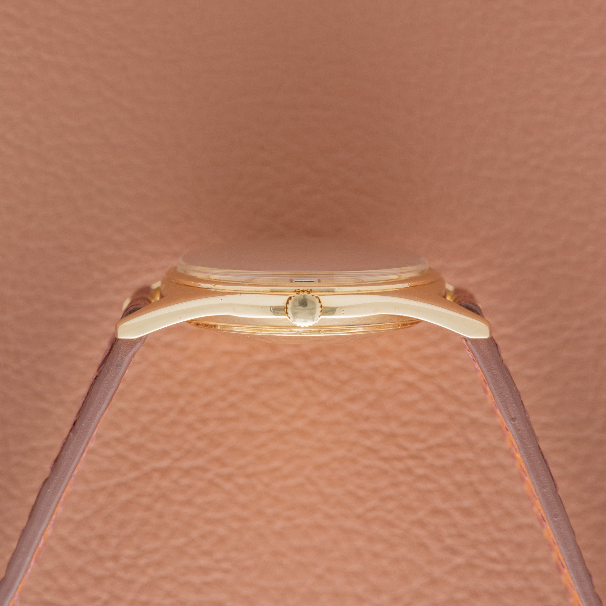 Case: Yellow gold case remains in strong overall condition with light surface wear and minor hairline marks visible under close inspection. The lugs retain crisp definition, and the overall profile remains well preserved.