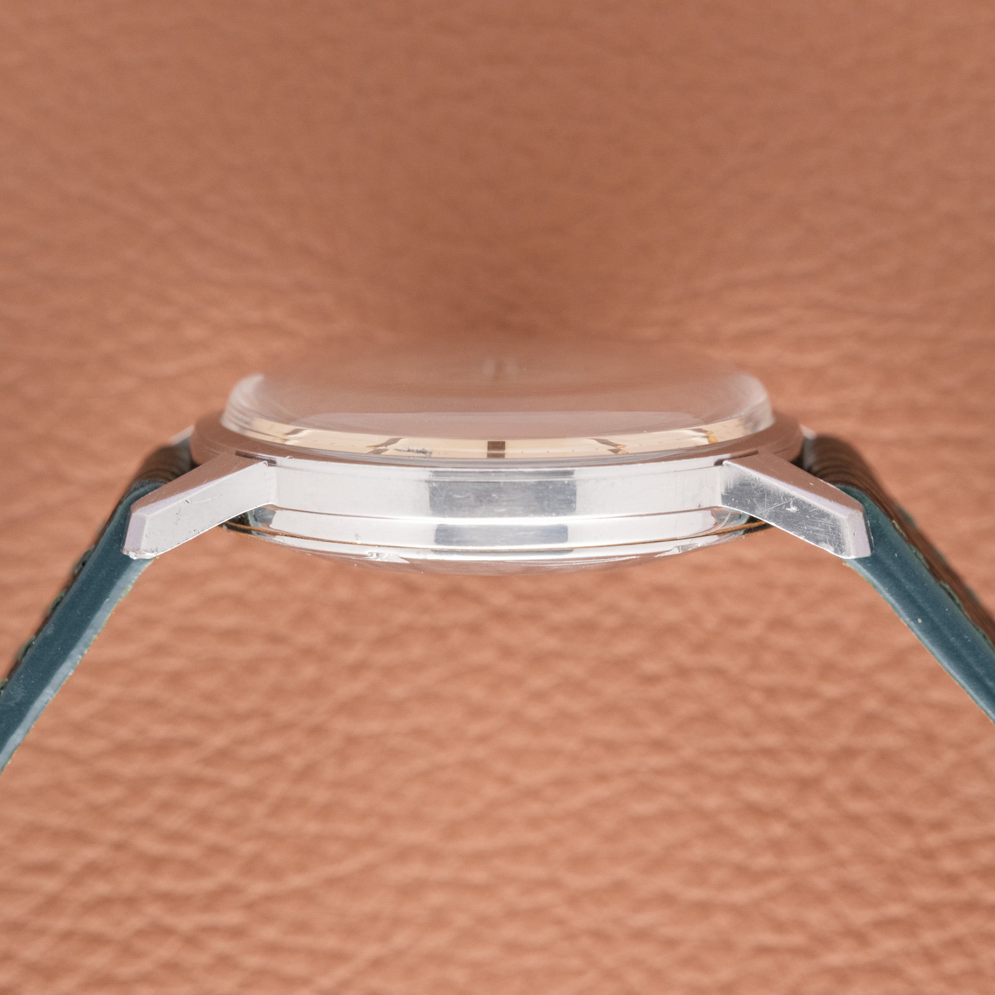 This example dates to 1963 and features the warm silver dial variant with a subtle vertical brushed pinstripe finish. That dial treatment gives the watch depth and character without being overt, catching light differently throughout the day. The clean baton markers and slim hands reflect Omega’s restrained design language of the era. Watches like this were produced in large numbers, but finding one that has survived with its original surfaces intact and without heavy polishing is becoming increasingly difficult, making condition the defining factor today.