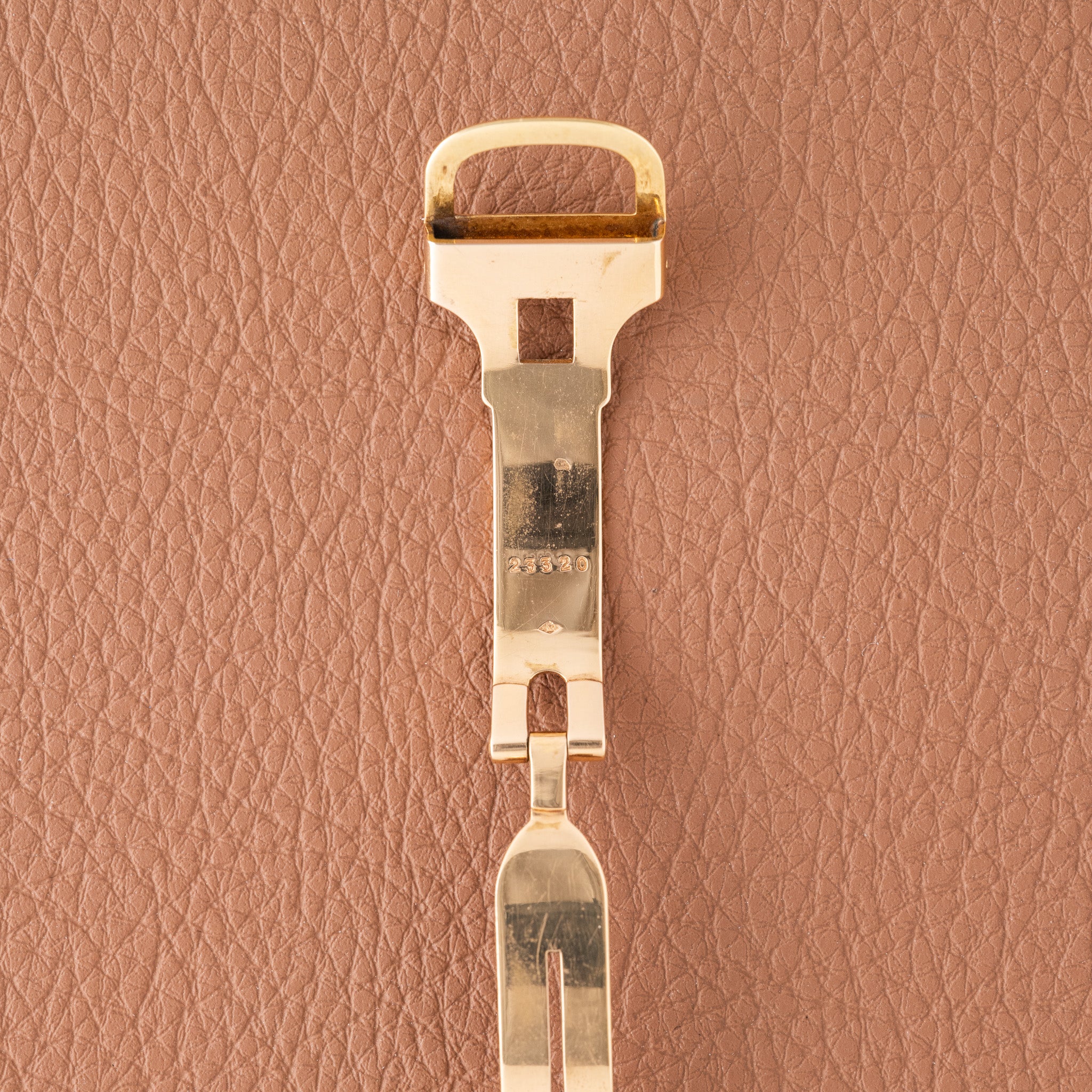 Buckle/Clasp: Original solid gold deployant shows light surface wear and functions properly.
