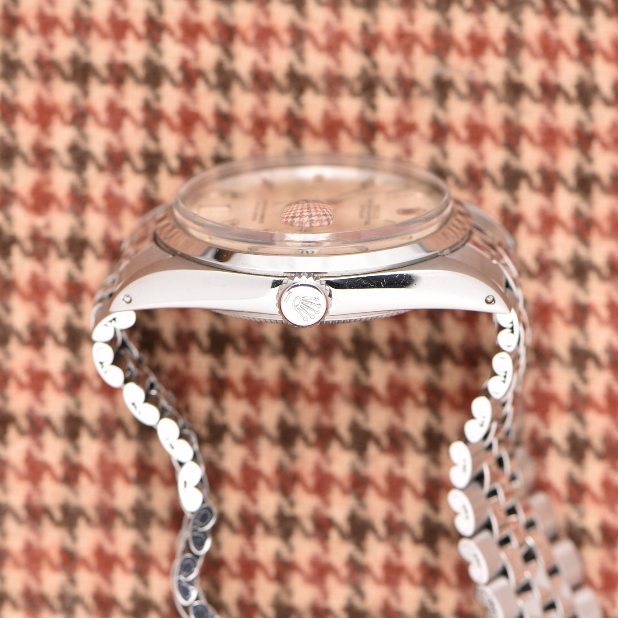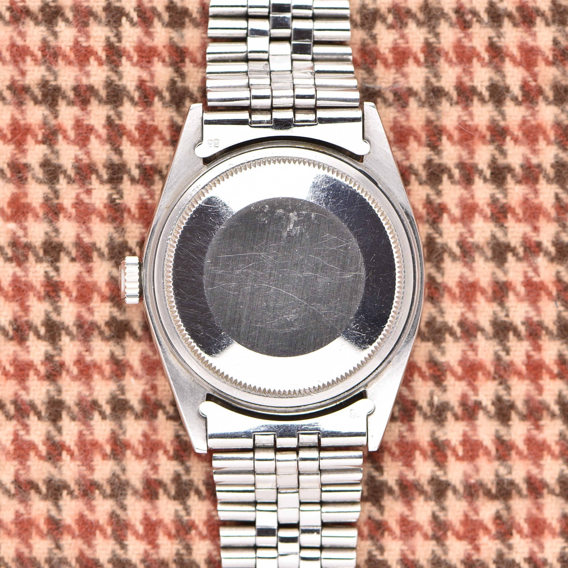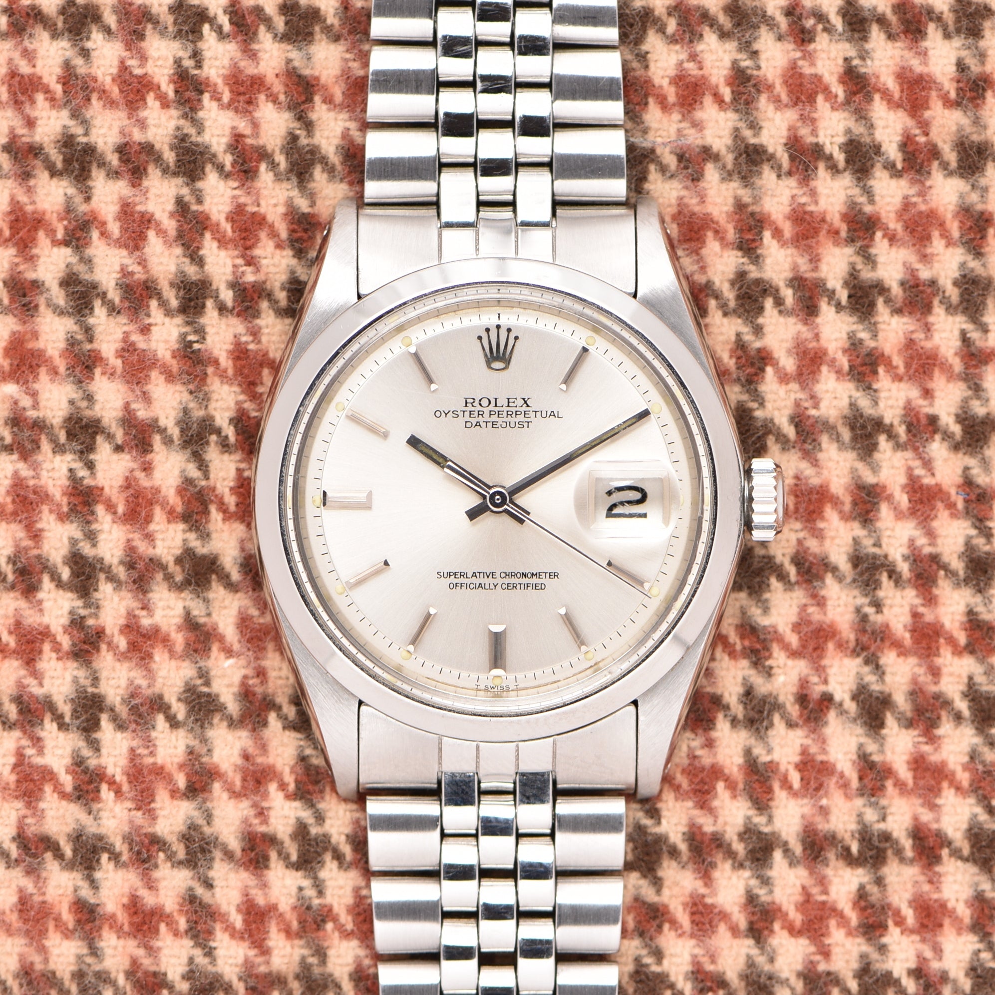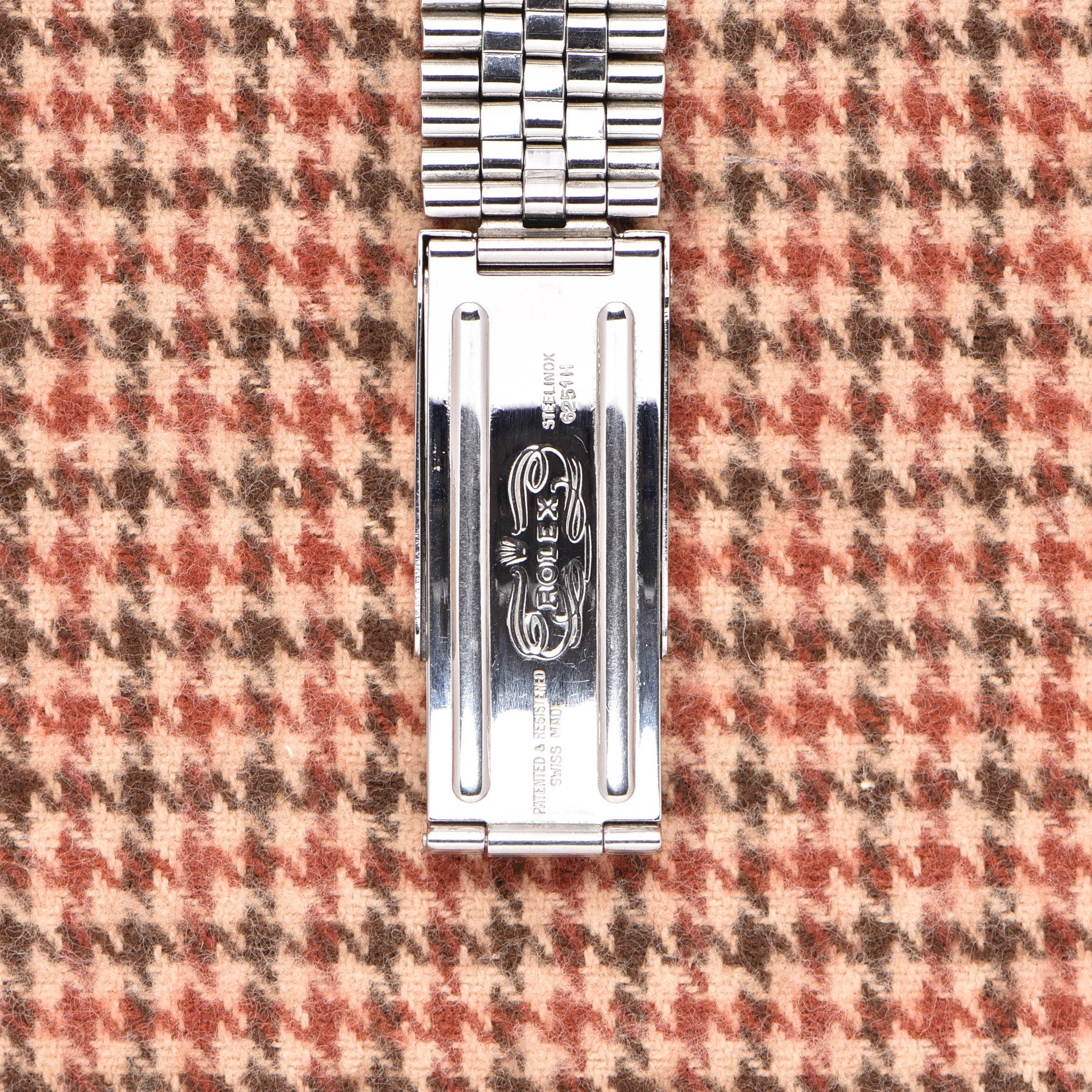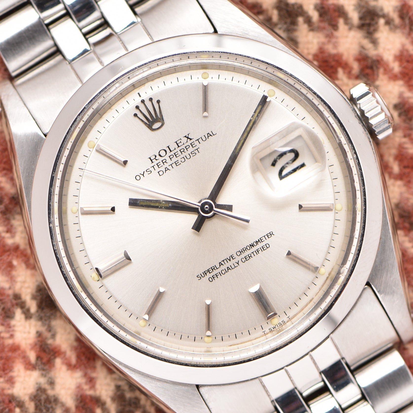 This 1600 is a more uncommon reference for the four-digit Datejust. The 0 at the end of the reference number confirms that the watch has a factory smooth bezel.