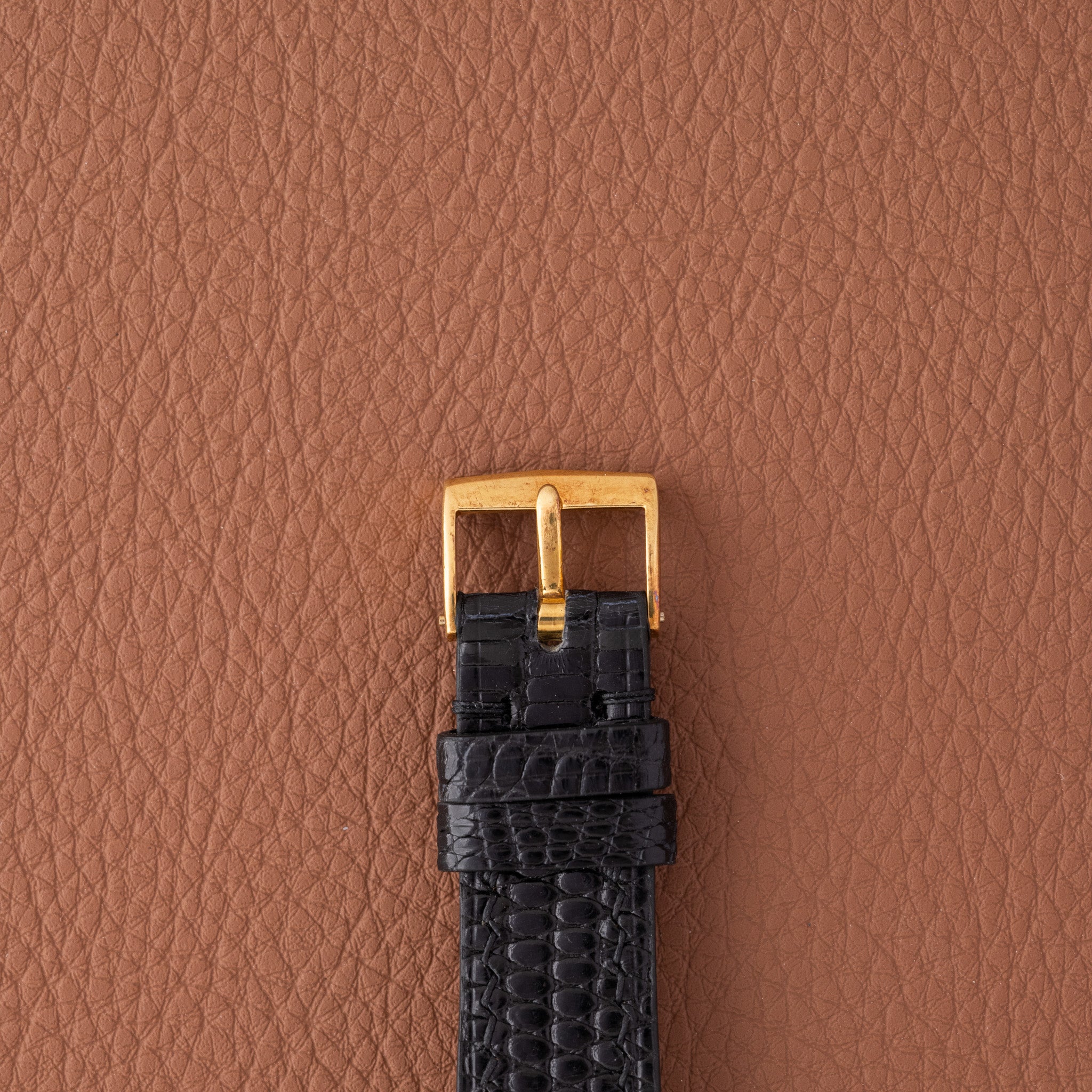 Buckle: Generic yellow gold-tone buckle in new condition.