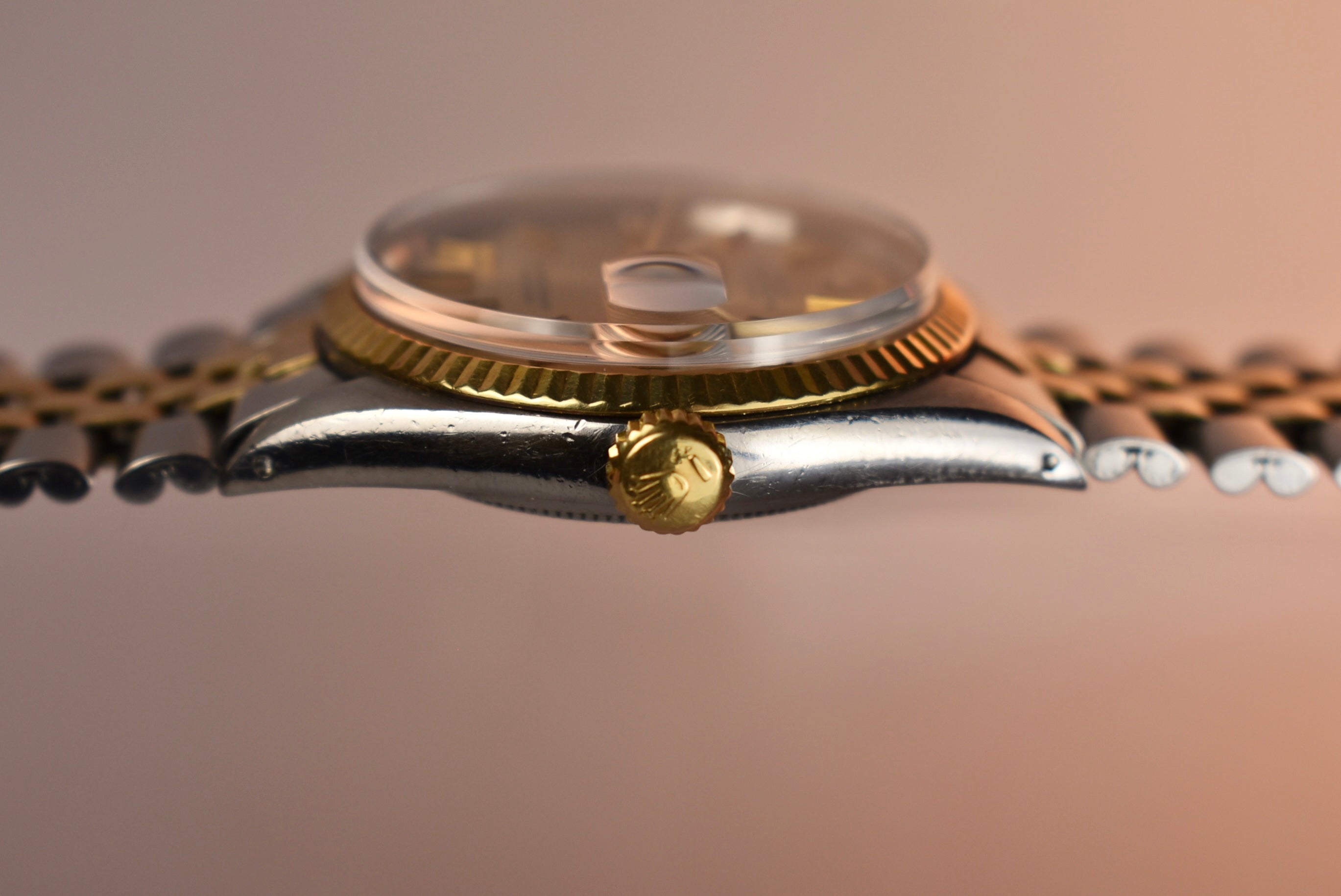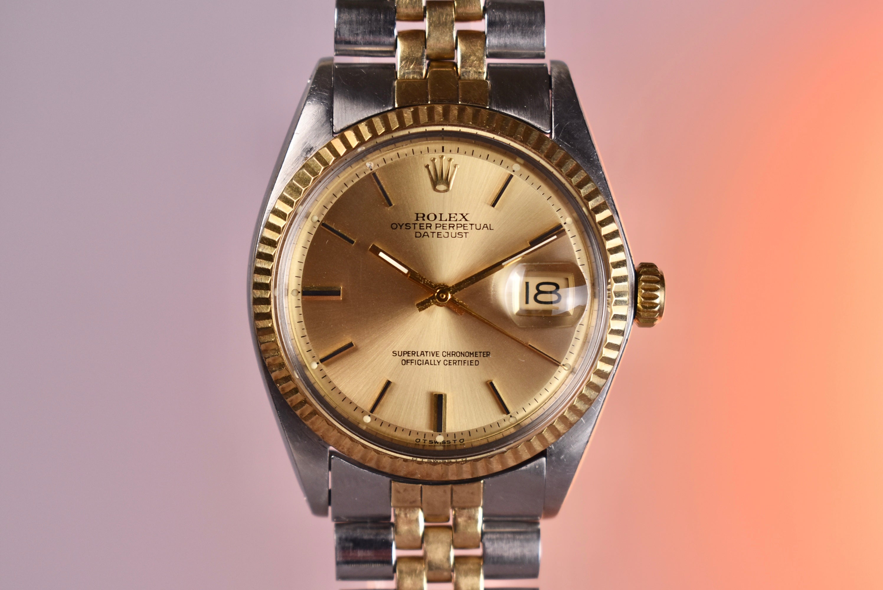 A Two-tone Datejust is iconic but with a 1601 you get so much more. A vintage pie pan dial and acrylic crystal are what make the 1601 so unique. This specific Datejust features a collectible sigma dial in fantastic condition. You can't beat a watch look this for something classic and versatile.