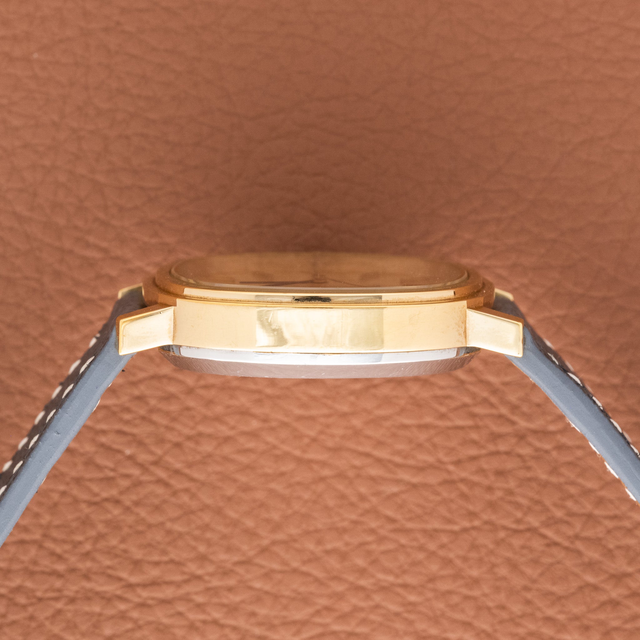 This reference features a gold-plated steel case, stepped bezel, and a clean champagne dial that typifies the brand’s late 1970s aesthetic. It runs on Omega’s automatic caliber family from the same era, known for durability and consistent timekeeping. This piece represents the bridge between Omega’s mid-century heritage and the transitional period that led toward quartz technology while retaining the mechanical craftsmanship collectors value today.