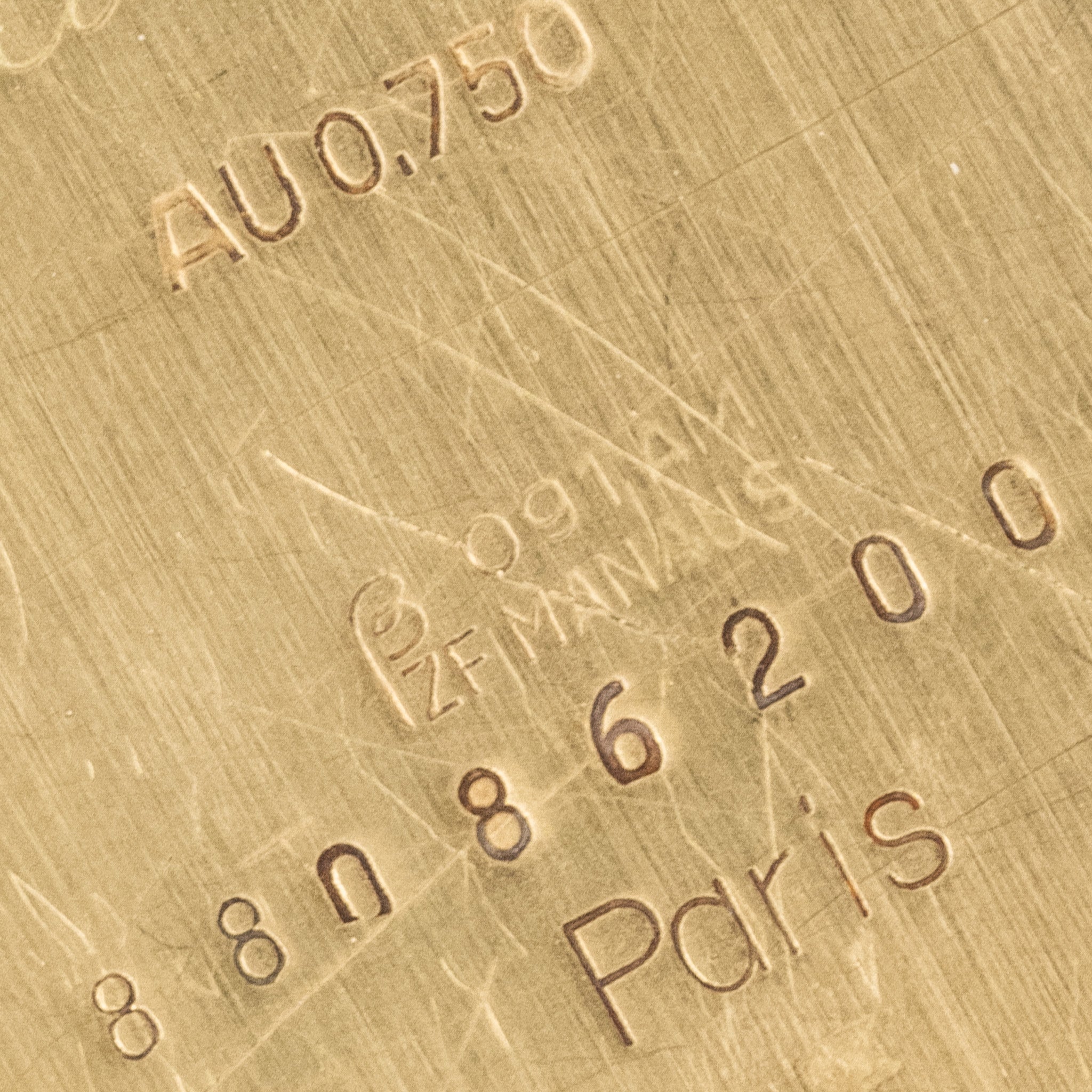 This example is a late 1970s mechanical Tank Louis in solid 18k yellow gold. It carries all of the classic details that make the model what it is: a white dial with black Roman numerals, blued steel hands, and a cabochon sapphire crown. The watch is powered by the manual wind caliber 2512 signed Cartier. The case is hallmarked, numbered, and displays export markings that indicate it was delivered to the Brazilian market. It also features a Swiss signed dial, which is consistent with many Cartier watches exported to Brazil during this period. The reference number on the case back was adjusted for export, a known quirk of vintage Cartier production.