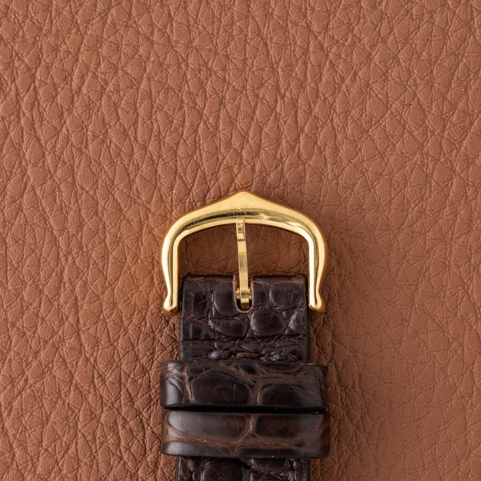 Buckle/Clasp: Period gold-plated Cartier pin buckle