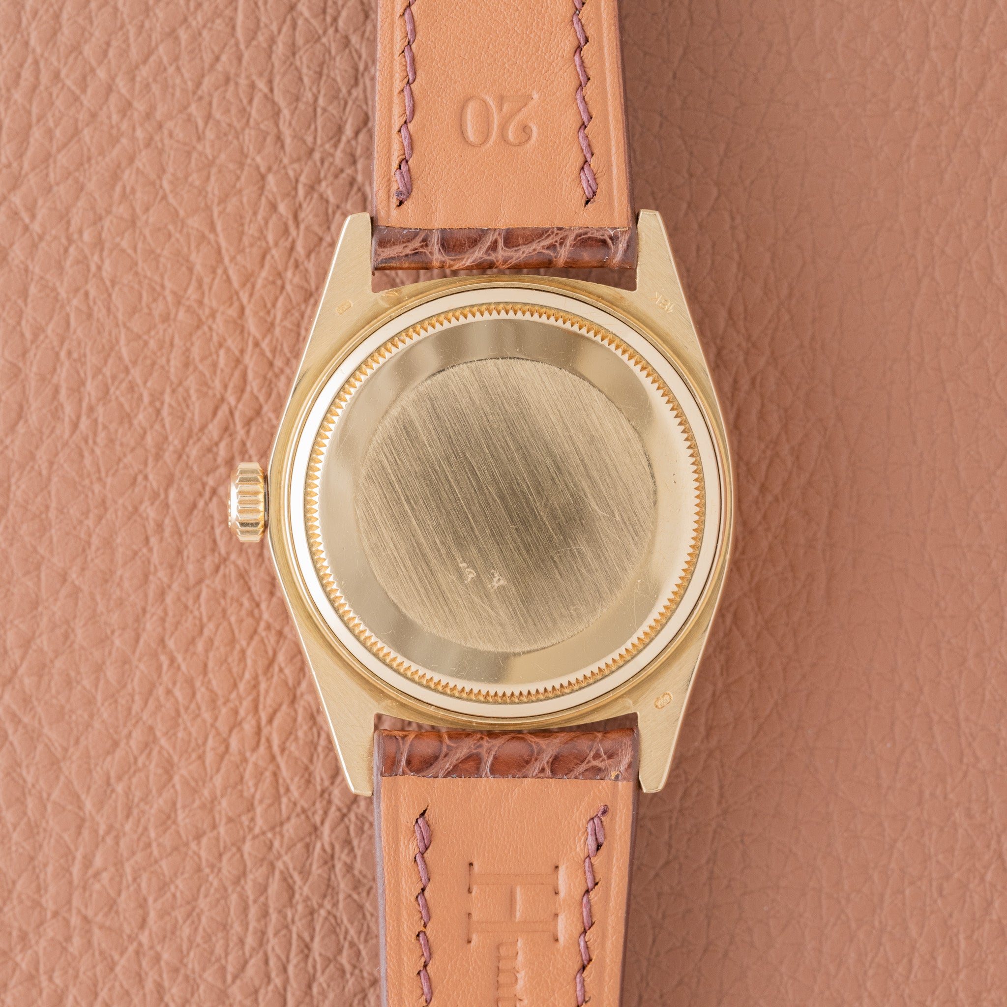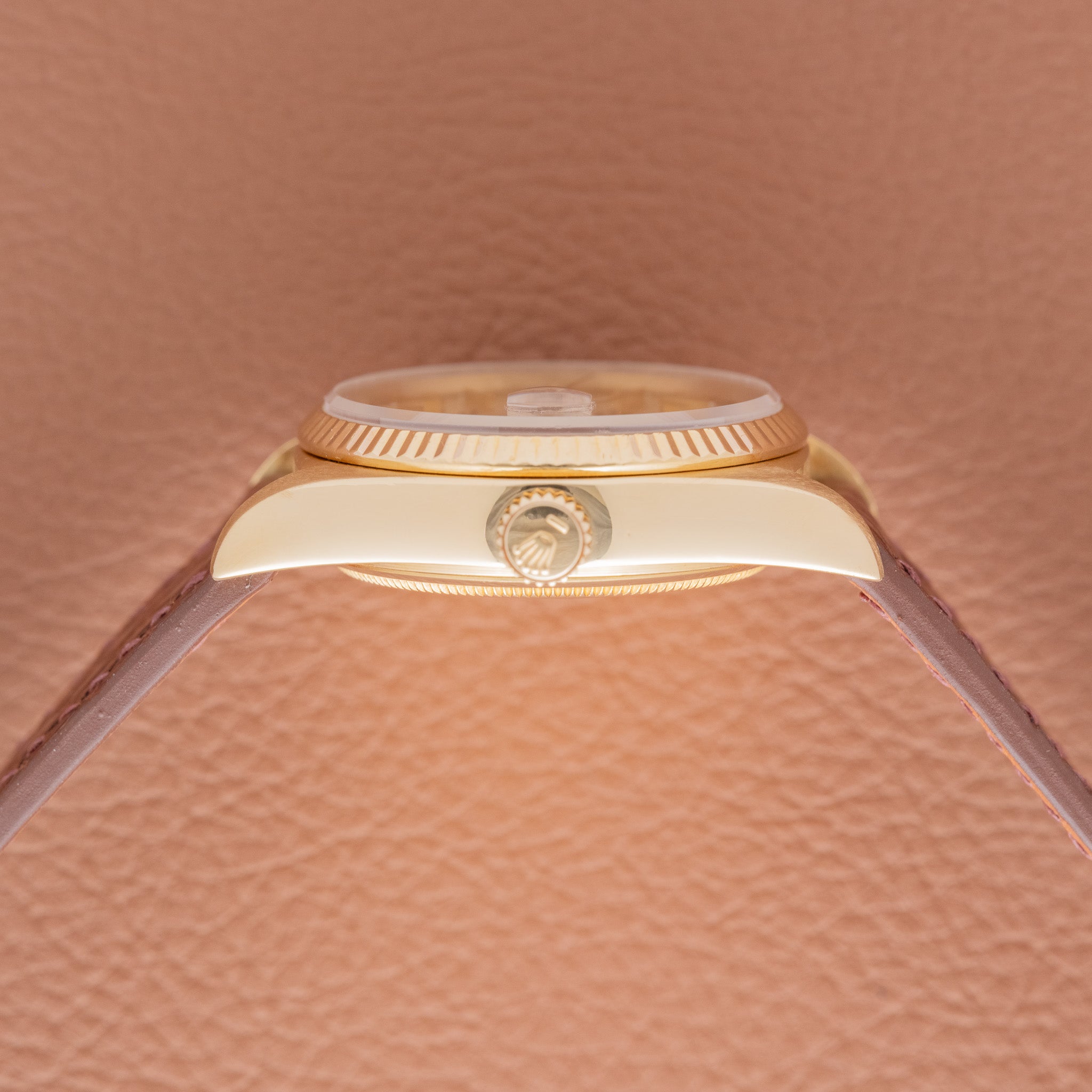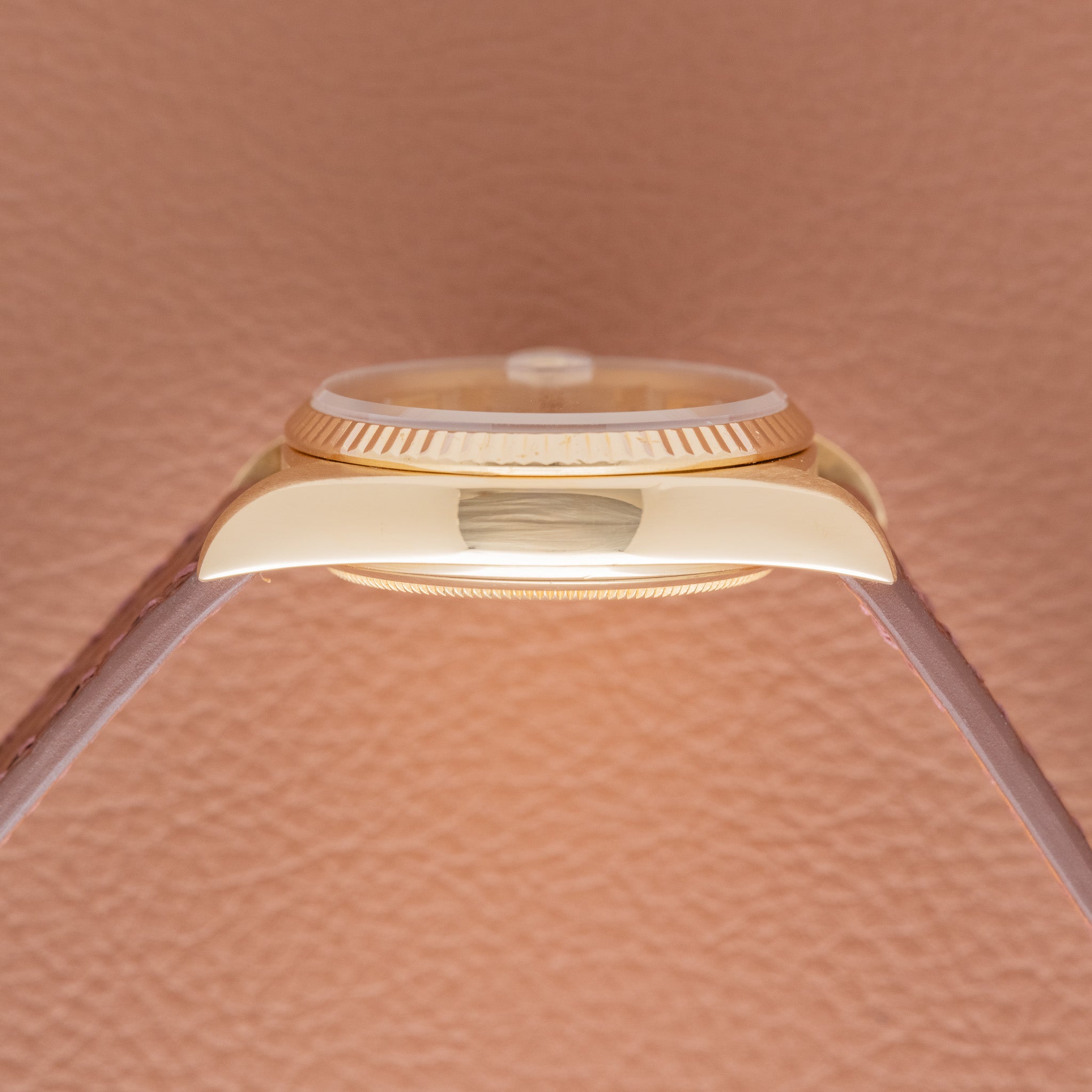 The 18038 is one of the most wearable vintage Day-Dates. The sapphire crystal and quickset date make it far more practical than earlier references, while the 36mm yellow gold case retains the presence and warmth that defines the model. On leather, it takes on a more understated and versatile character without losing its identity. This is a strong option for someone who wants a classic Day-Date that fits seamlessly into regular rotation.