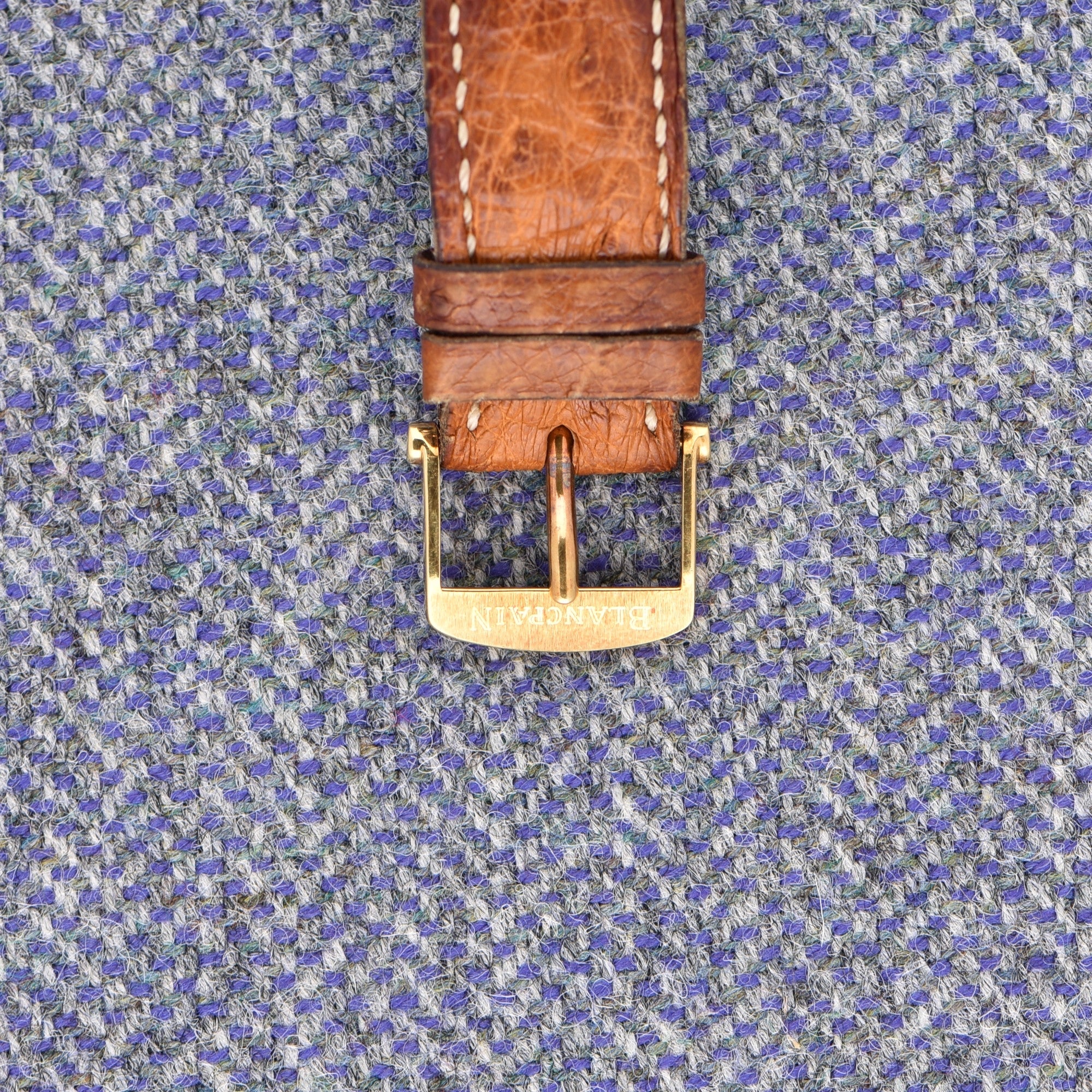 Rarity aside, the condition of this Blancpain is as you would suspect. A well-preserved Blancpain with its original strap, 18K buckle, booklets, Tiffany stamped box, and pusher. The ostrich Blancpain strap has noticeable wear but is still wearable. The case is nice and clean with no major dents as seen in the photos. The stark white dial is nice and clean with gold hour markers.