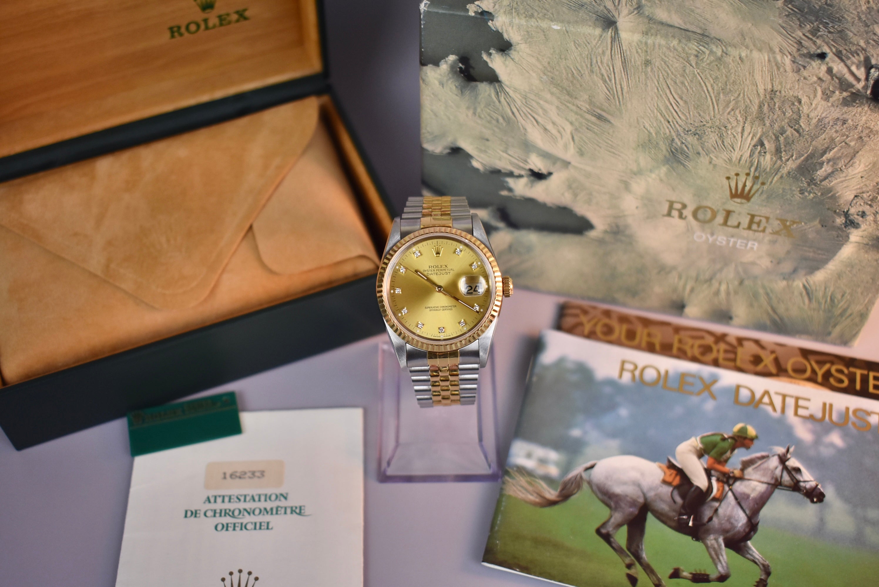 1993 Rolex Datejust 16233 Diamond Dial Box and Papers