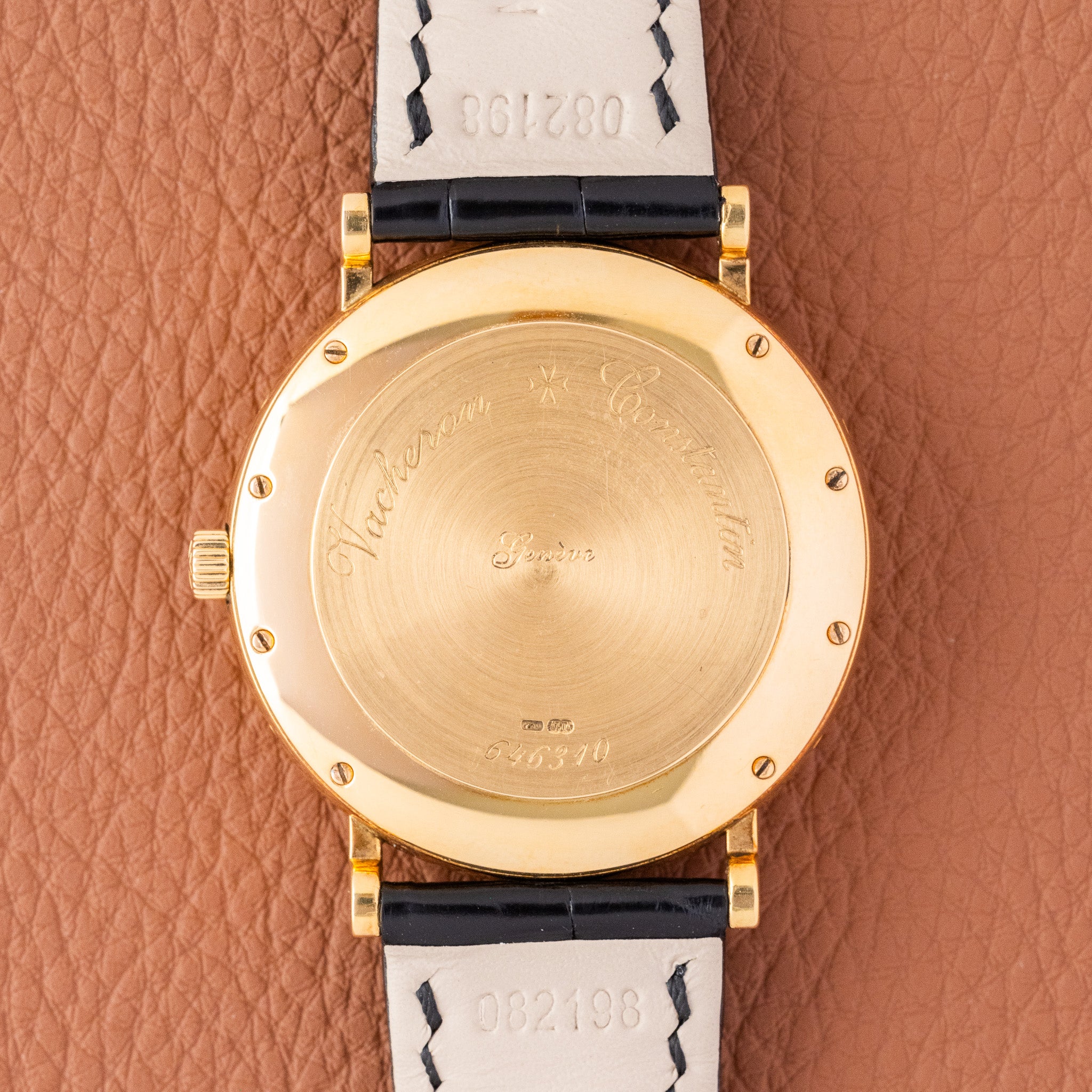 The Ref. 47052 from the 1990s highlights this philosophy with a full calendar and moonphase display — a complication historically associated with refined dress watches. Its guilloché dial and applied gold markers underscore the hand-finishing traditions that distinguish Vacheron Constantin from its peers, while its automatic movement reflects the house’s balance of mechanical precision and wearability.