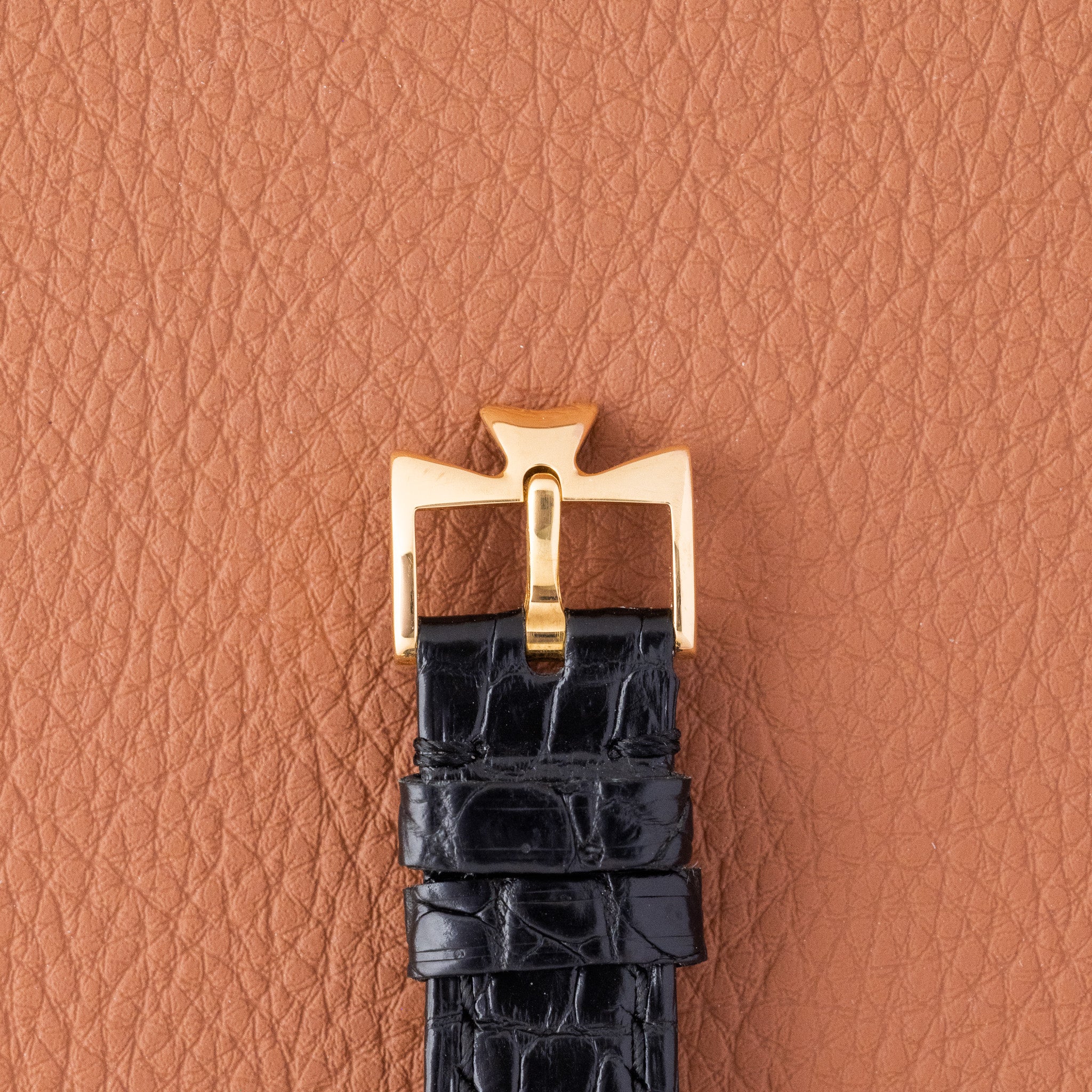 What makes this watch so appealing is its balance of subtlety and complexity. The guilloché silver dial glows warmly, while the triple calendar and moonphase add quiet sophistication without overwhelming the design. It’s a piece that speaks to Vacheron Constantin’s philosophy: refined complications executed with restraint. The fact that the original strap and buckle remain with the watch only enhances its appeal.
