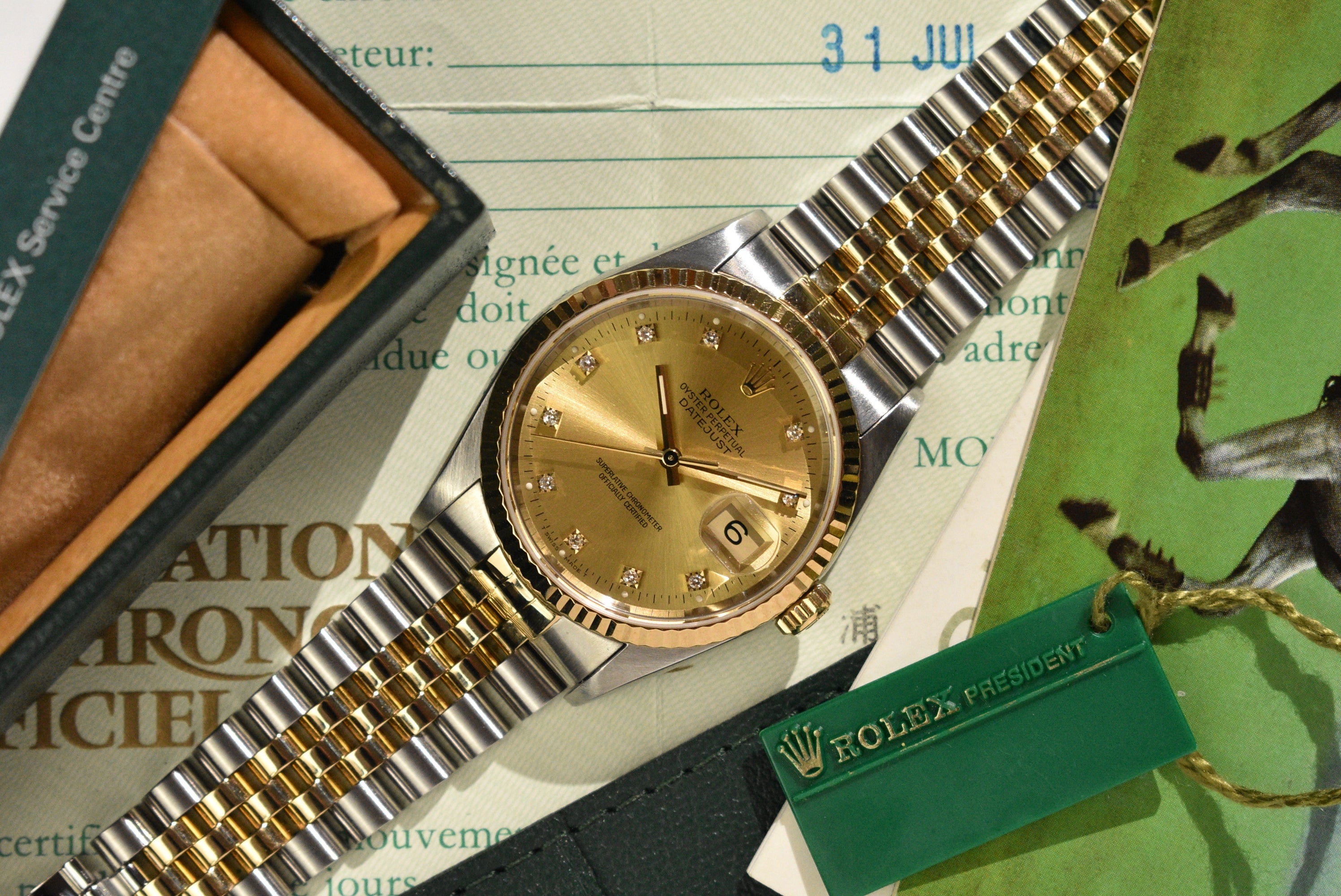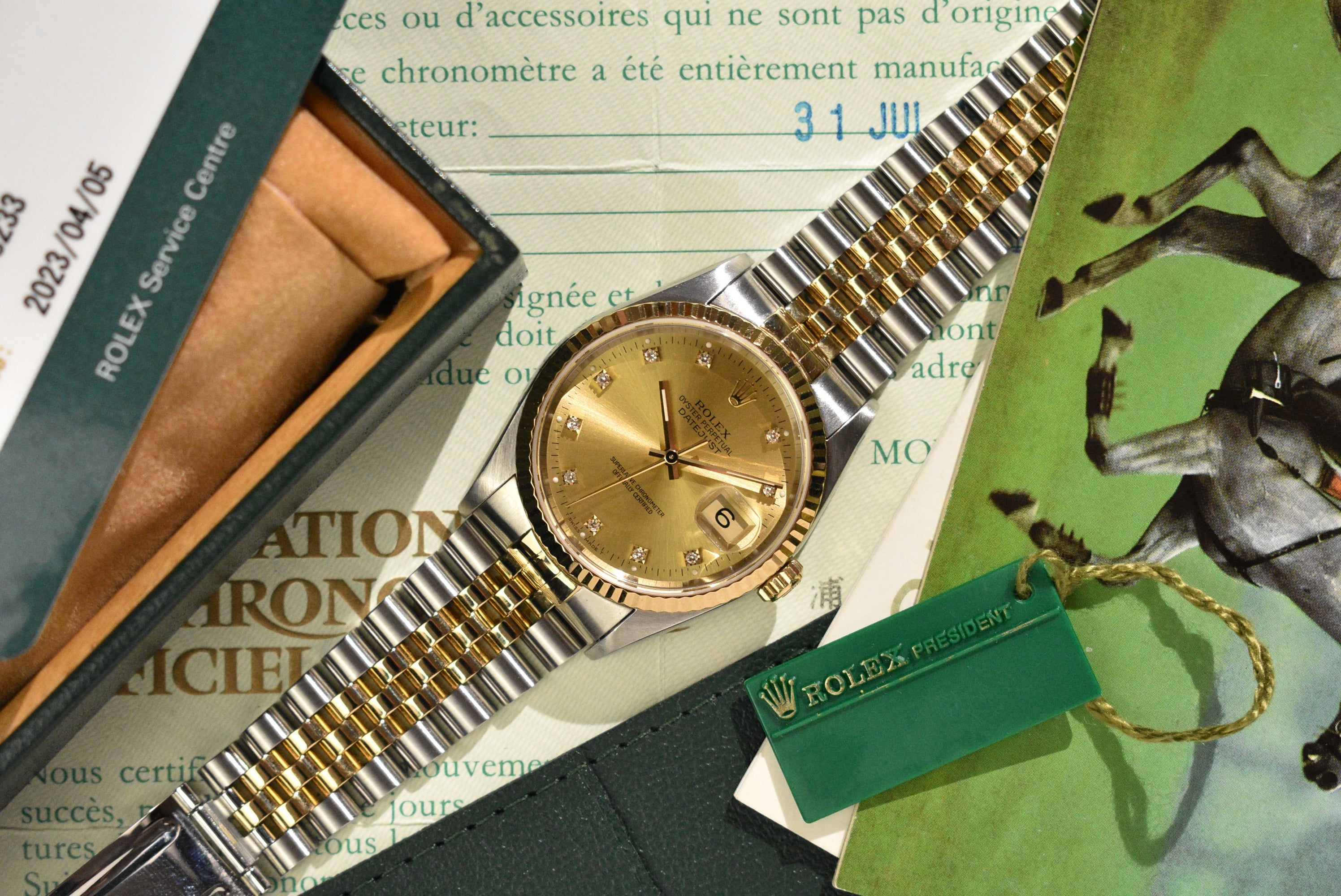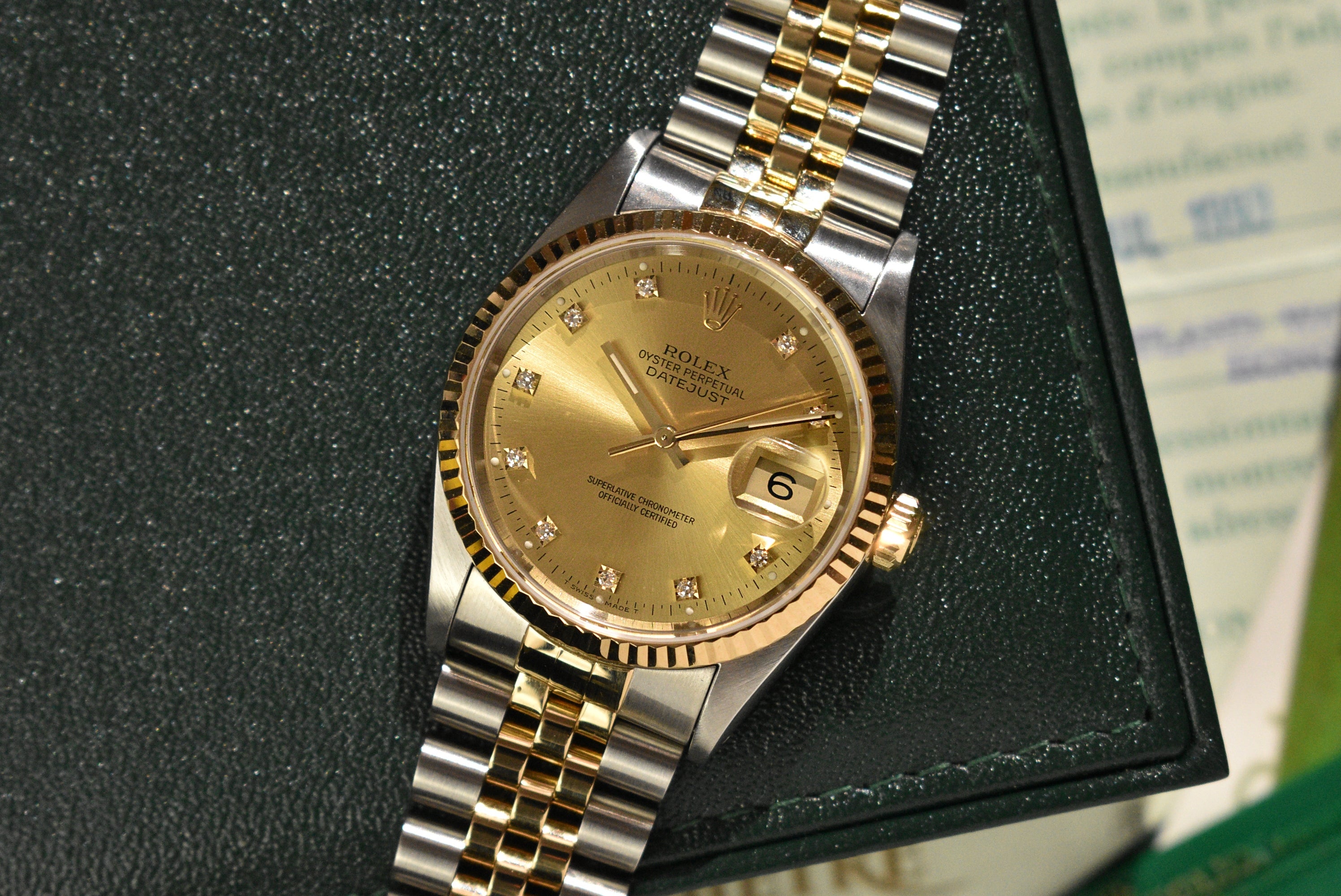 1991 Rolex Datejust 16233G Factory Diamond Dial Complete Set