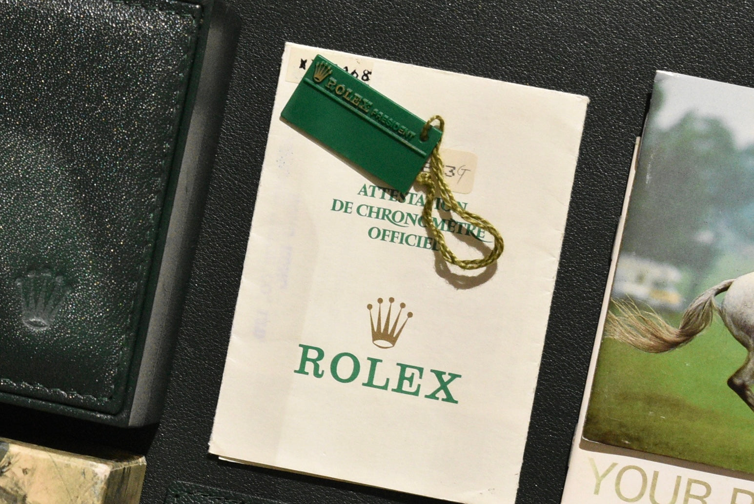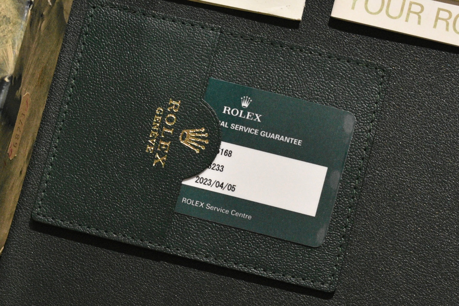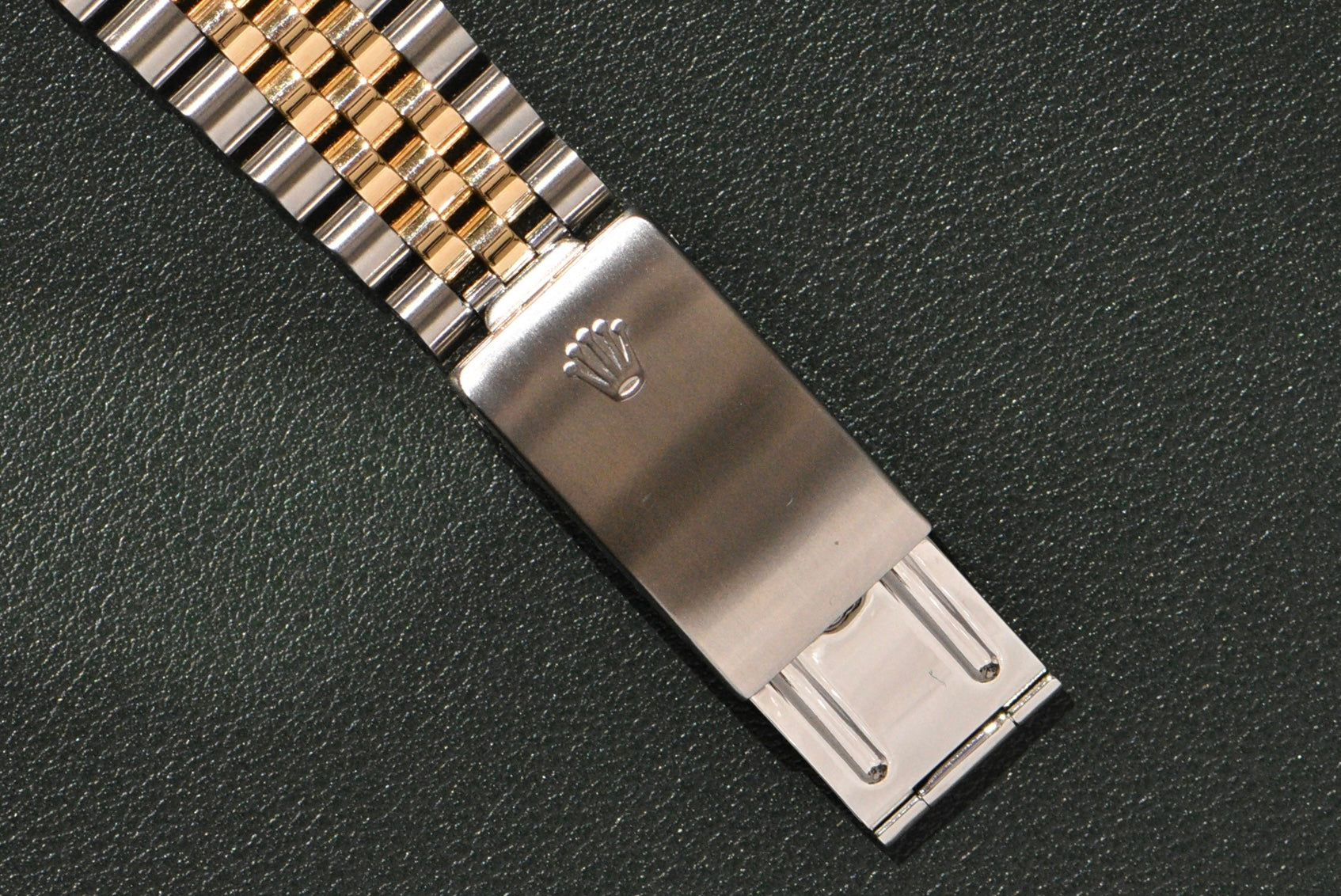 This 16233G has a clean factory diamond dial with tritium lume. The watch has recently been serviced and polished by Rolex and comes with the Rolex Service Certificate from 2023. The watch is in great shape, seeing that it was serviced by Rolex themselves. The watch comes complete with box and papers.
