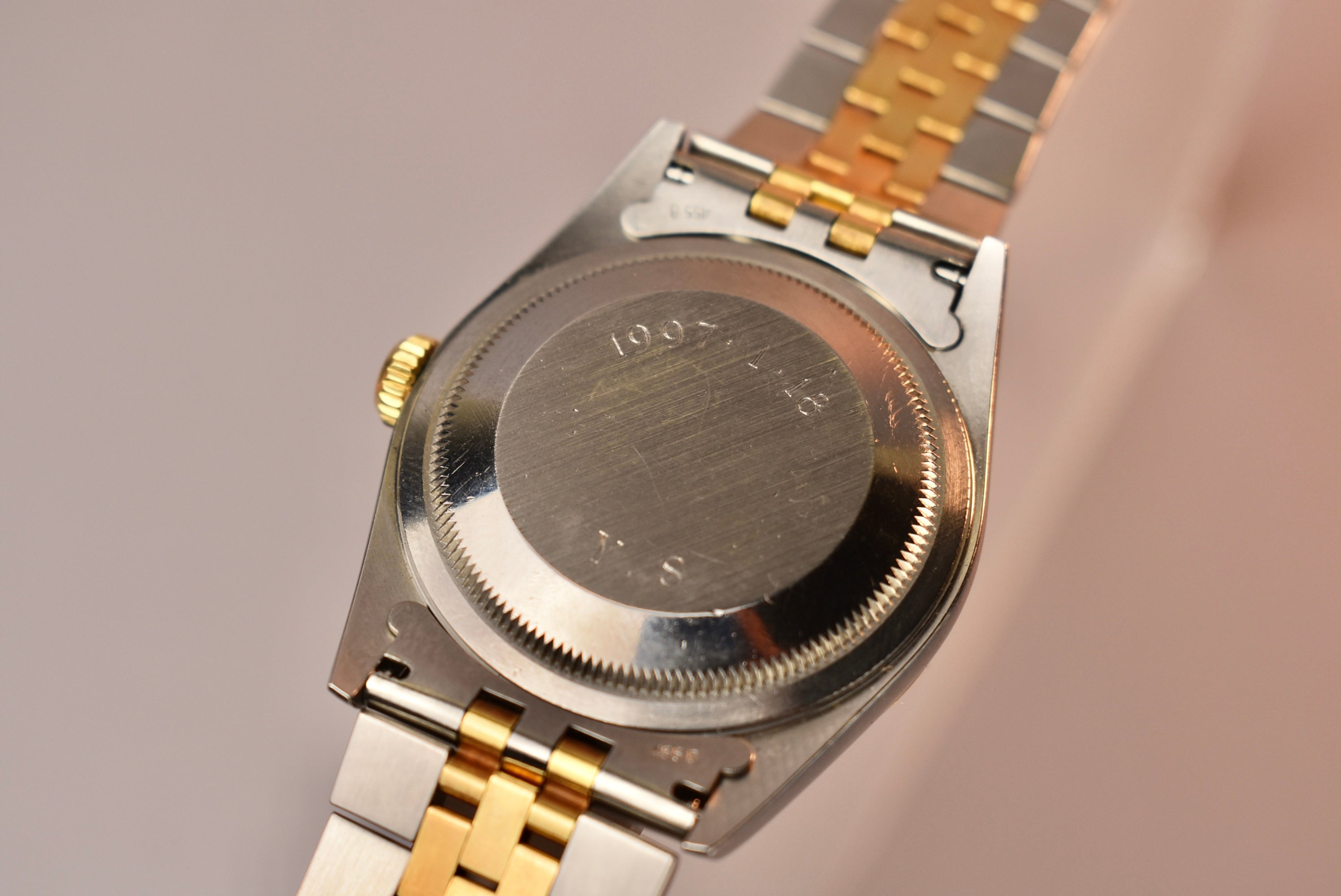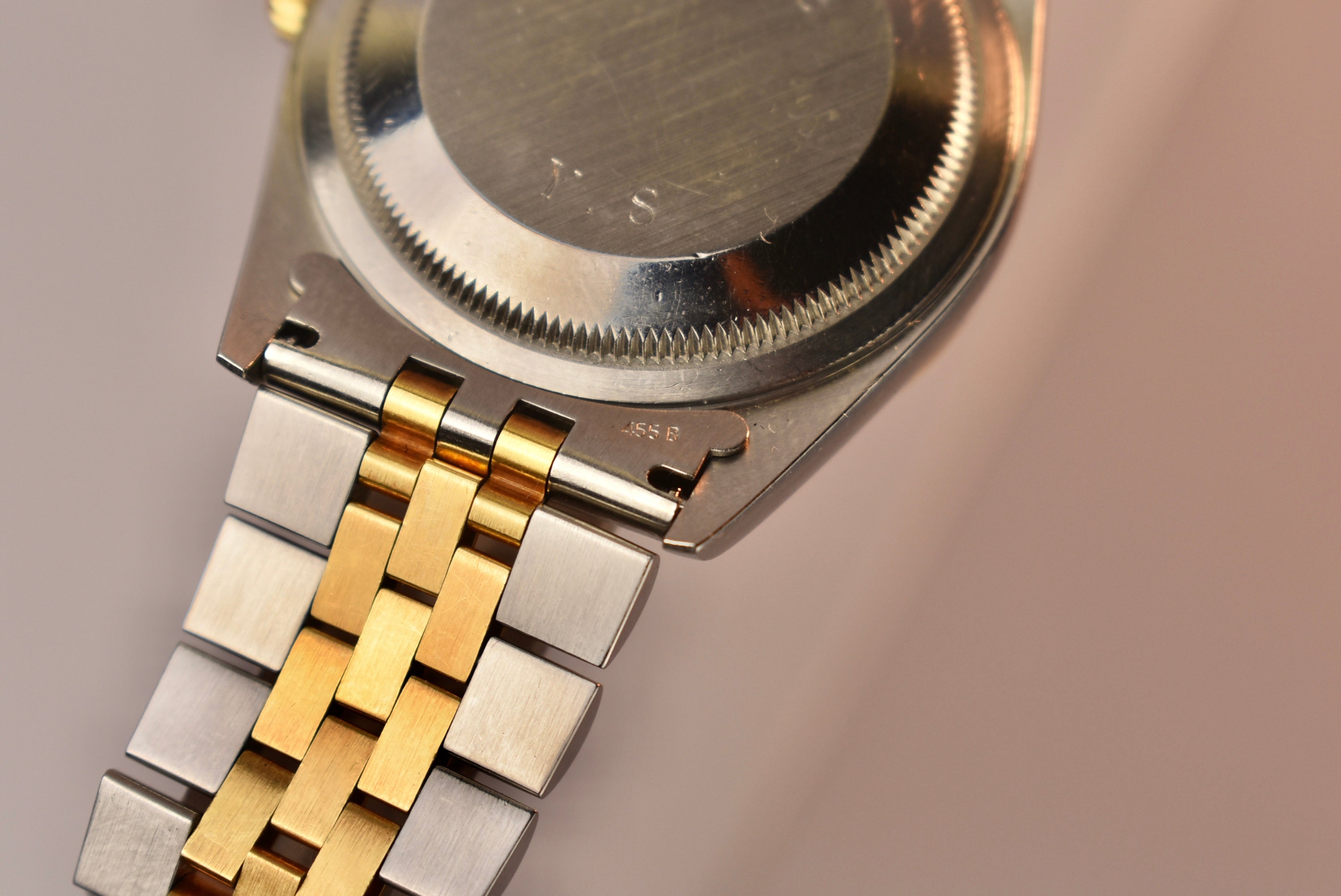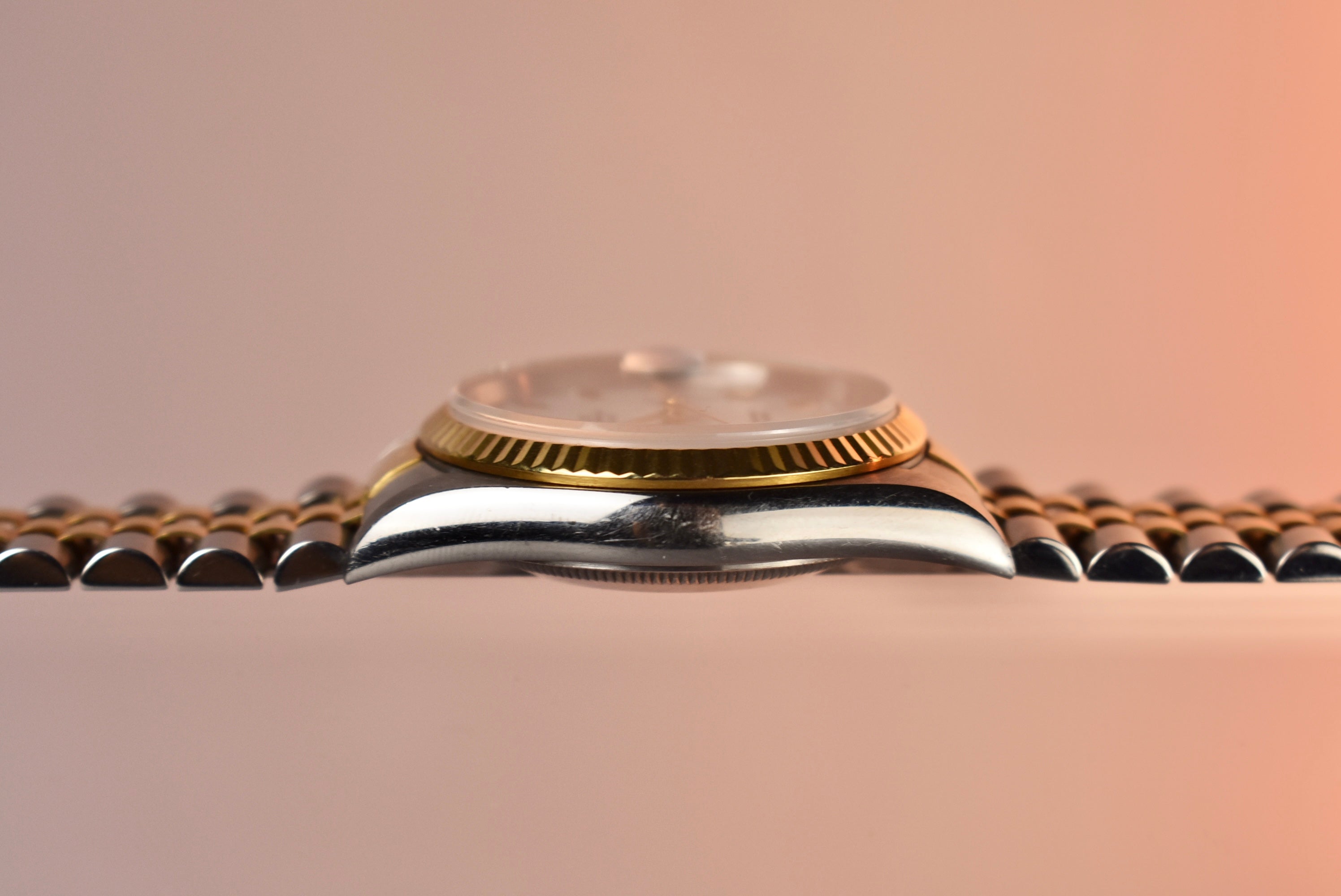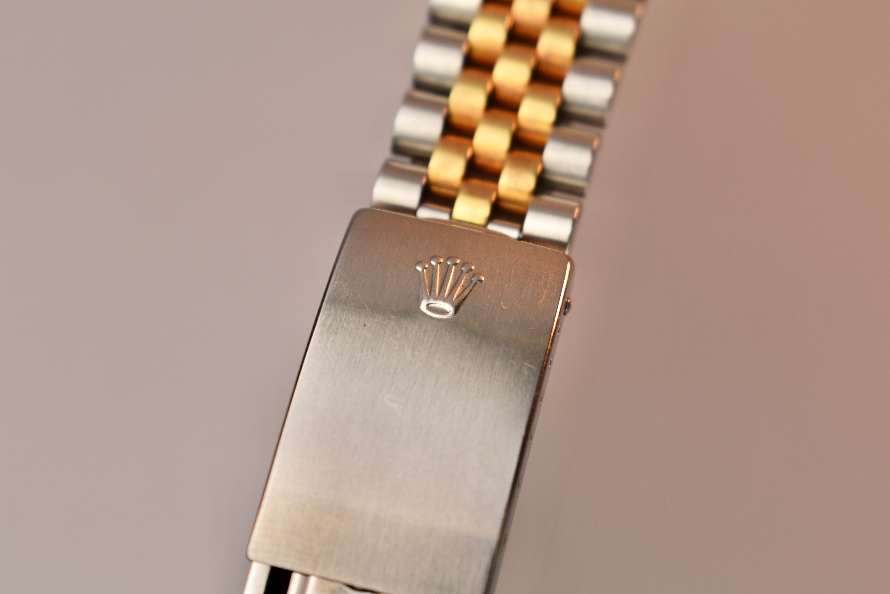 Hands down, the Rolex Datejust has become the most commonly known watch to everyone. The jubilee bracelet and fluted bezel work in harmony with a clean dial and simple date feature. The 16233 is also many people's sweet spot when it comes to Rolex. It is the most affordable Rolex model that can be had today with a sapphire crystal, quickset date, and a two-tone case and bracelet. This 16233 features a clean gloss white dial with applied roman numeral hour markers