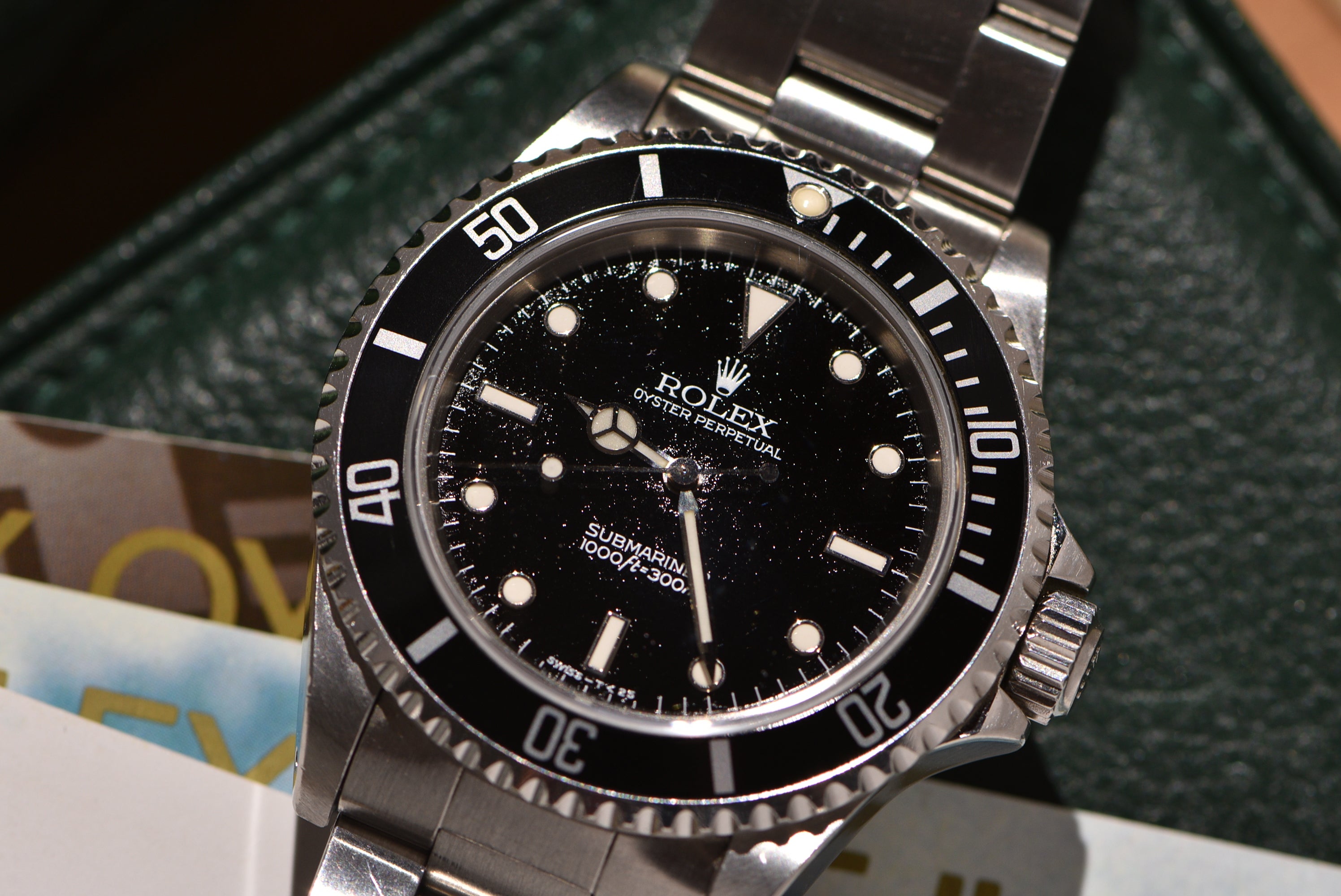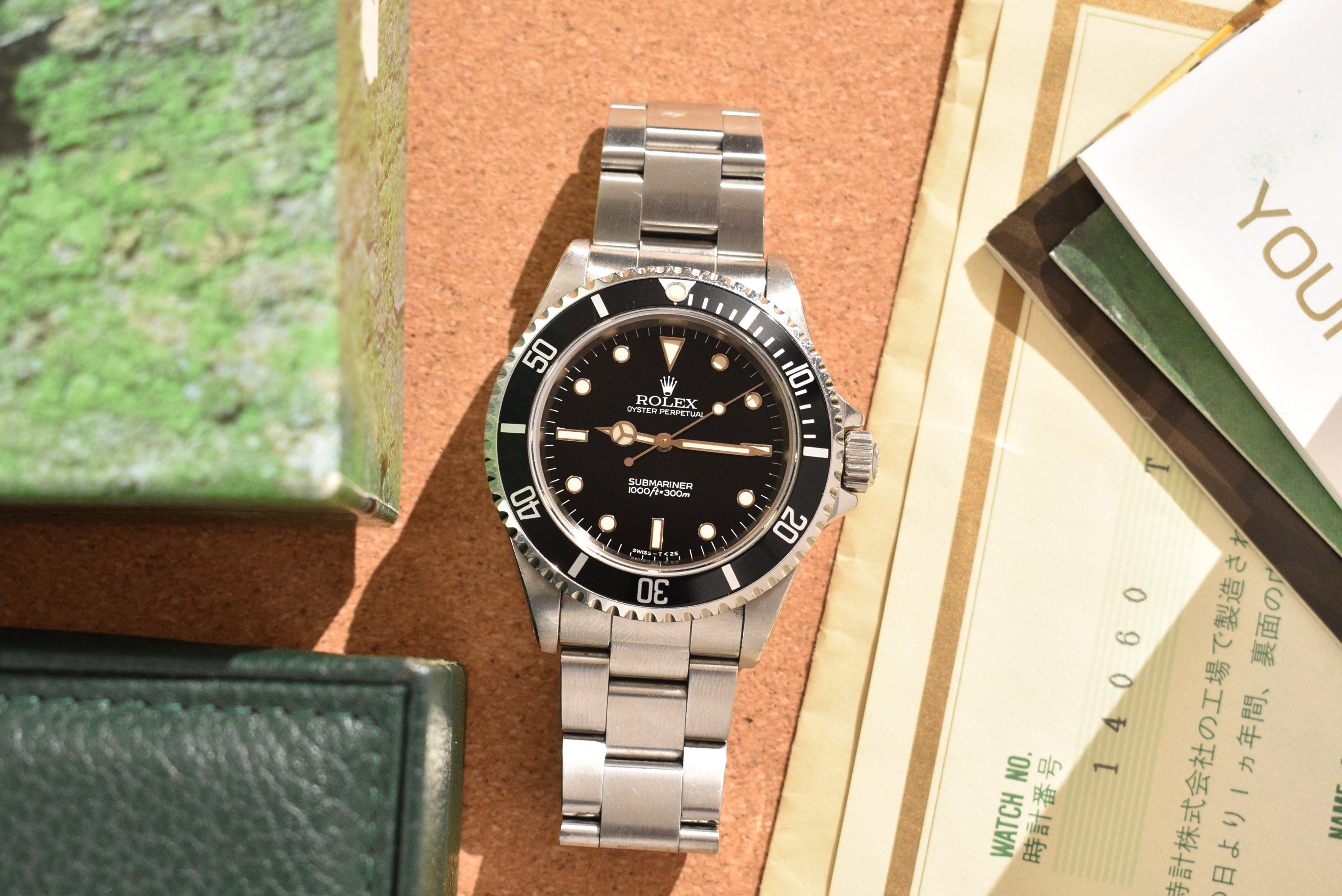A Go-to for many who want to add a Rolex to the collection or are looking for a daily wearer. The 14060 is the closest in design to the original submariner. A clean dial, nicknamed the 'Two-Liner' with no date.