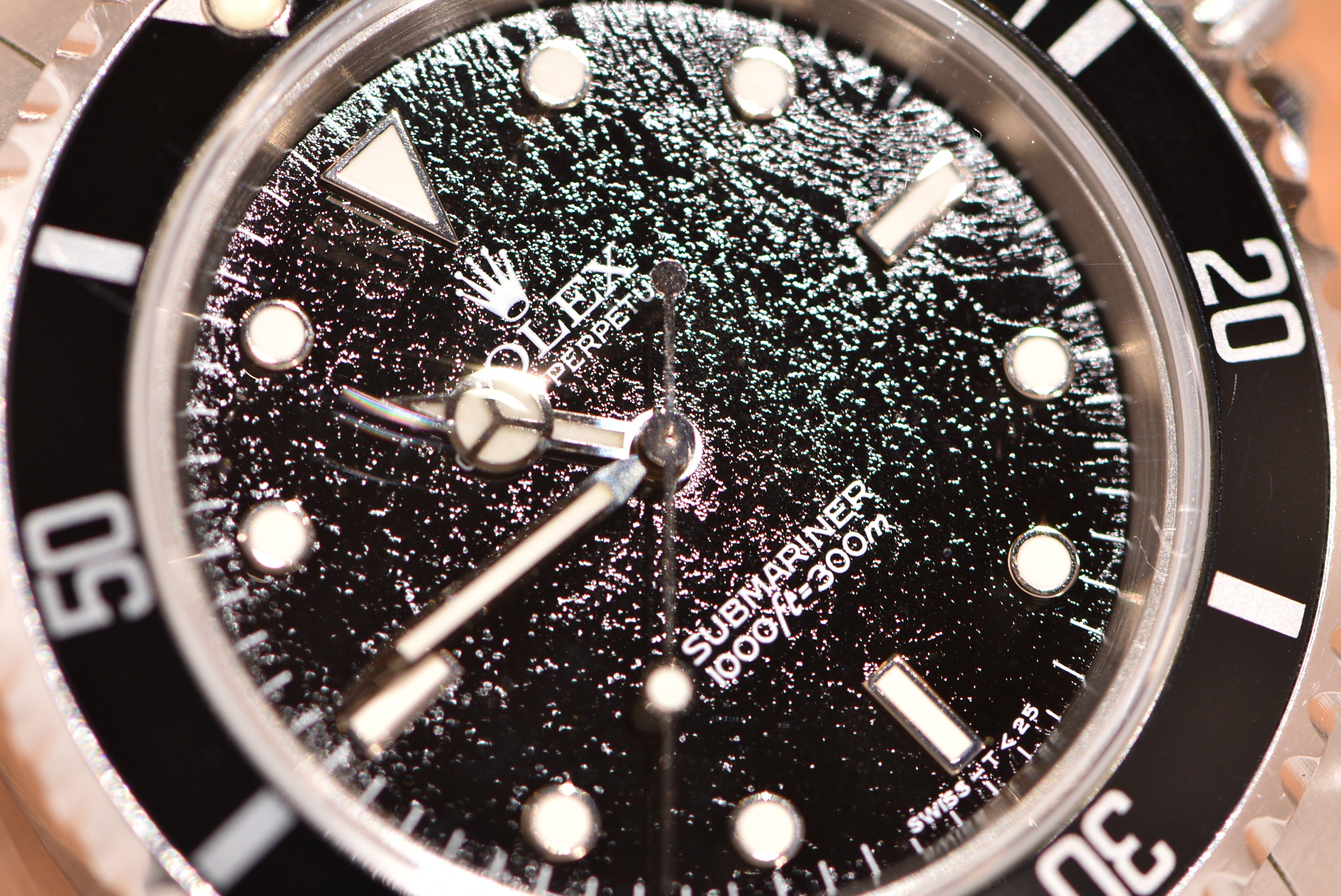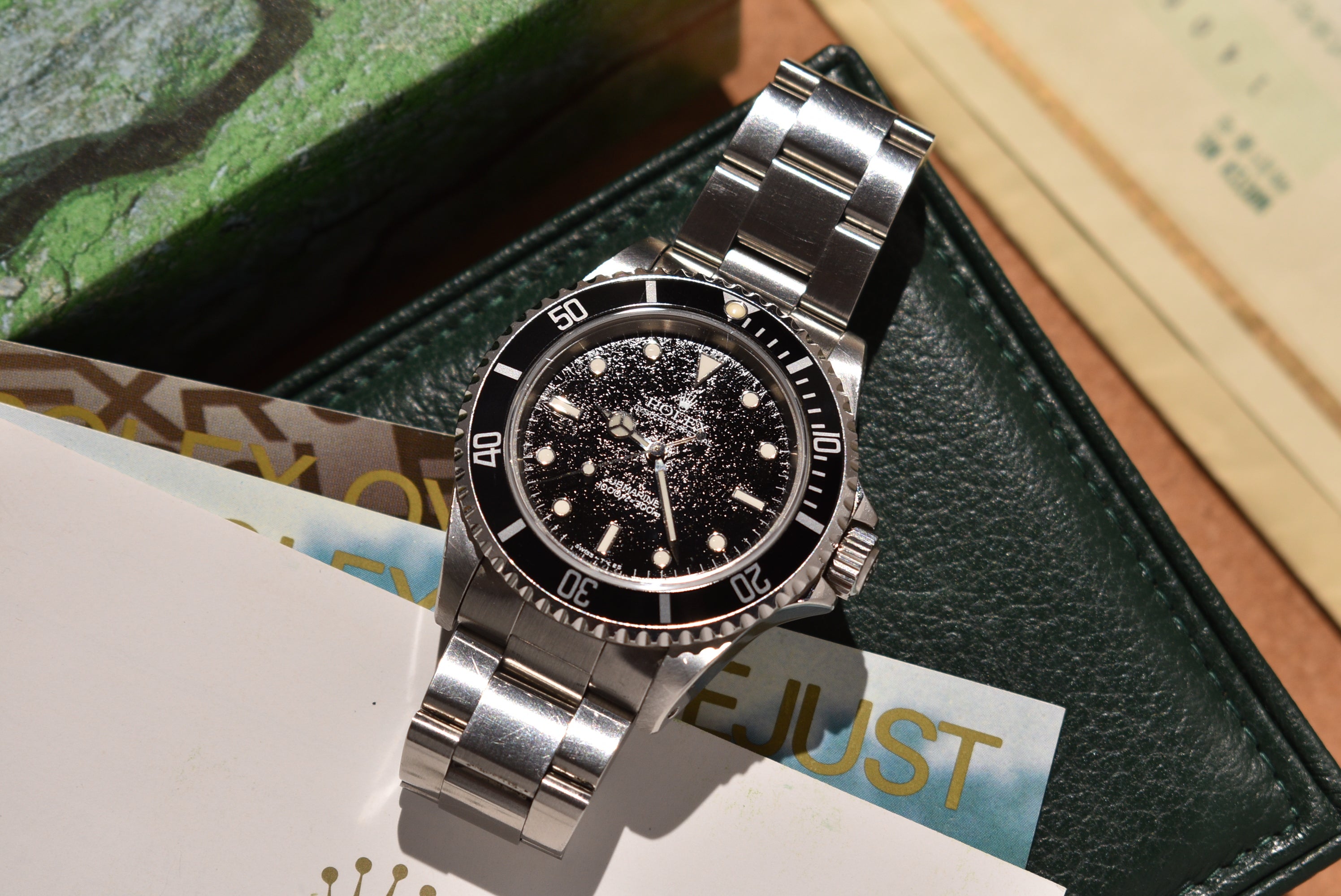 What you are looking at is a rare bird. These 14060 no dates don’t often turn like this. A clean and even spider dial that is mesmerizing. The cream-colored tritium patina is a great look paired with the spider dial. The case looks to have been polished in the past but is still even and sharp with thick lugs. The watch comes with its original box, warranty papers, and booklets.