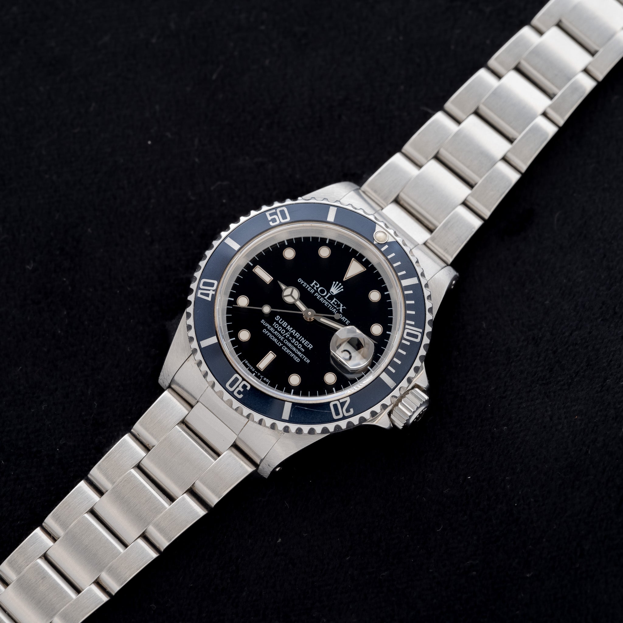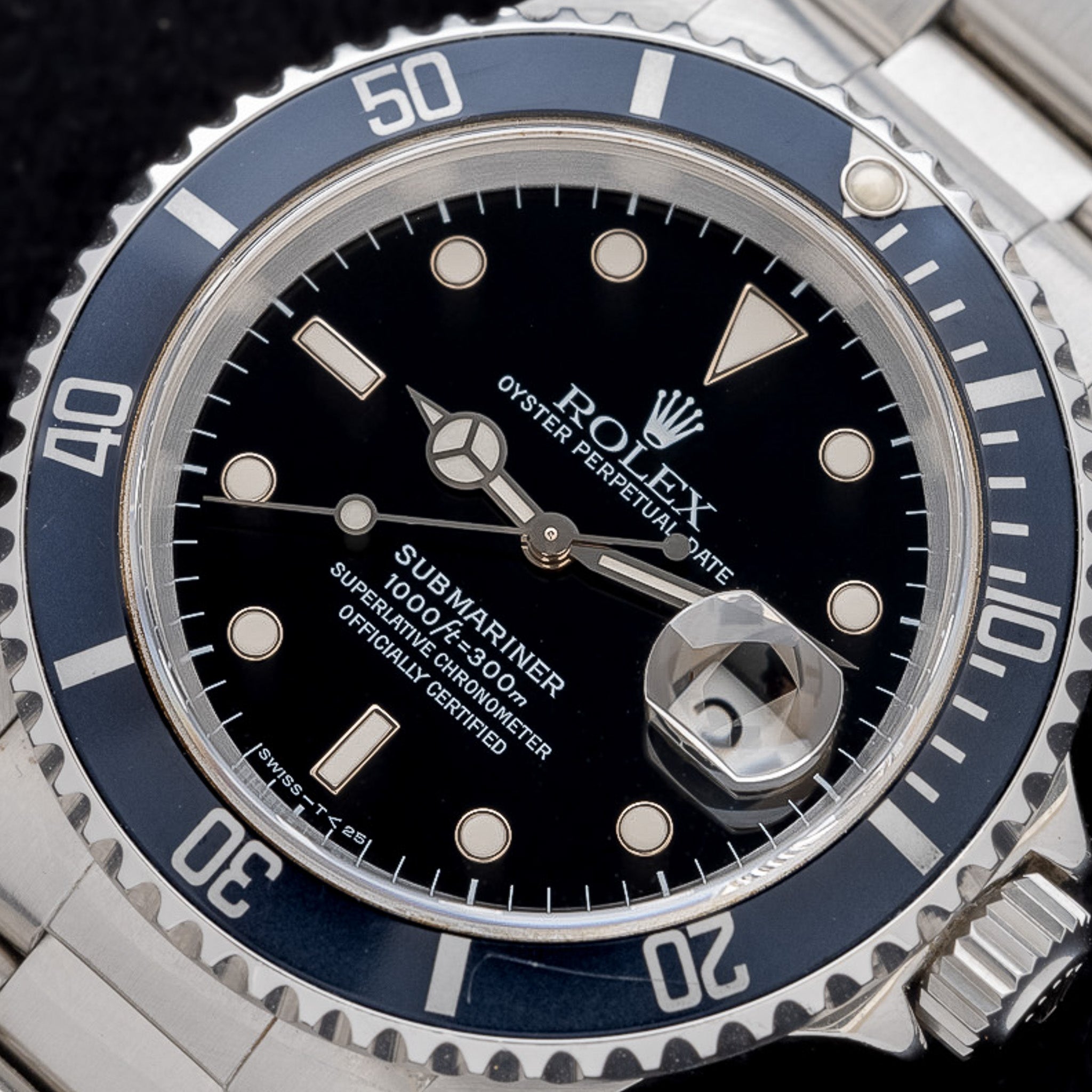 The 16610 is the classic neo-vintage Submariner. While the reference is common, this specific example is pretty special. A beautiful tritium example with a stunning bezel. The black colored bezel has faded into a deep navy blue color that is even and clean. It's one of the coolest things to look for with the neo-vintage submariners because patina isn't easy to find with these later Submariners.