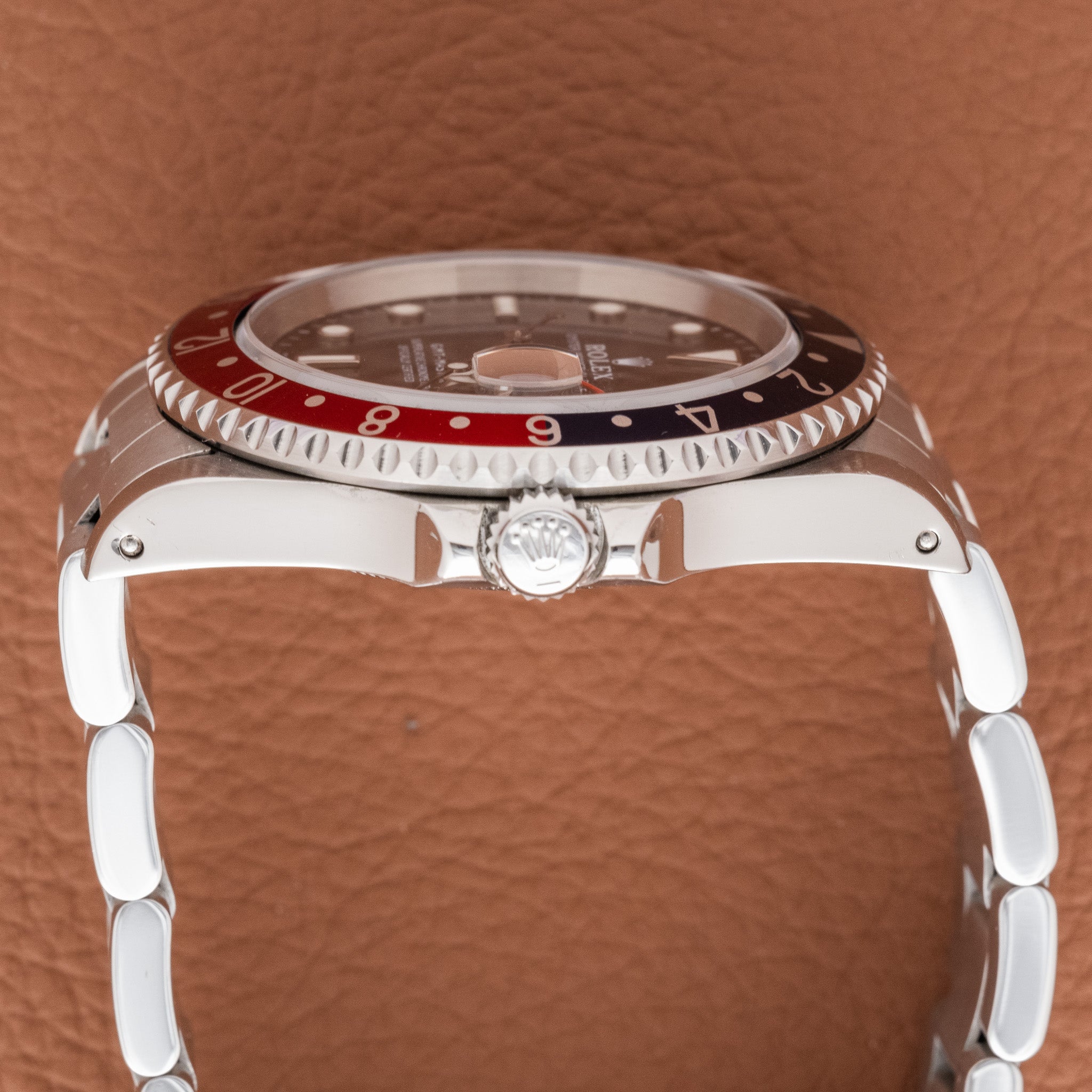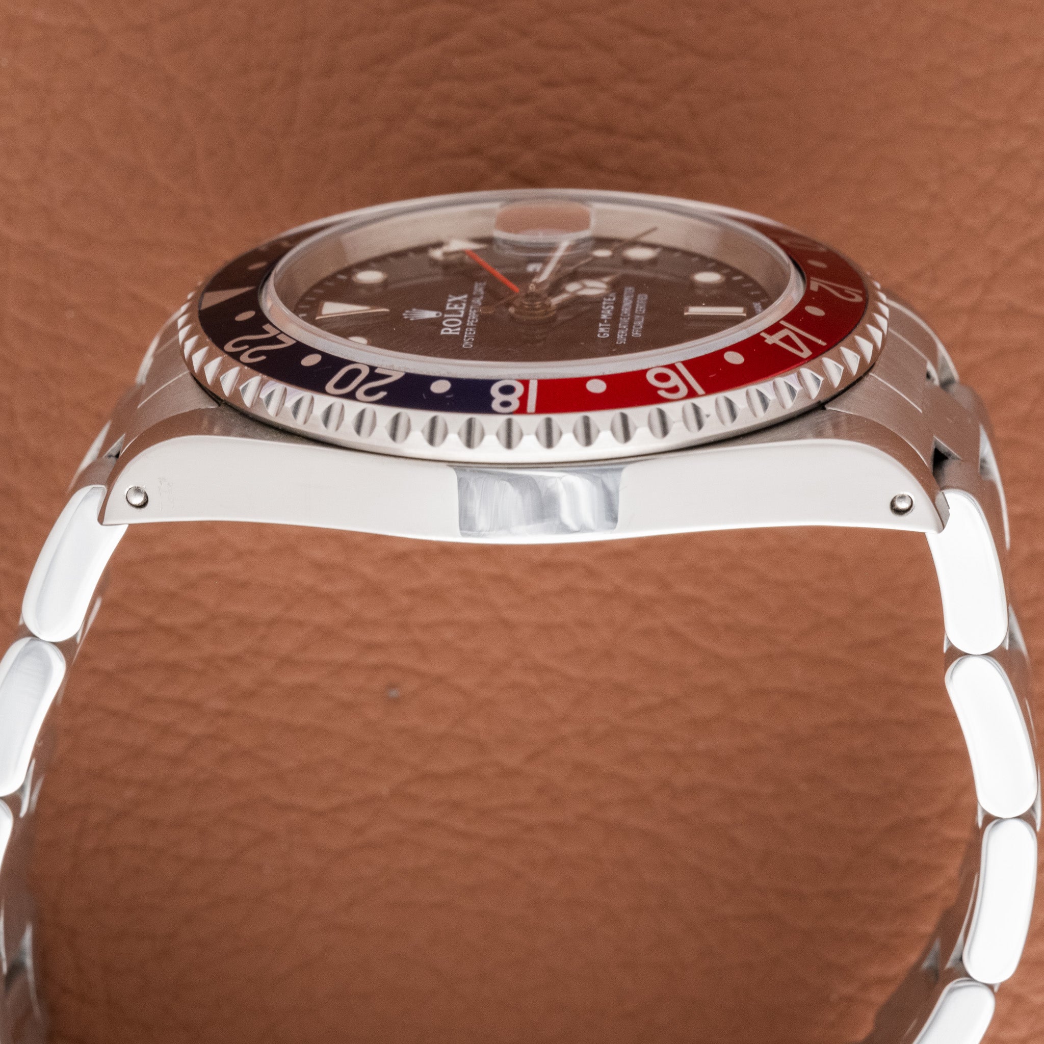 Bezel: Red and blue aluminum “Pepsi” 24-hour bezel