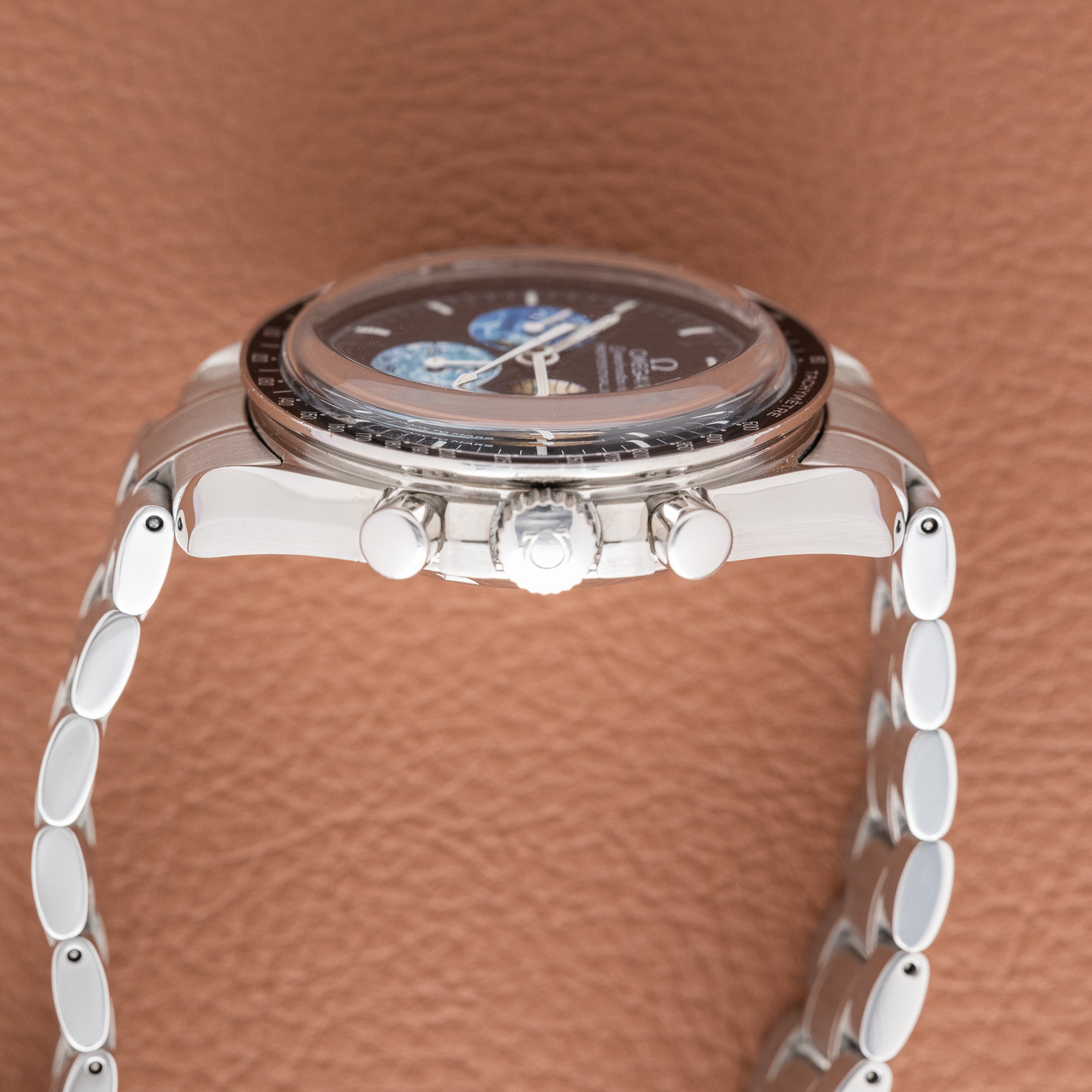 What sets this reference apart is its dial. The Earth and Mars subdials introduce color and texture without compromising legibility or balance. The execution is precise and deliberate rather than novelty driven, and the result is a Speedmaster that remains serious in construction while offering a distinct visual identity. For collectors, this reference represents a modern Omega experiment done correctly, grounded in genuine Speedmaster DNA rather than superficial design changes.