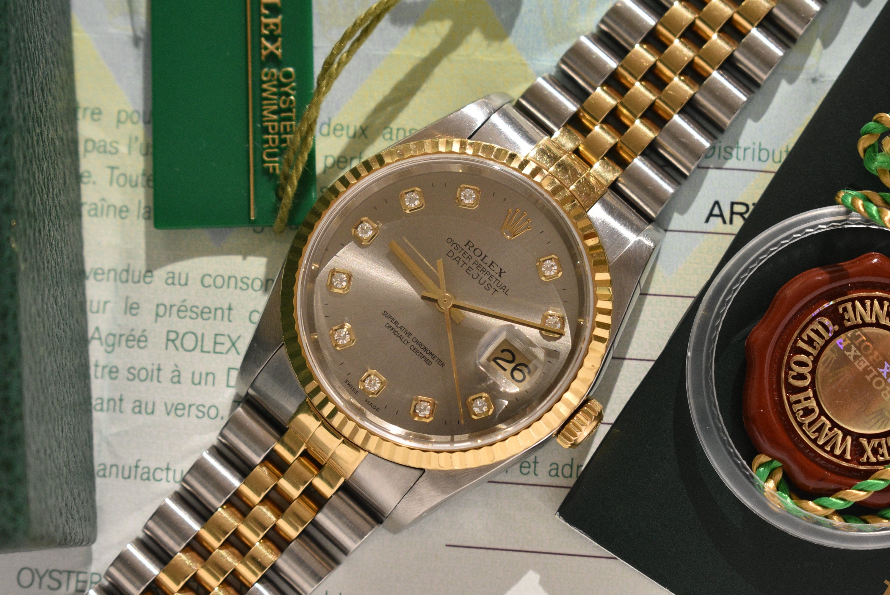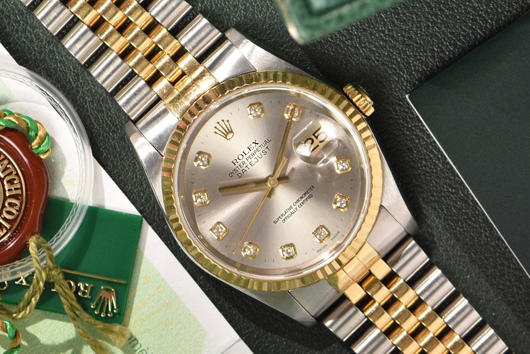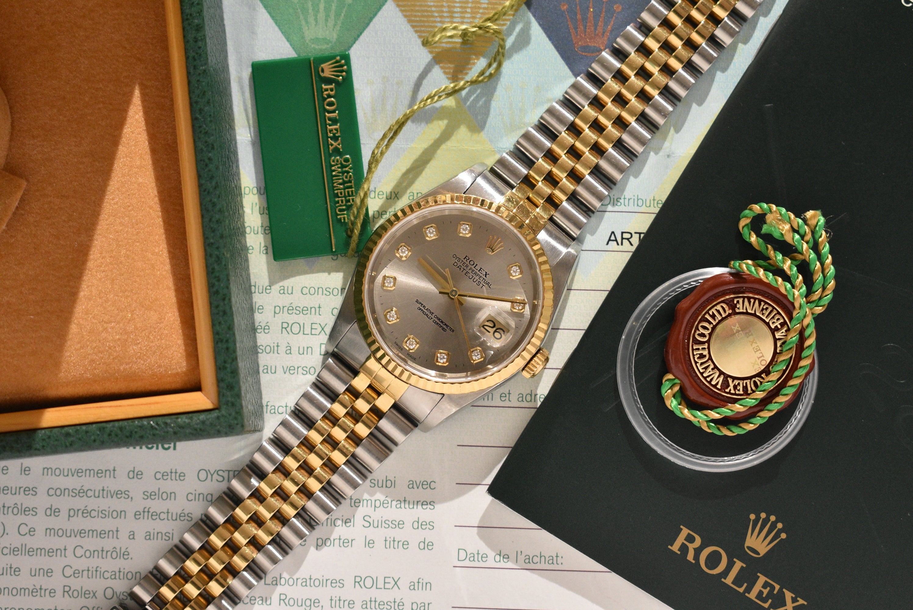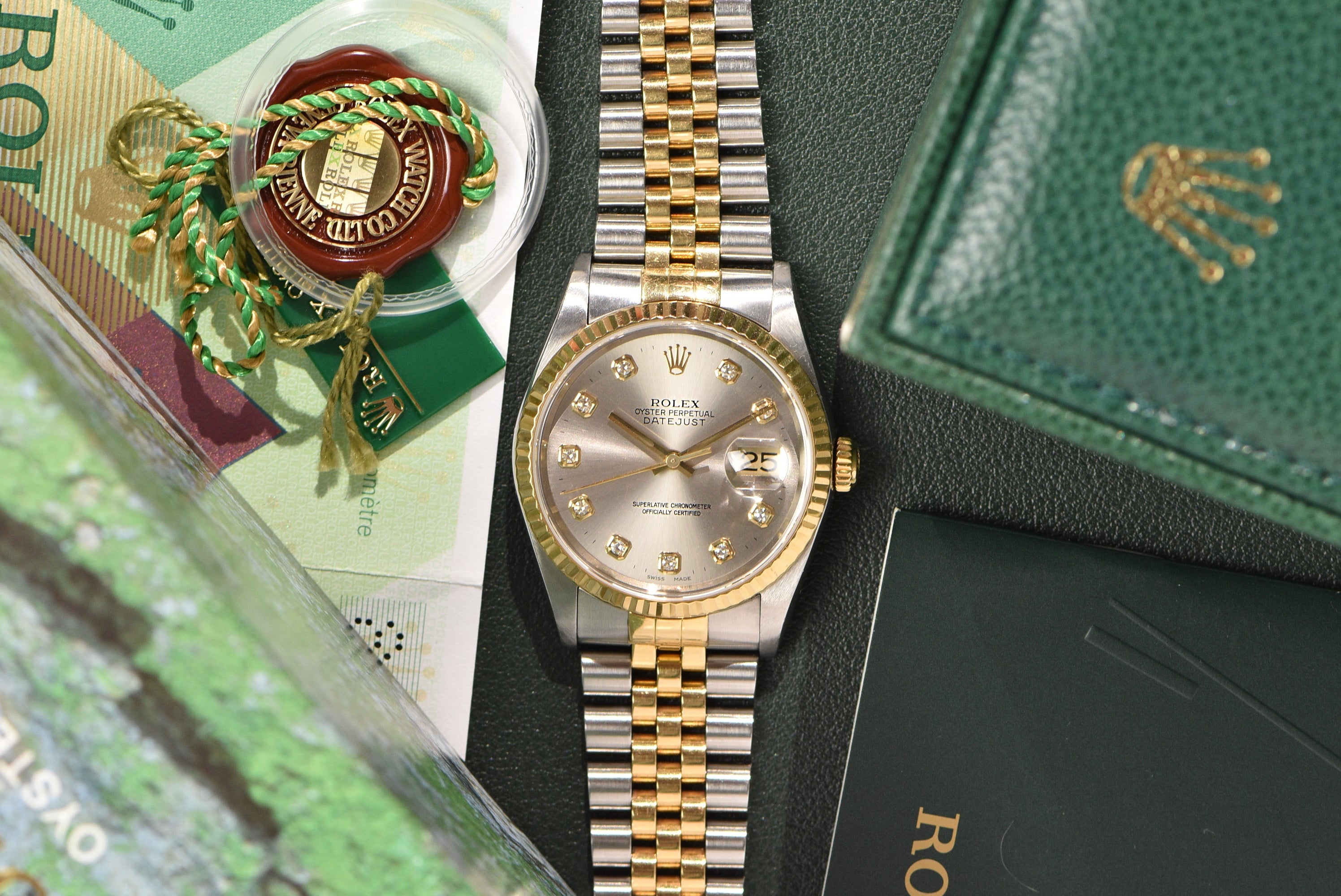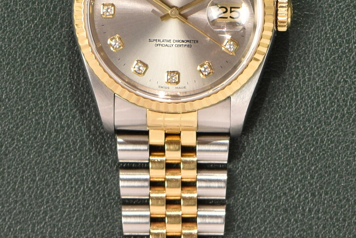 2001 Rolex Datejust 16233G Factory Diamond Dial Complete Set