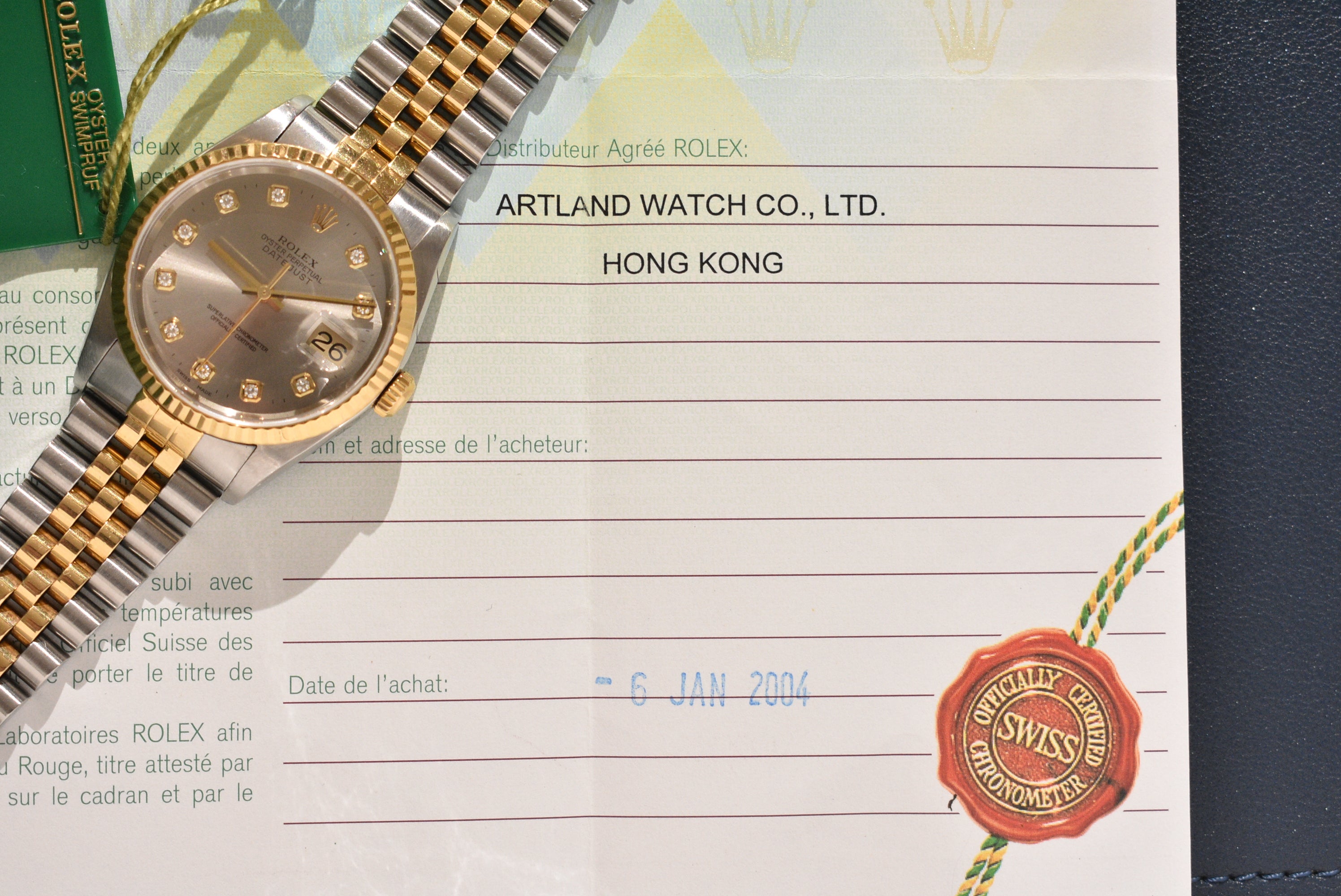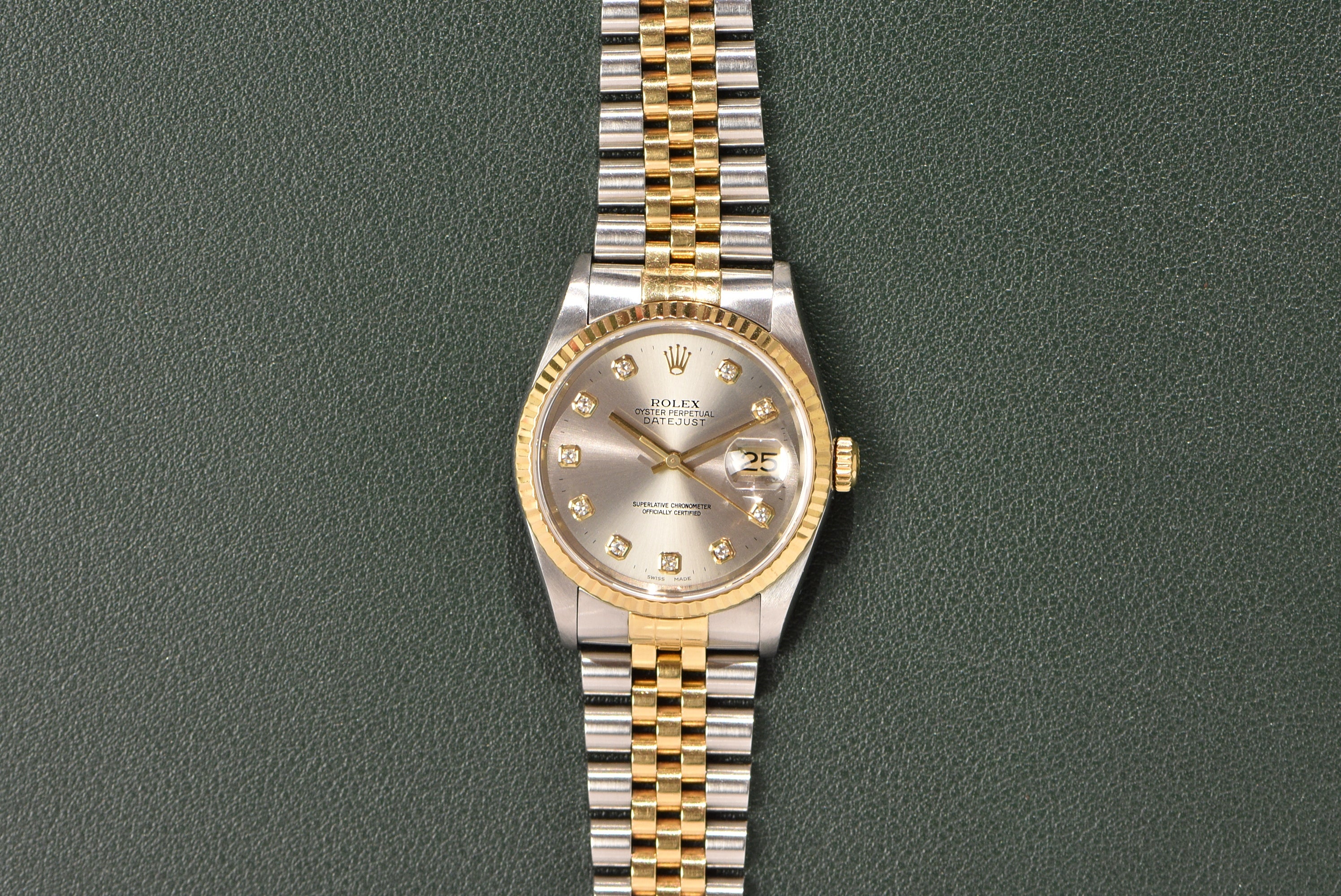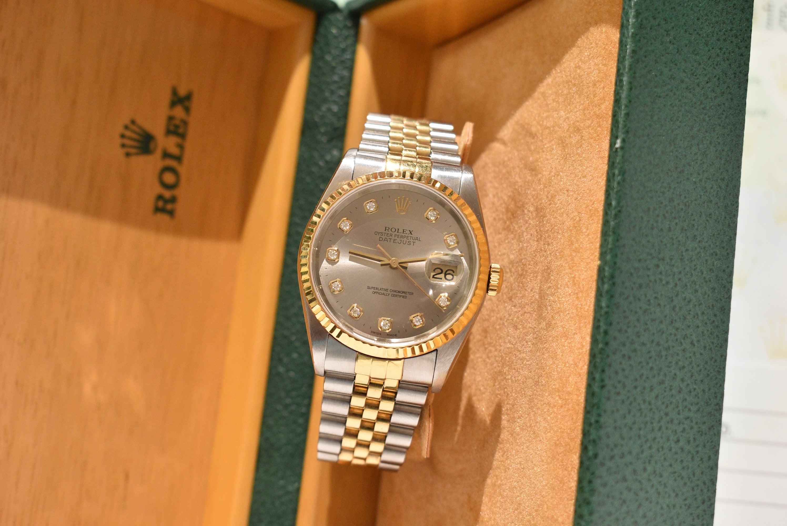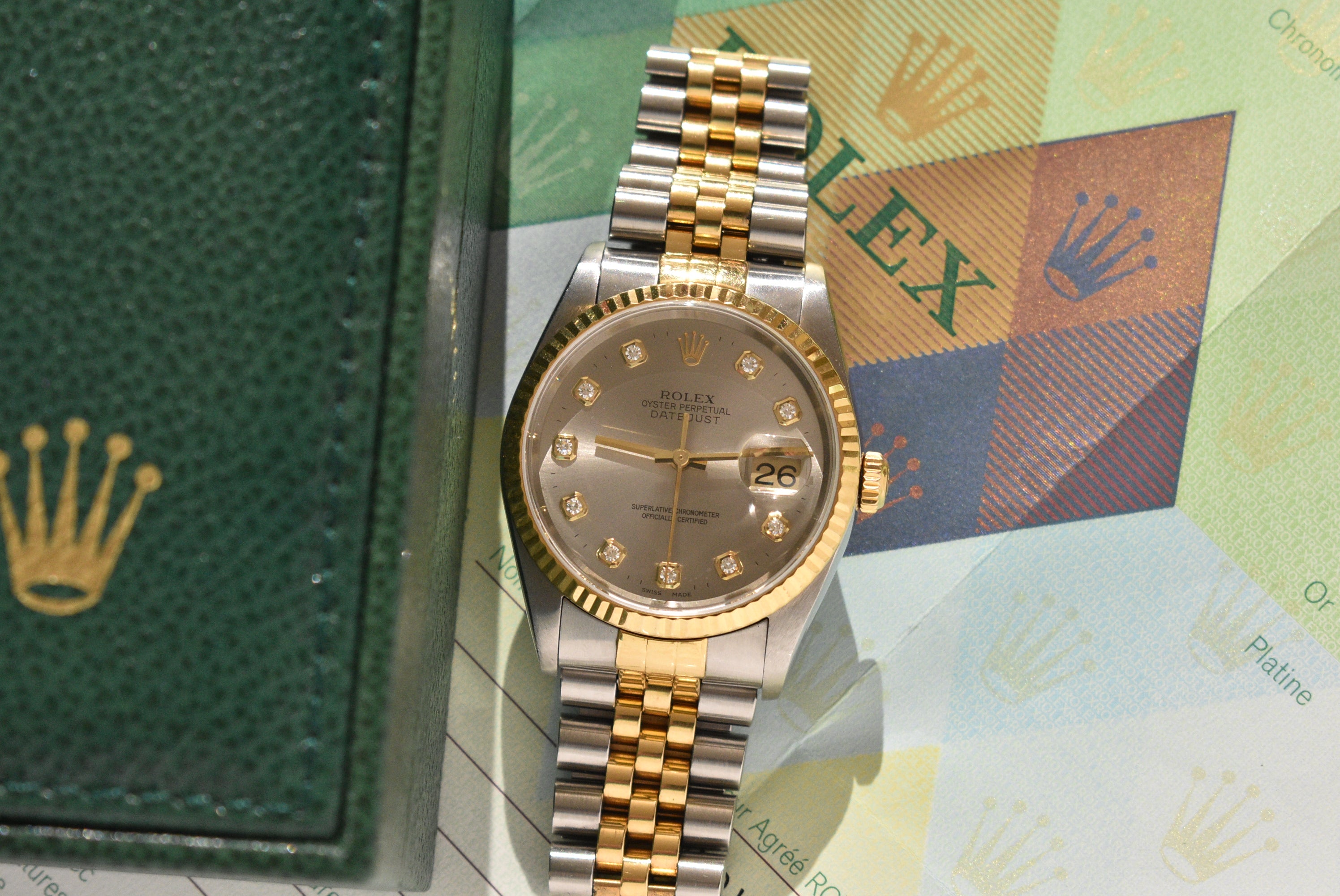 2001 Rolex Datejust 16233G Factory Diamond Dial Complete Set