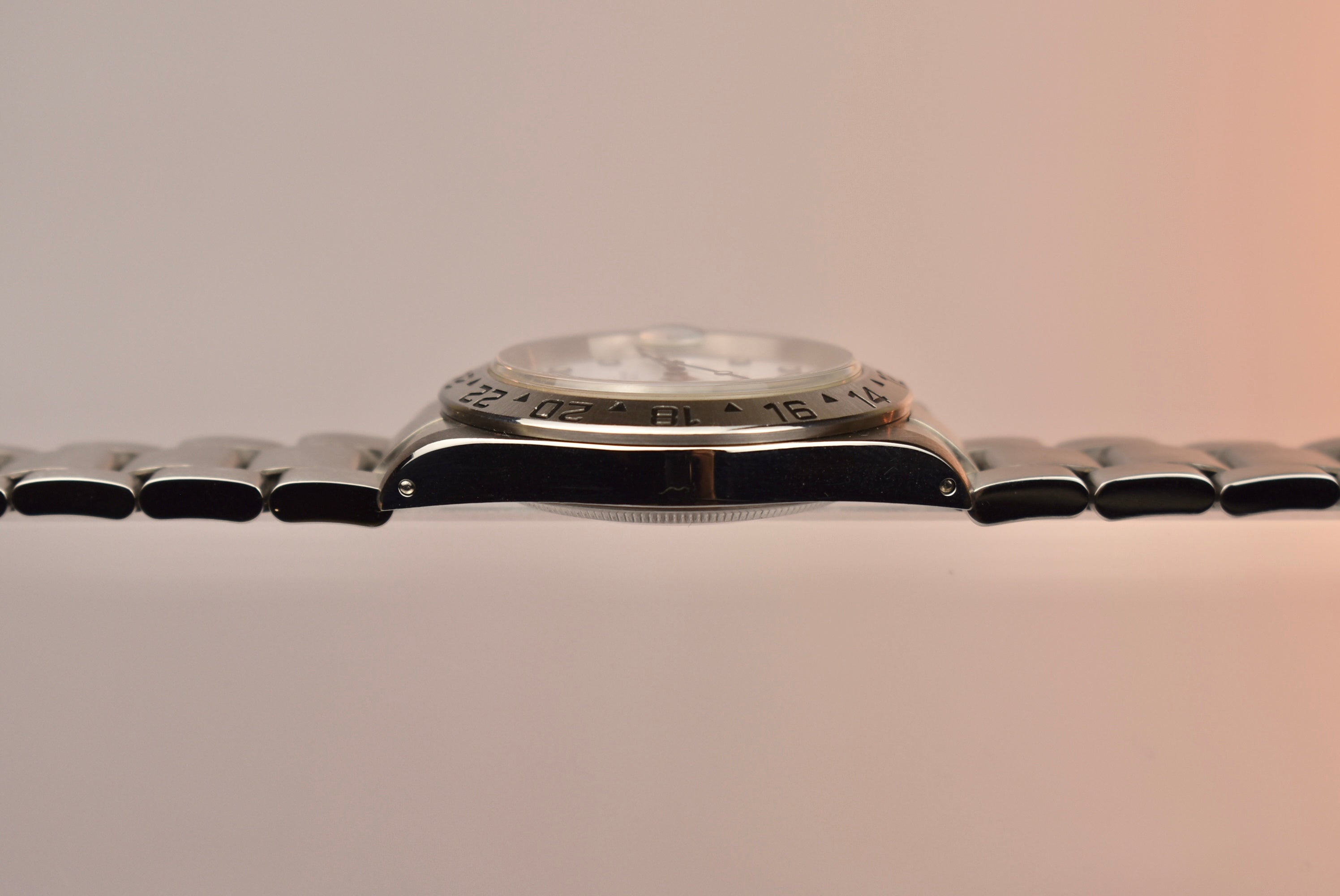 A historic Rolex sport model with a GMT function that can be had for under $10k still. This is one of the best “bang for your buck” Rolex’s on the market at the moment. A sleek white dial with a red GMT hand and a perfect case size makes this watch such an easy wearer. This specific example comes with original box and papers.