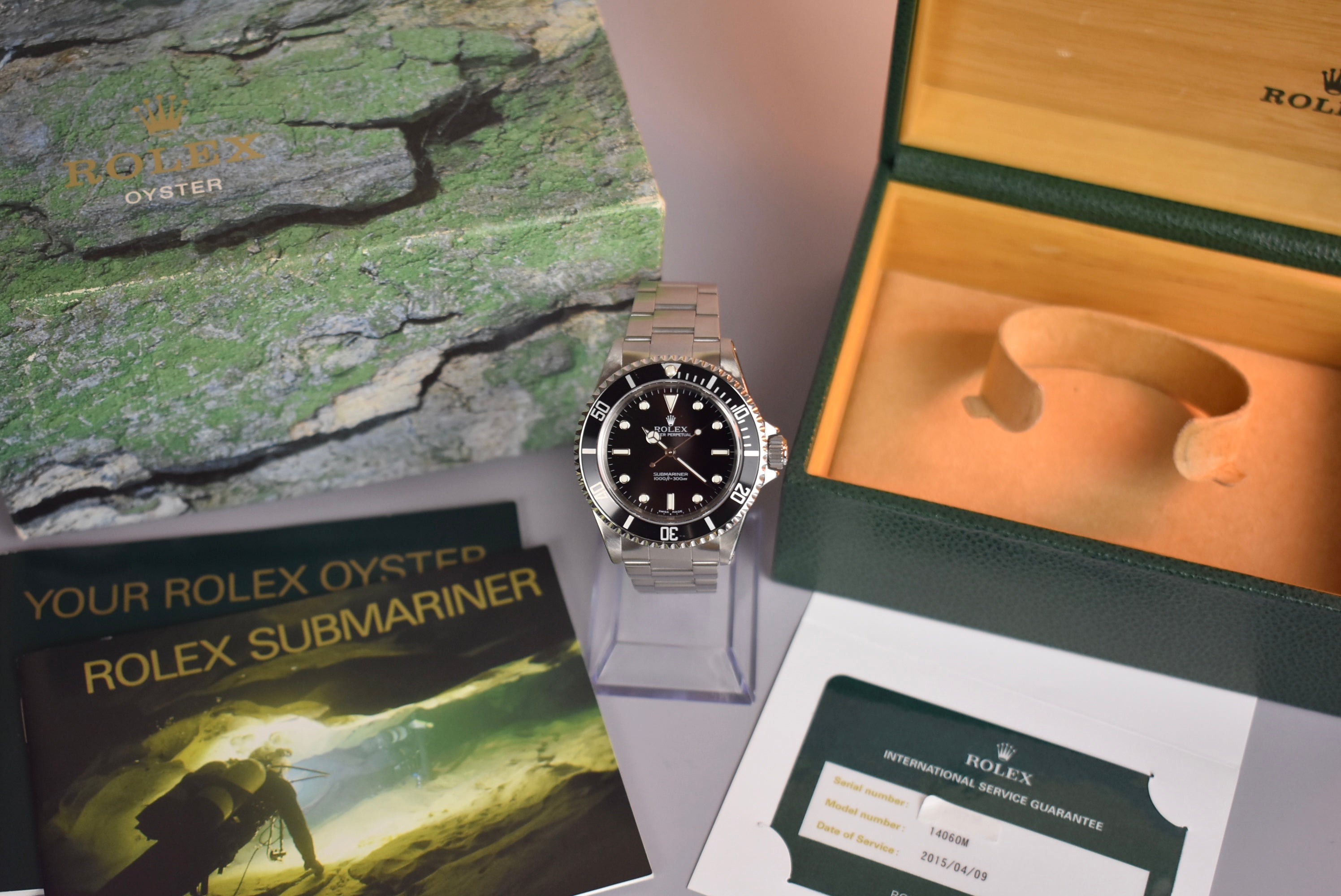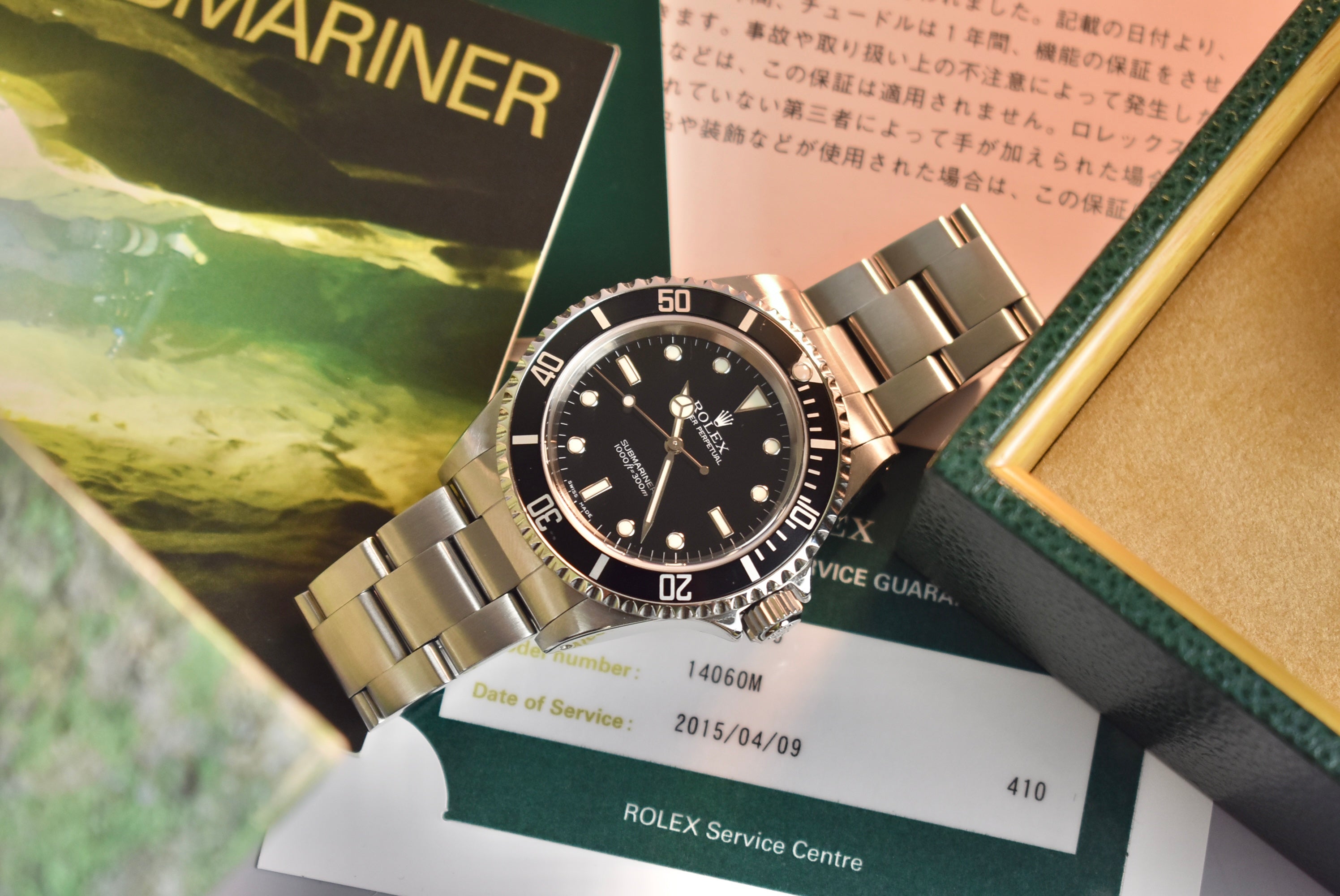 The original Rolex Submariner came with no date, so to get the true heritage, the 14060 is the superior choice over the date. With a perfect case size, you can understand why the Submariner has gained a cult-like following. This example comes with the Rolex Service Certificate from 2015.