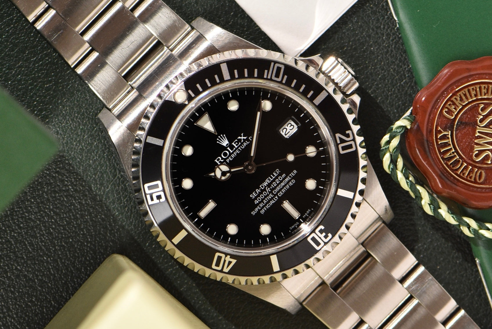 A great choice to look at if the Submariner doesn't do it for you. The Sea-Dweller is similar, but a few small differences might make it the better watch, depending on who you ask. A Rolex Dive watch with a date window but no cyclops and a slightly thicker case for its helium escape valve. Still in the same case size and design elements of the Submariner.
