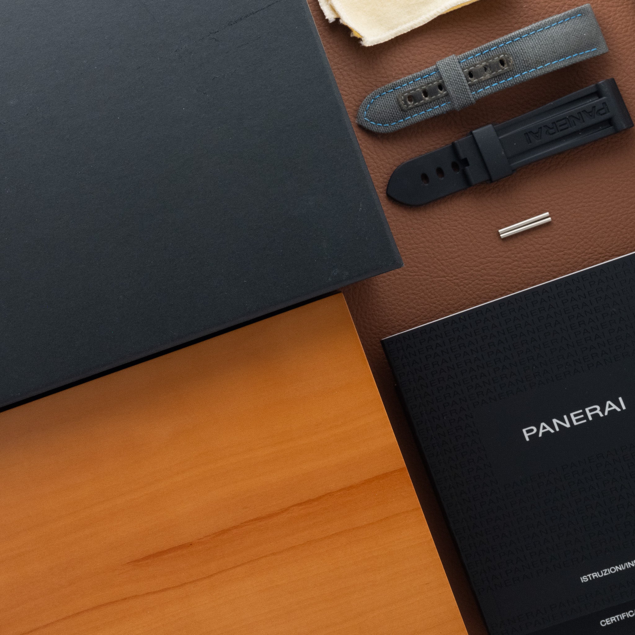 Strap: Original Panerai leather strap, includes two additional Panerai straps