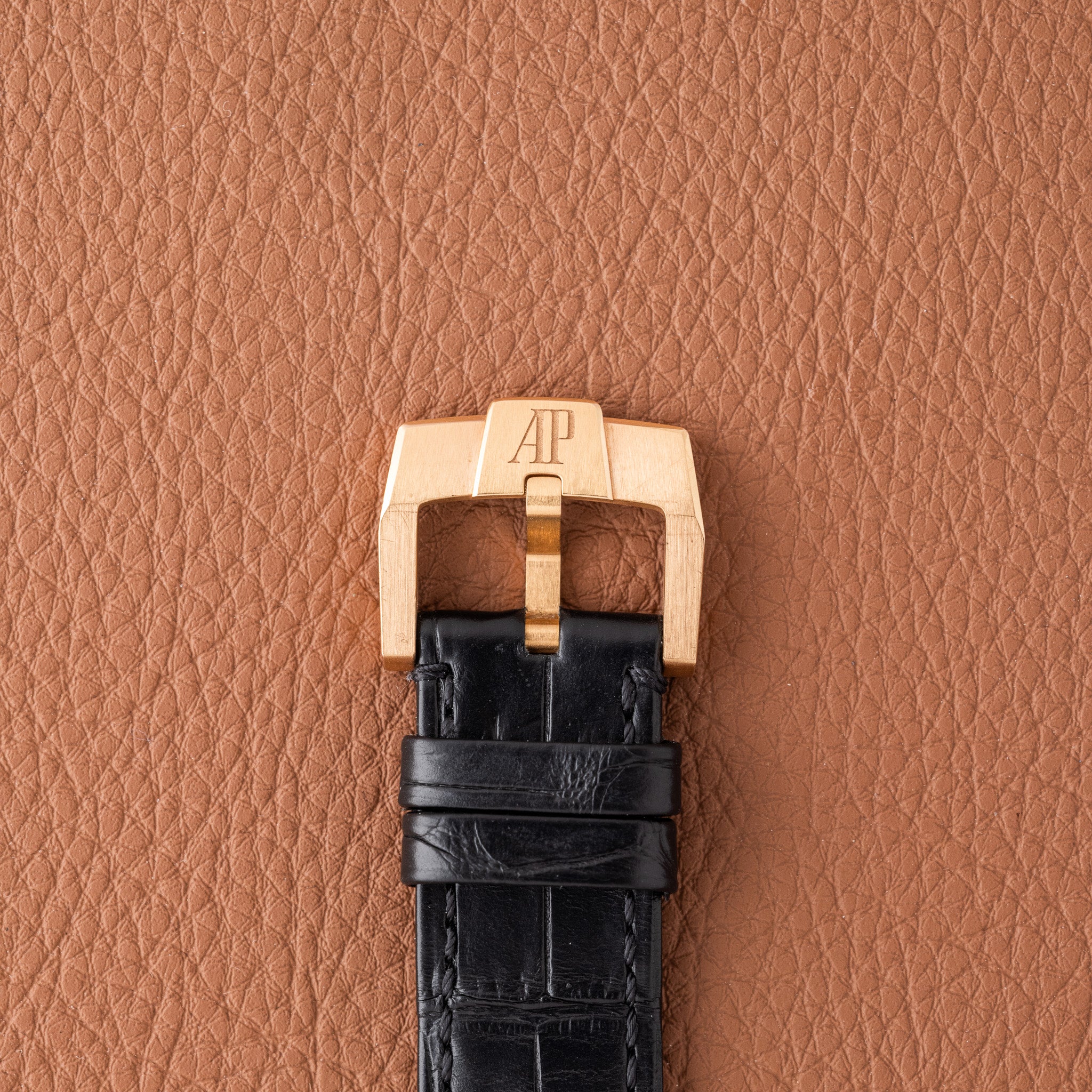 Buckle/Clasp: Audemars Piguet rose gold pin buckle