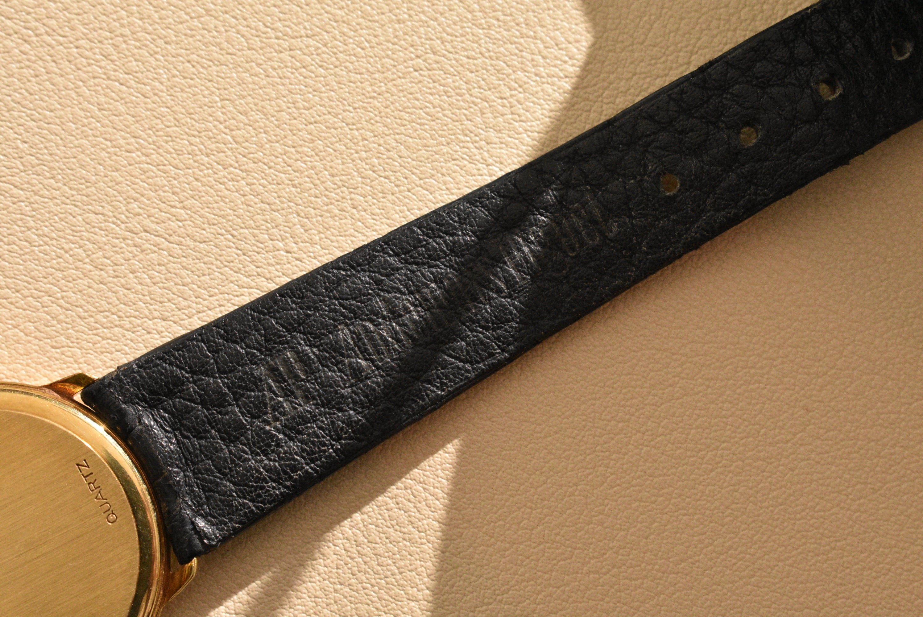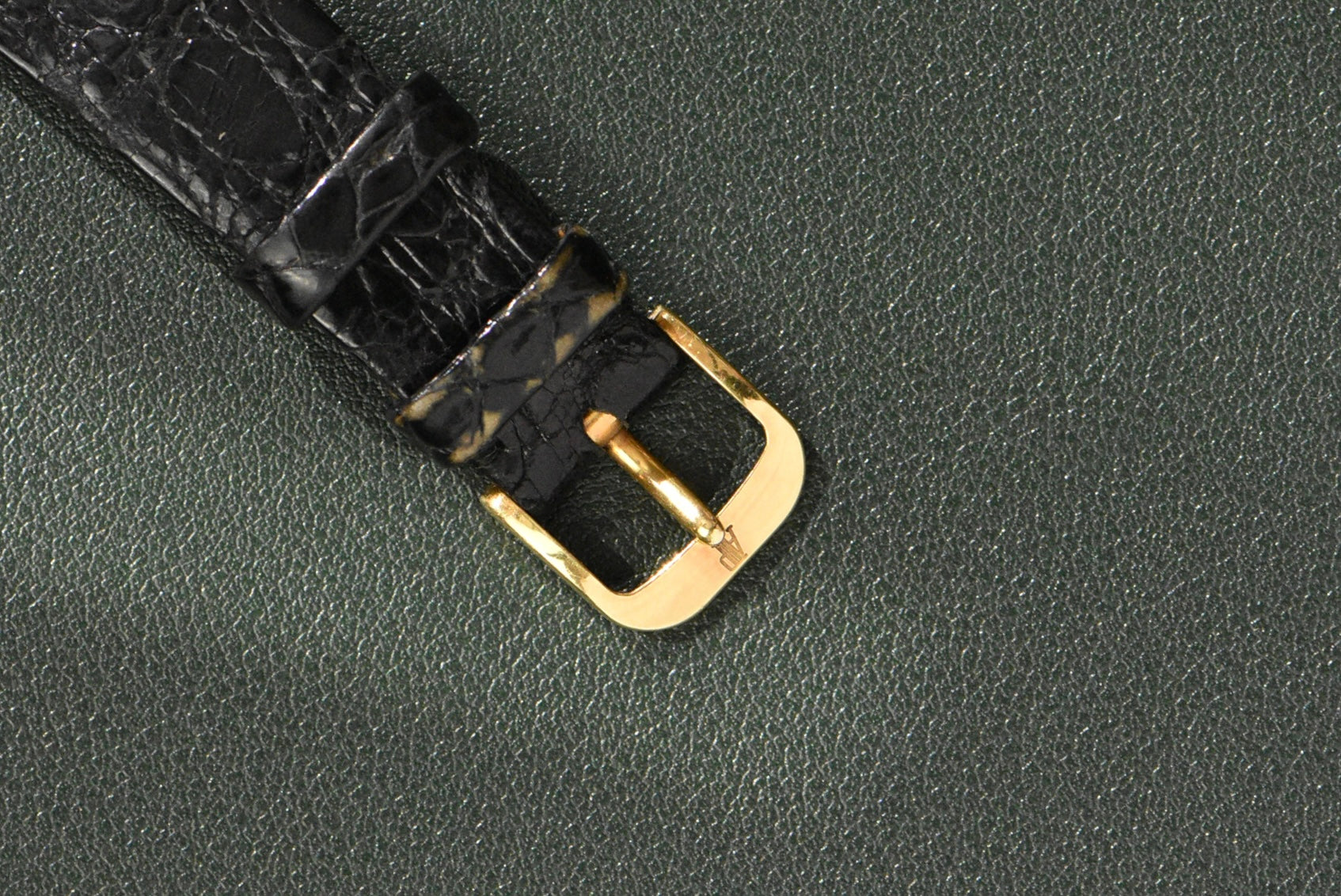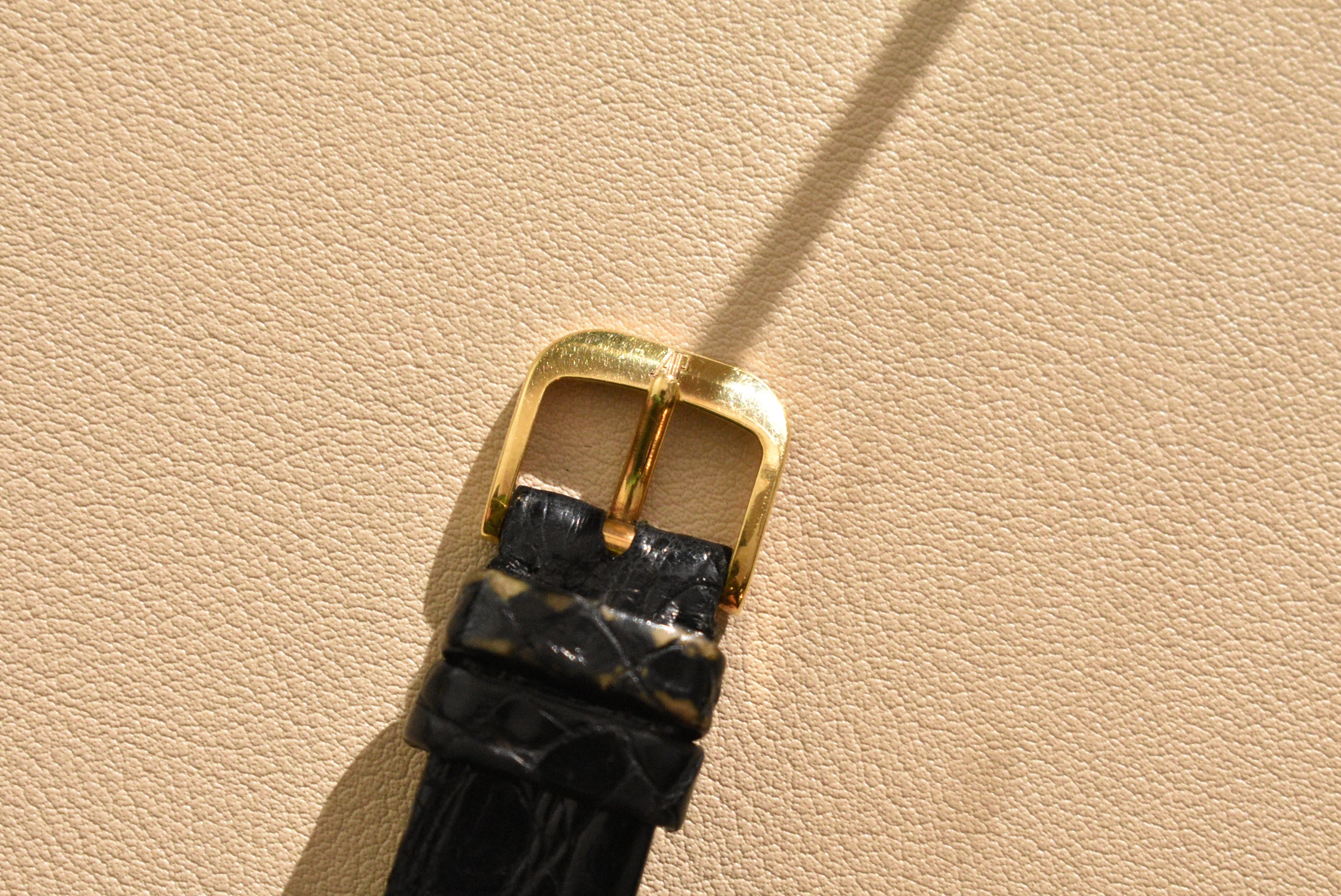 This AP has a rare solid gold coin-edged bezel. The hands have oxidized into a chameleon tone that looks great. The Roman dial has a sand-blasted pattern and is in amazing condition. The watch is paired with the original strap and buckle.