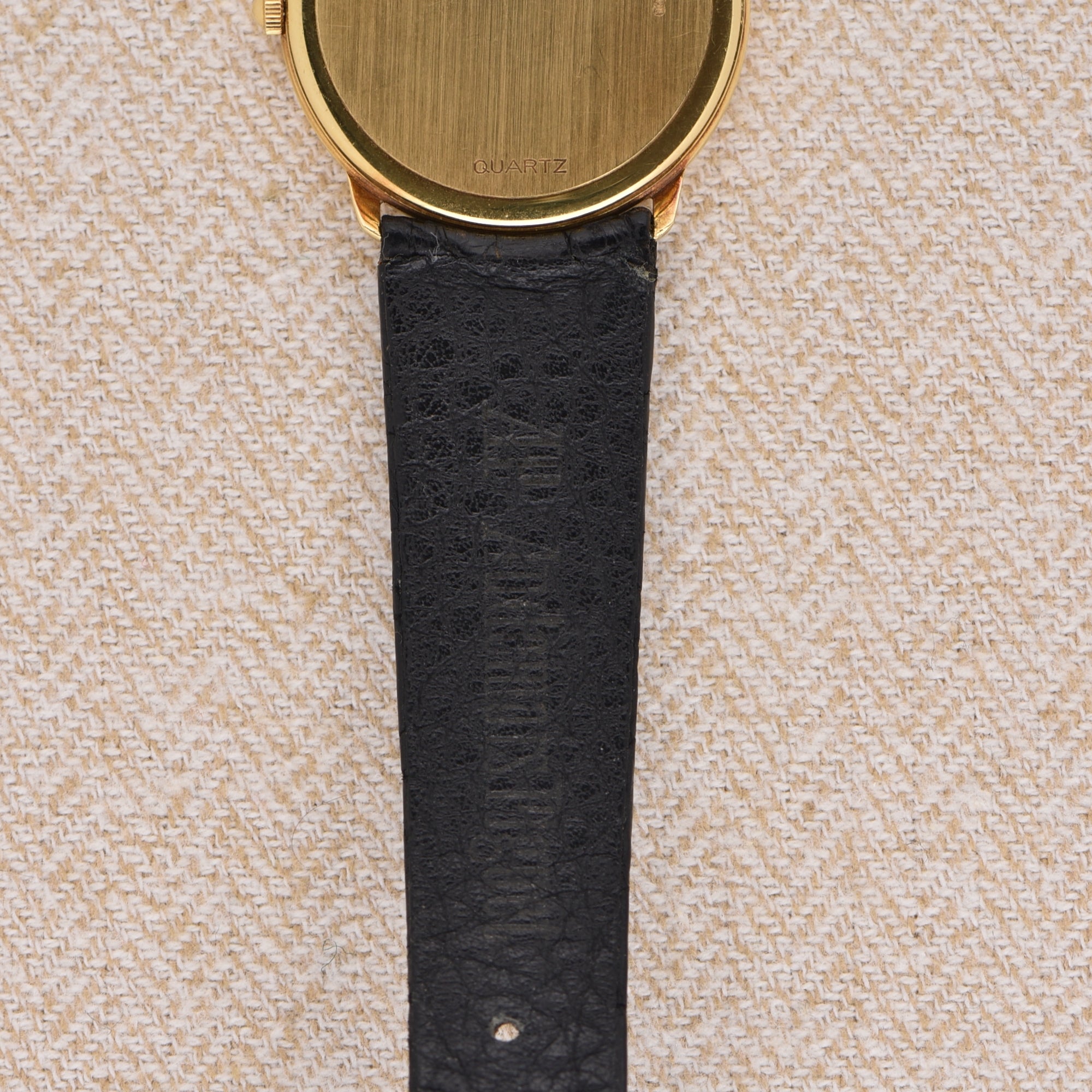 The case on this AP is in very nice condition. The crystal has no nicks or dents. The hands have a little bit of oxidization giving them a chameleon color. The original strap is still wearable, paired with the original gold buckle.