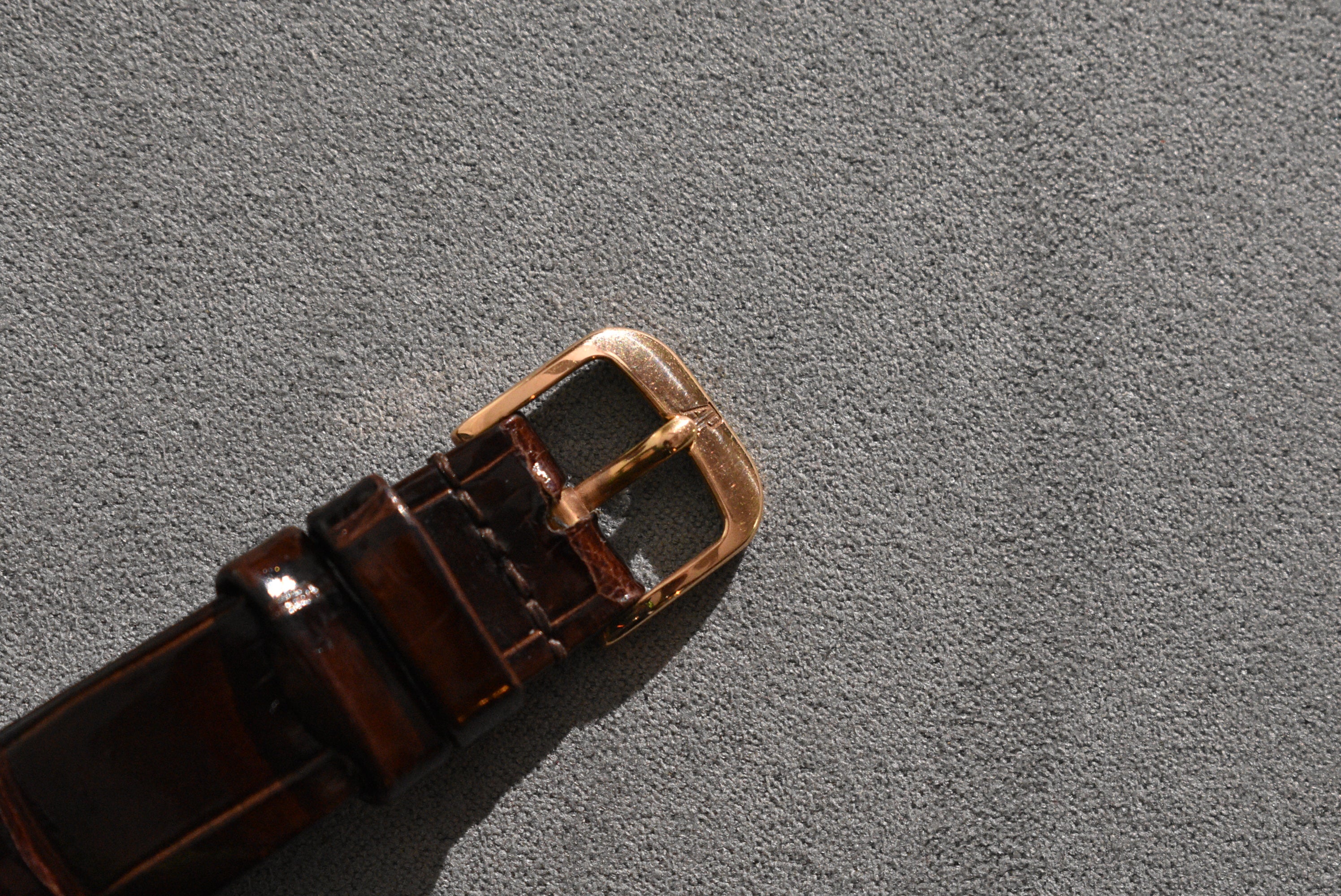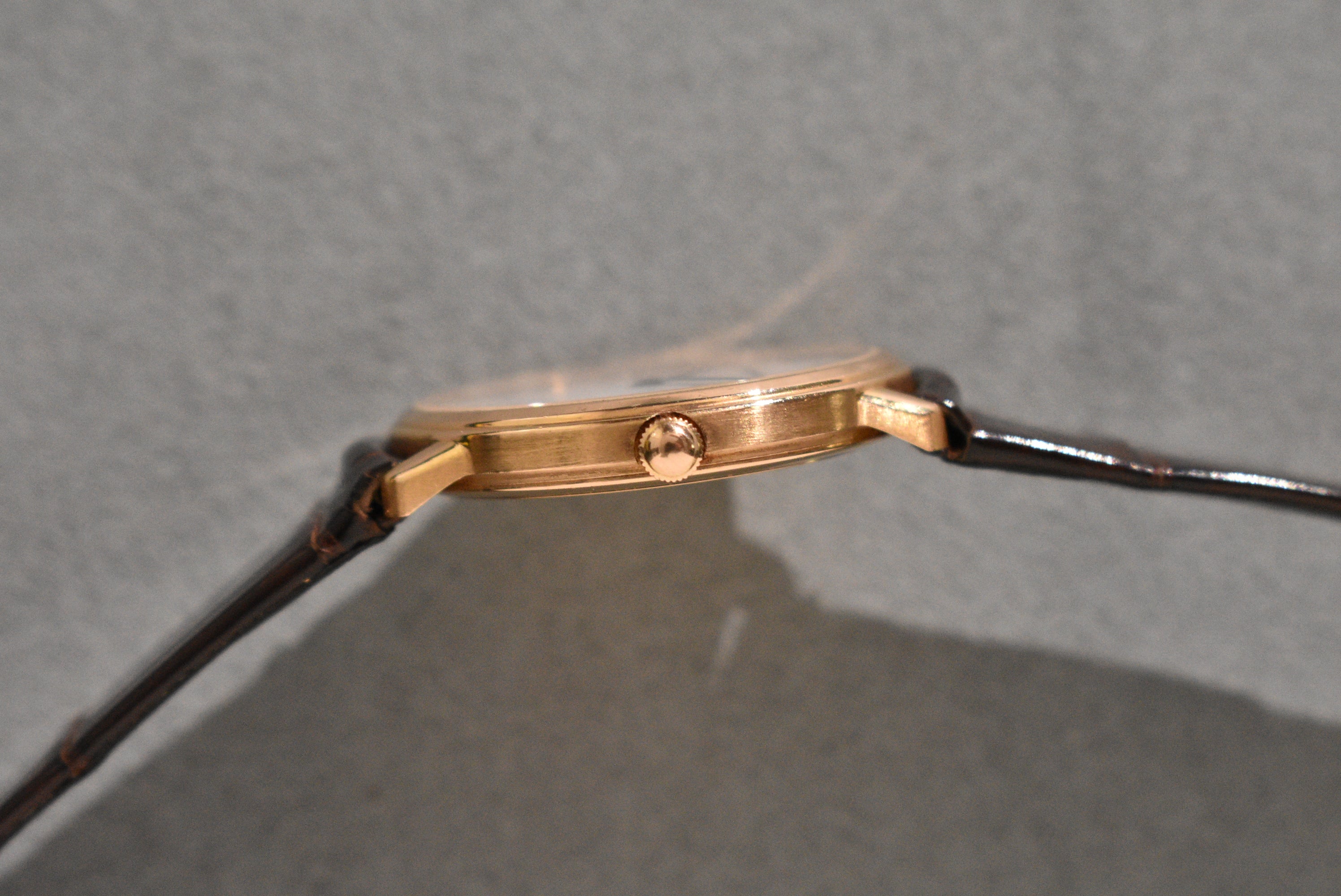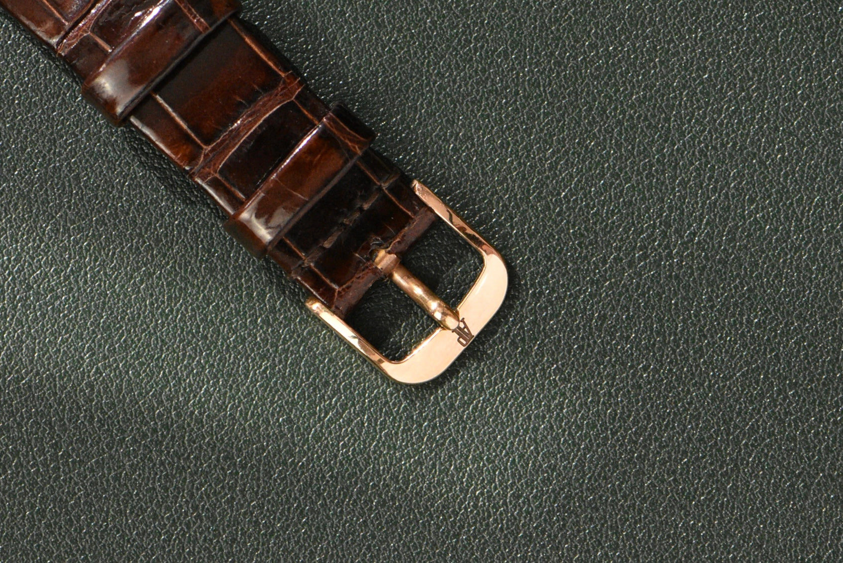 It's not every day you find an AP Calatrava. This very rare rose gold example looks great. It's noticeable that the hands have oxidized and started to fade but still look very clean. The lacquer gloss dial only has one crack going through it that is only noticeable in certain light. The watch comes with the original rose gold buckle