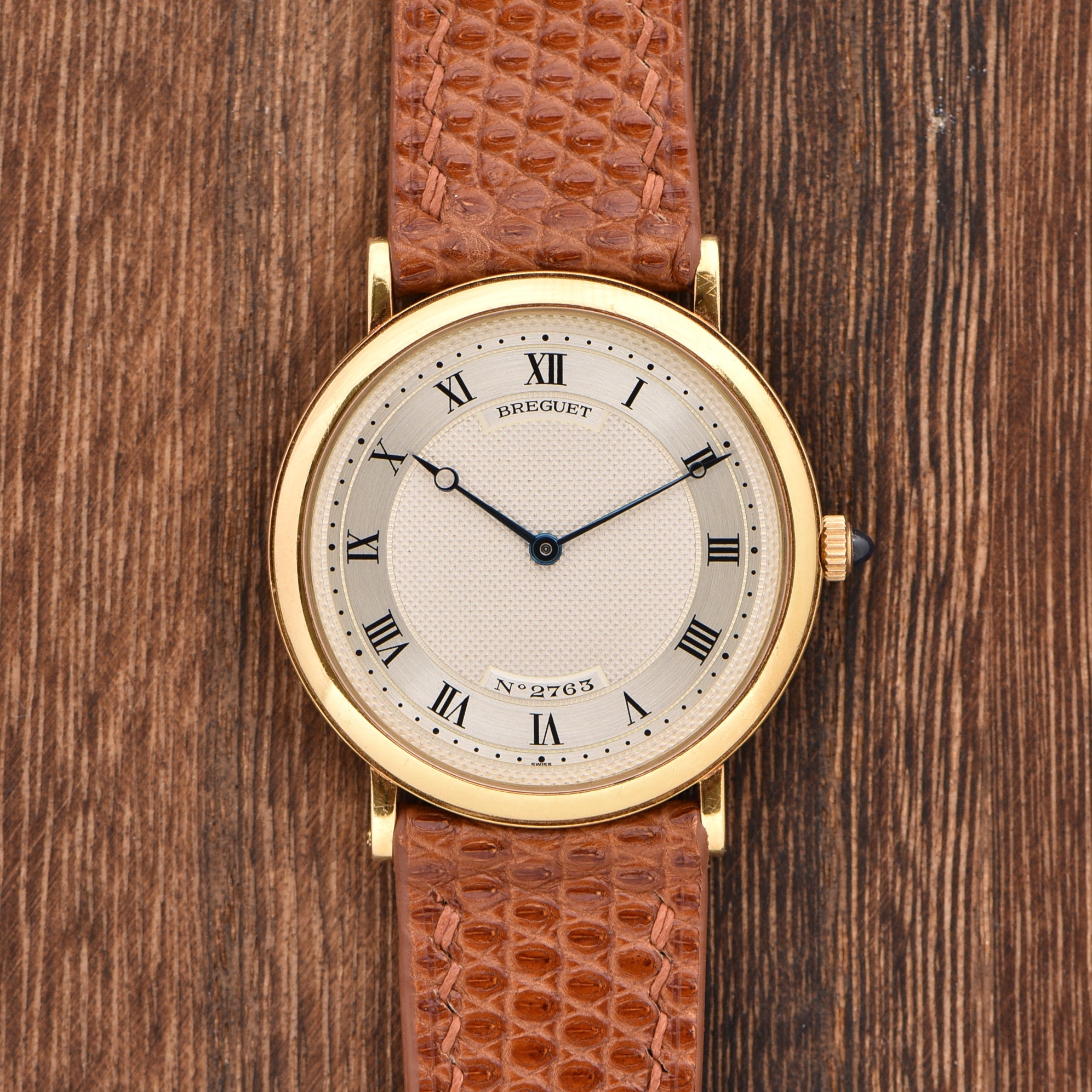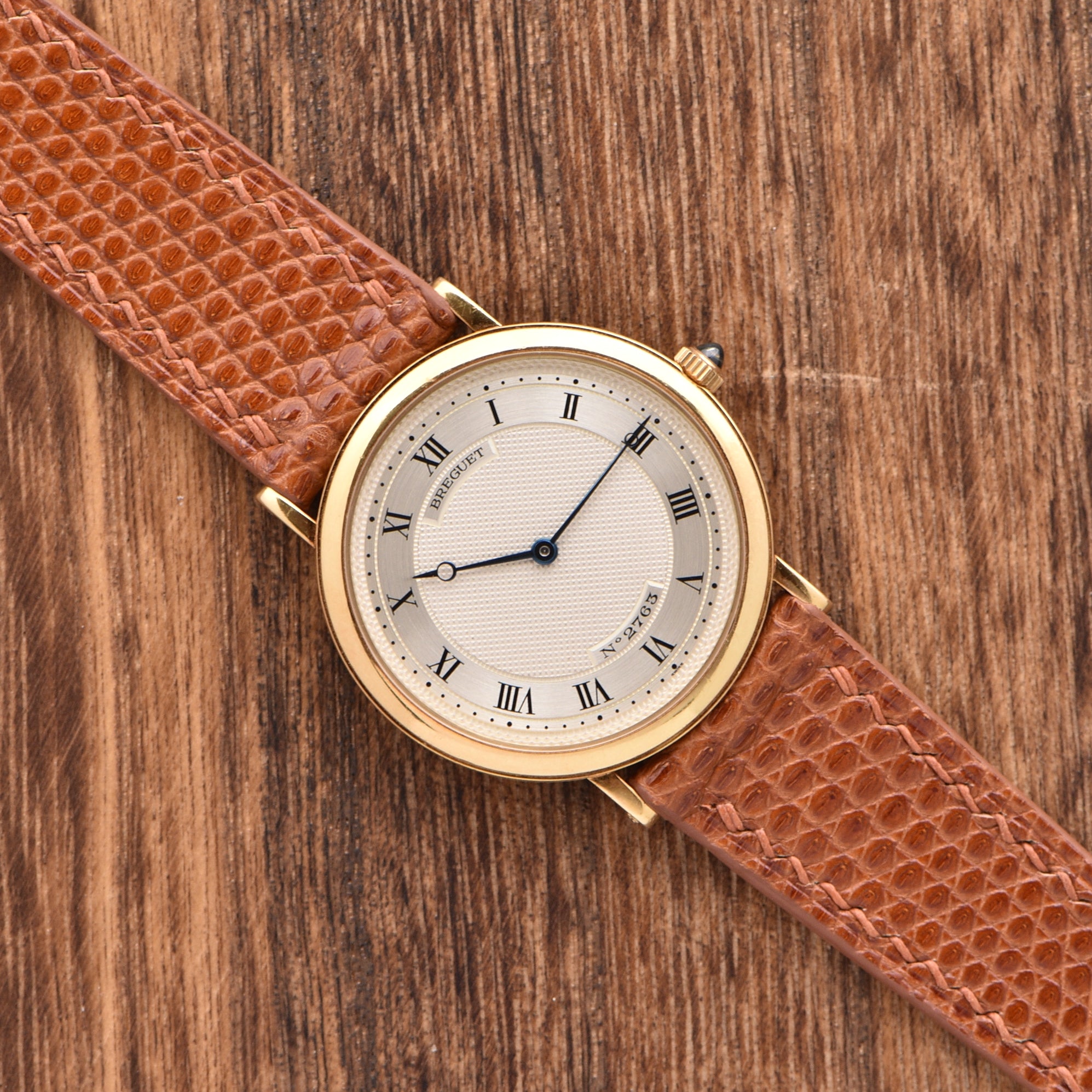 The Reference 3390 is not an easy watch to find. This Classique is an early example with the French hallmarks on the case back and no reference number engraving. The Classique line has stood the test of time. Its main details are beautiful Breguet Hands, Guilloché Dials, and ultra-thin precious metal cases.