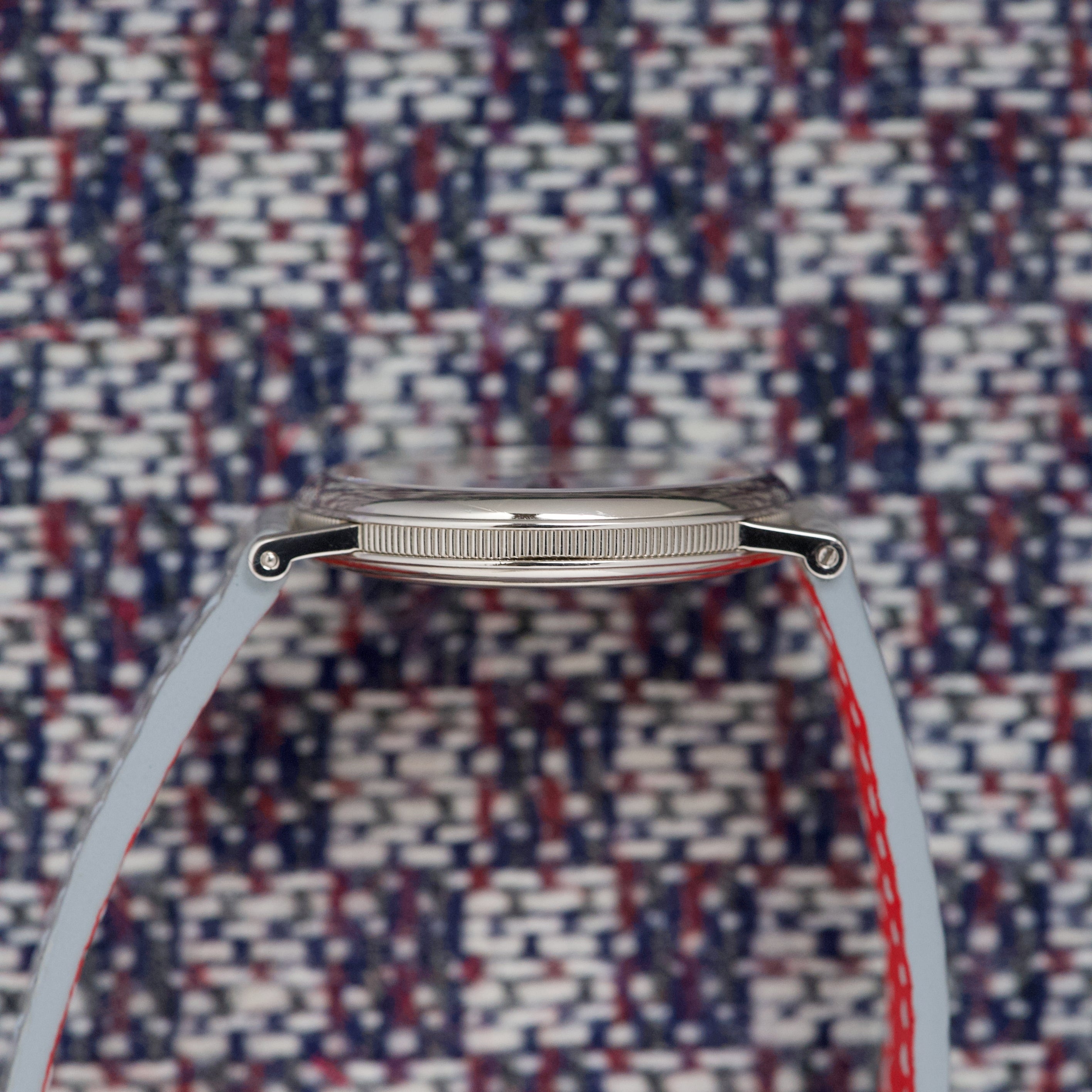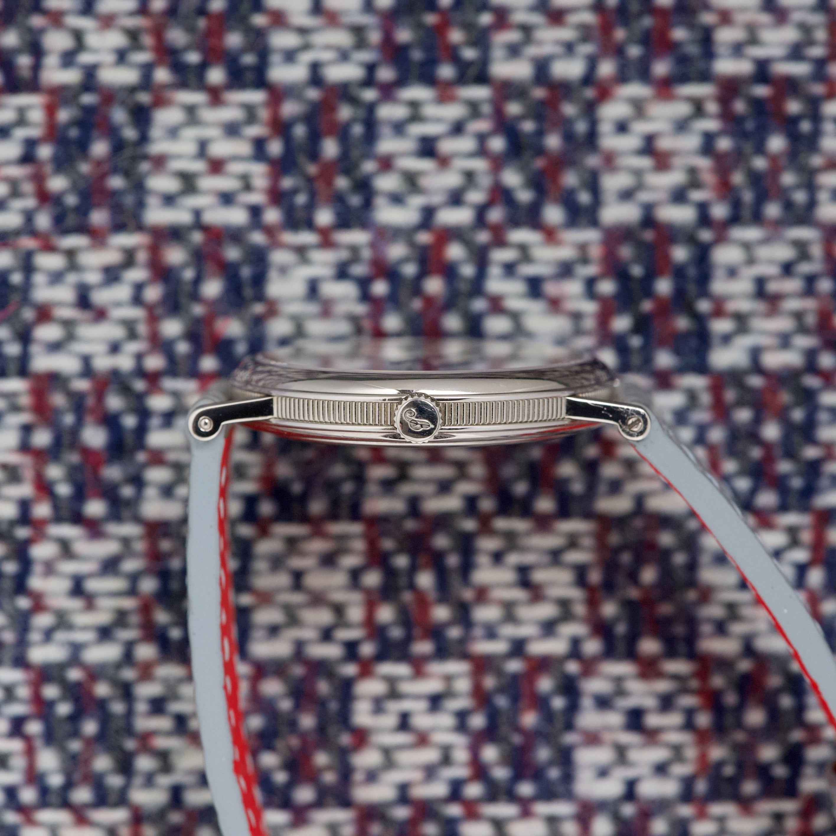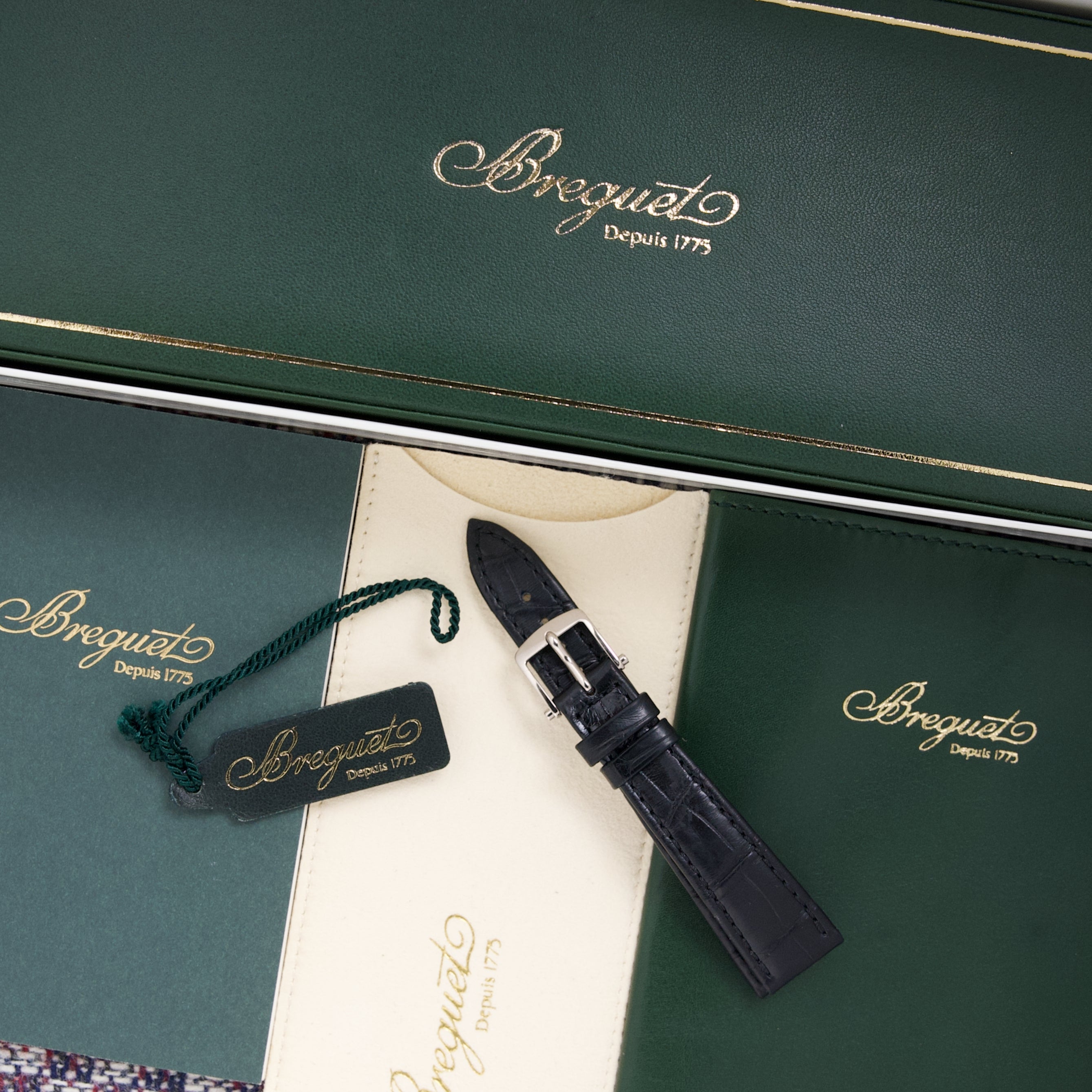 Strap & Buckle: The watch is on a new alligator strap from our handmade collection and it also comes with the original strap and white gold buckle.