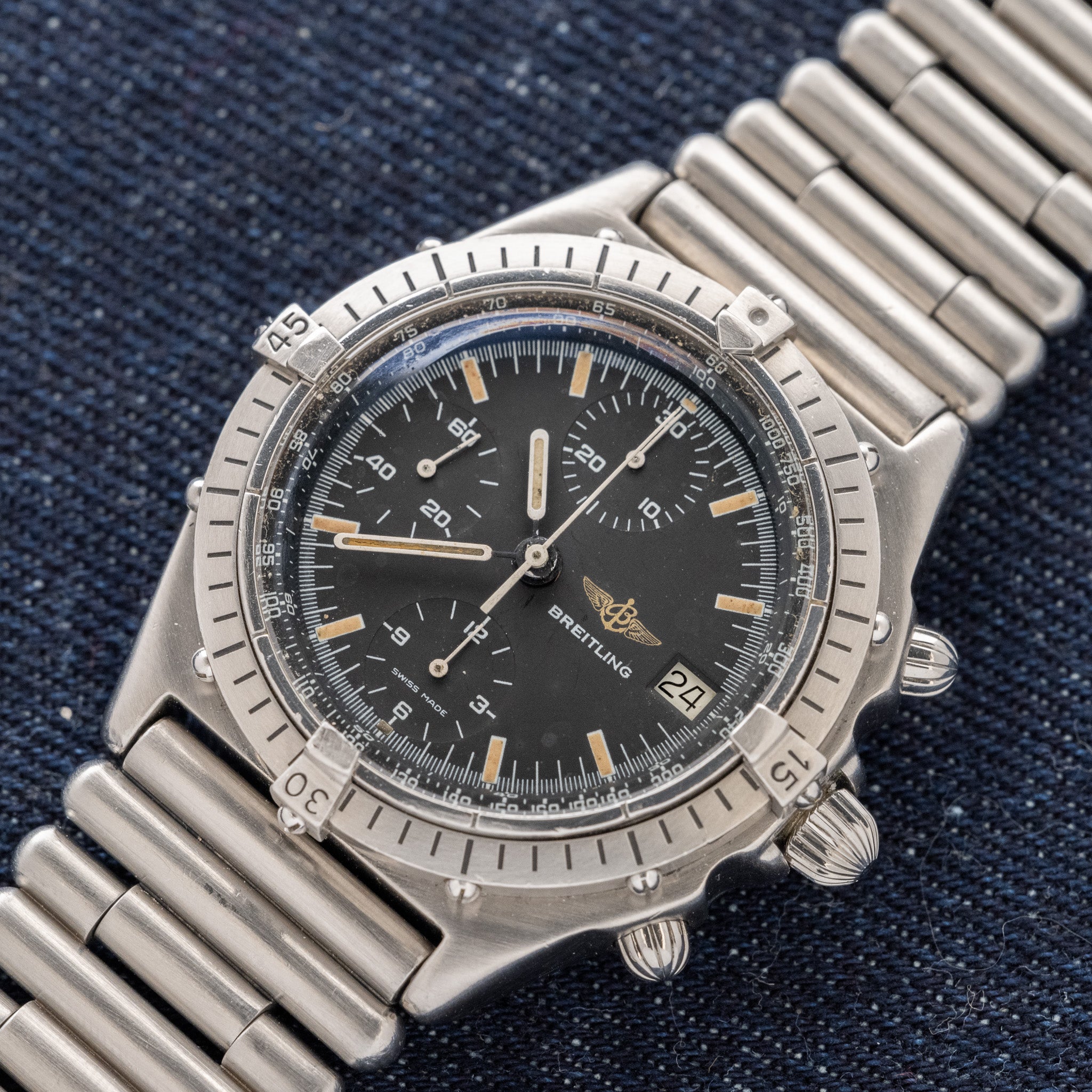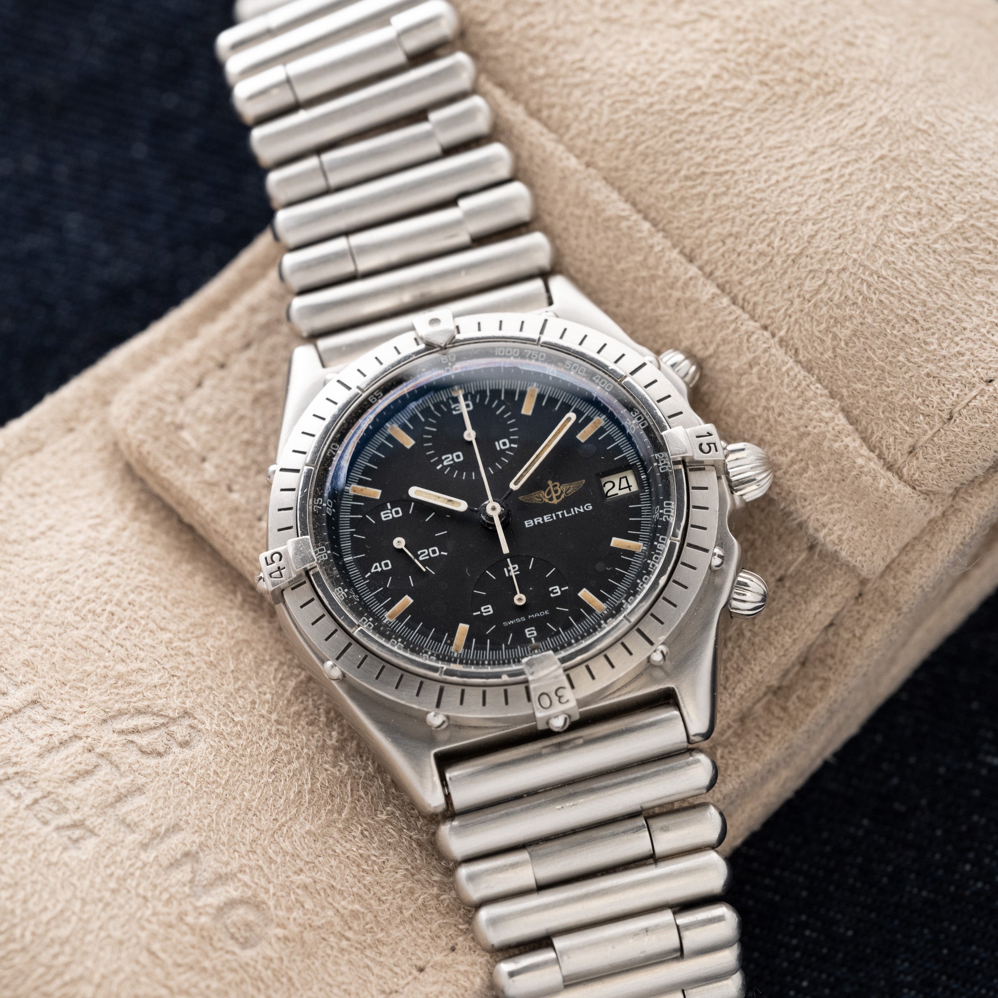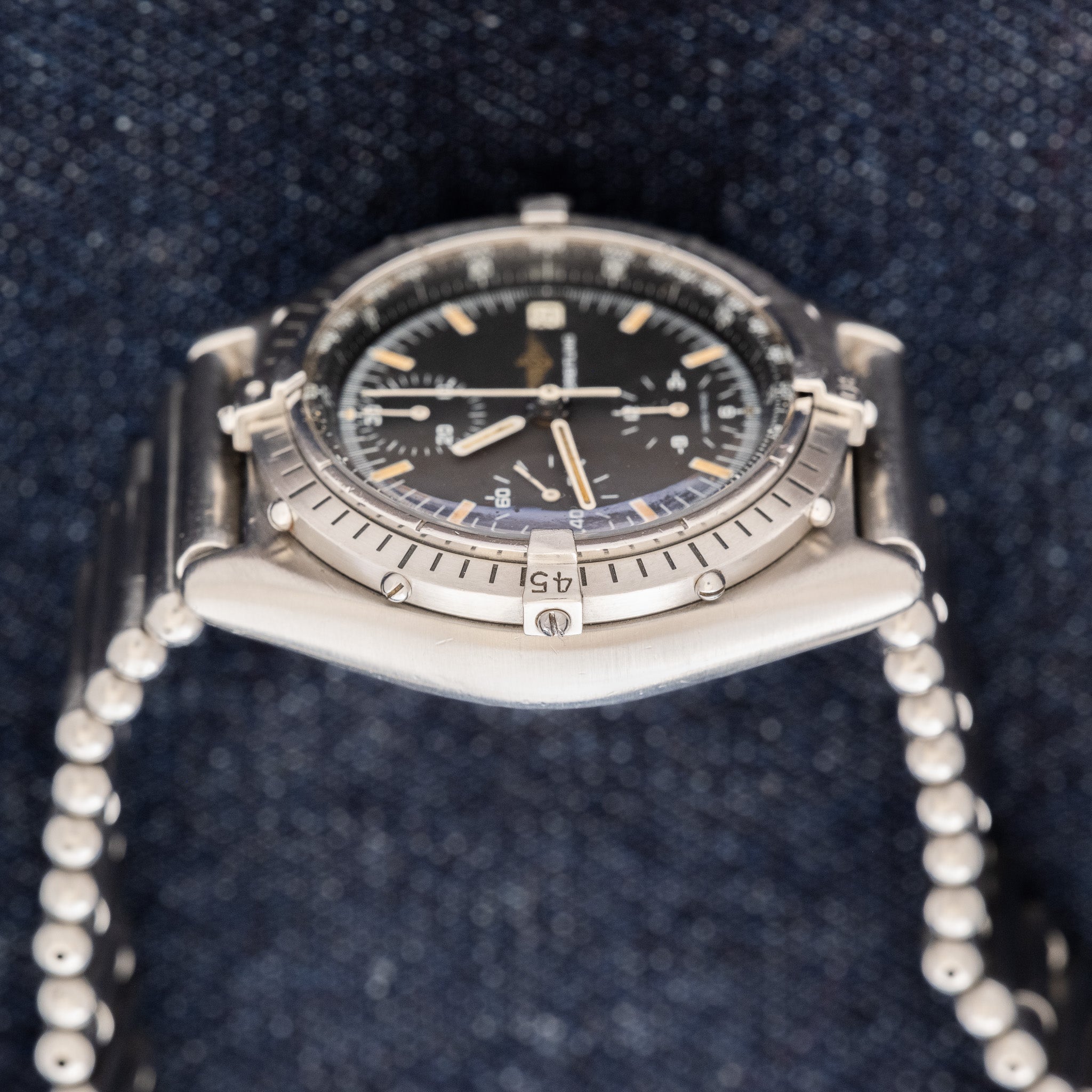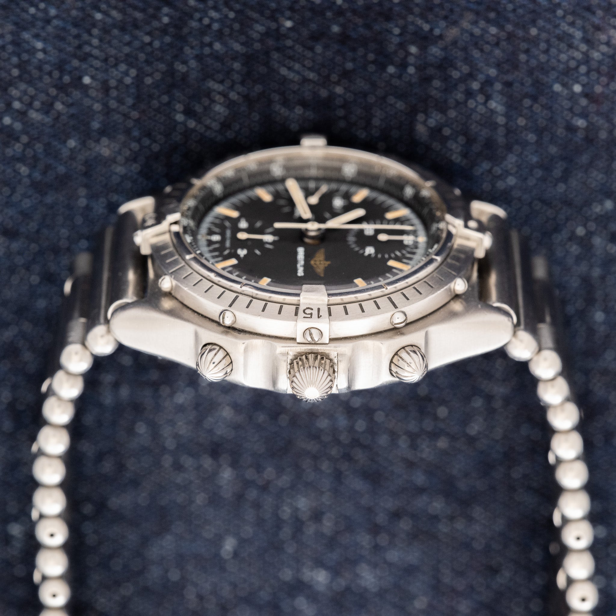 As the 100th anniversary of Breitling approached, Schneider wanted to launch a new watch that would revolutionize the industry and put the mechanical chronograph back at center stage. The Chronomat retained the design elements that made its precursor a faithful companion of Italian Jet Pilots one year before, including the signature rider tabs, smooth and streamlined case, and iconic "Rouleaux" bracelet.