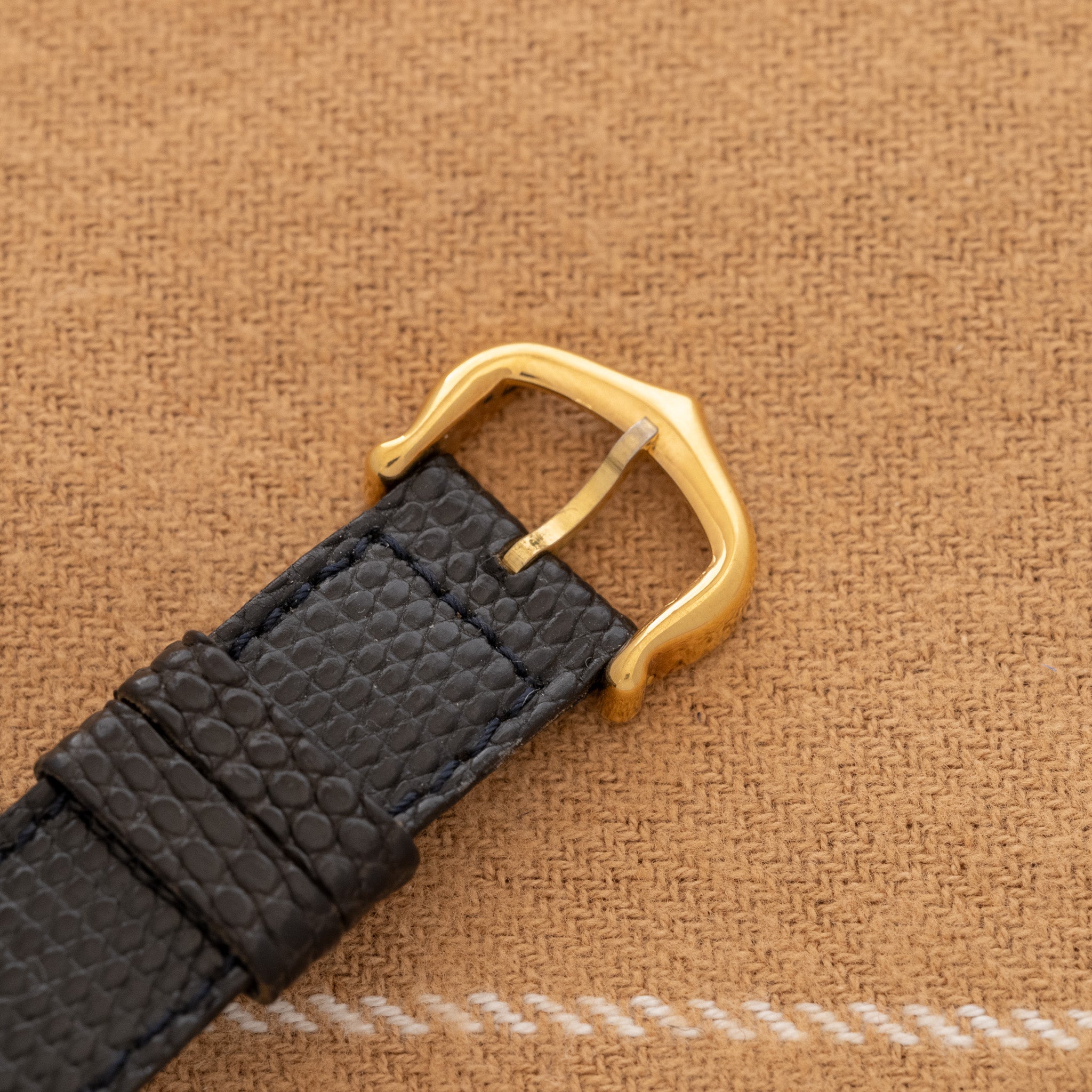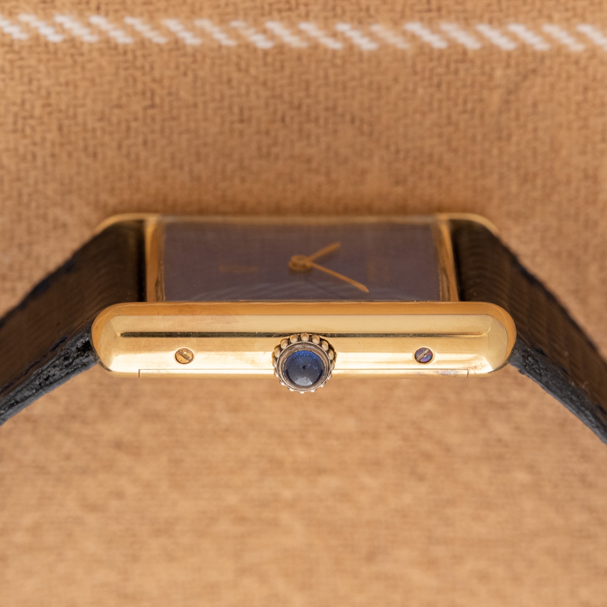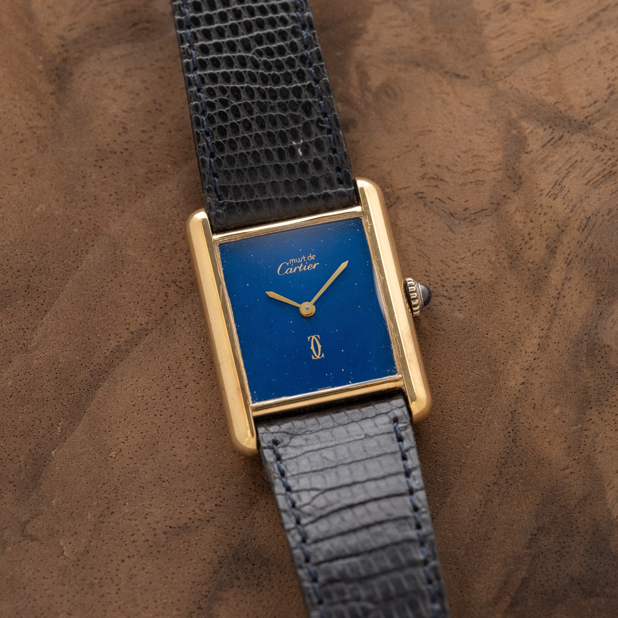 Fun fact: The 'Lapis' Tank isn't real Lapis stone. A lot of dealers don't state it but the Must De Cartier "Stone" dials aren't stone, they're lacquer painted dials. With that being said, the 'Lapis' dials are fantastic watches. Beautiful blue dials with gold speckling throughout. Its a fun option when wanting to add a bit of color to your watch collection while being able to wear a dress watch like the Tank.