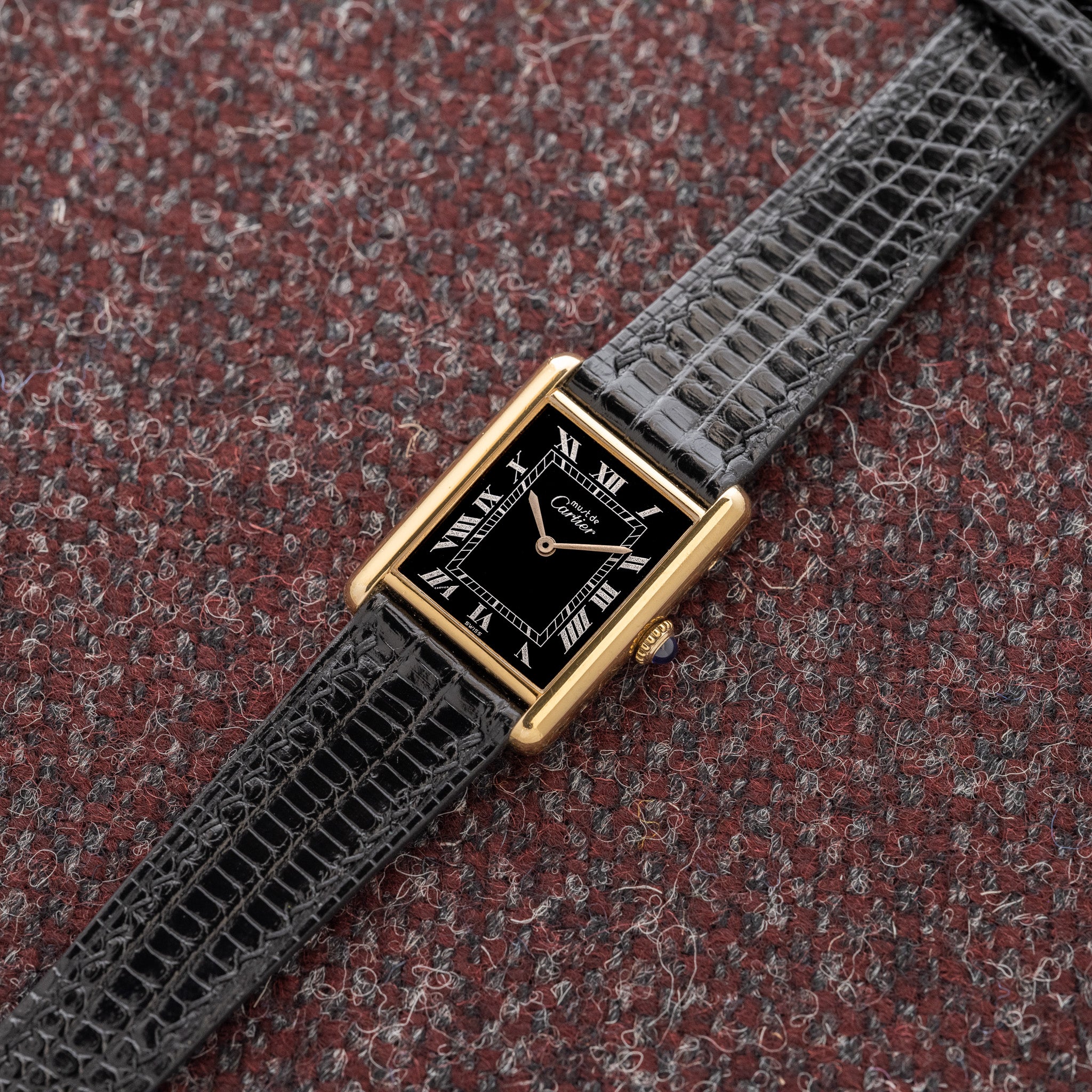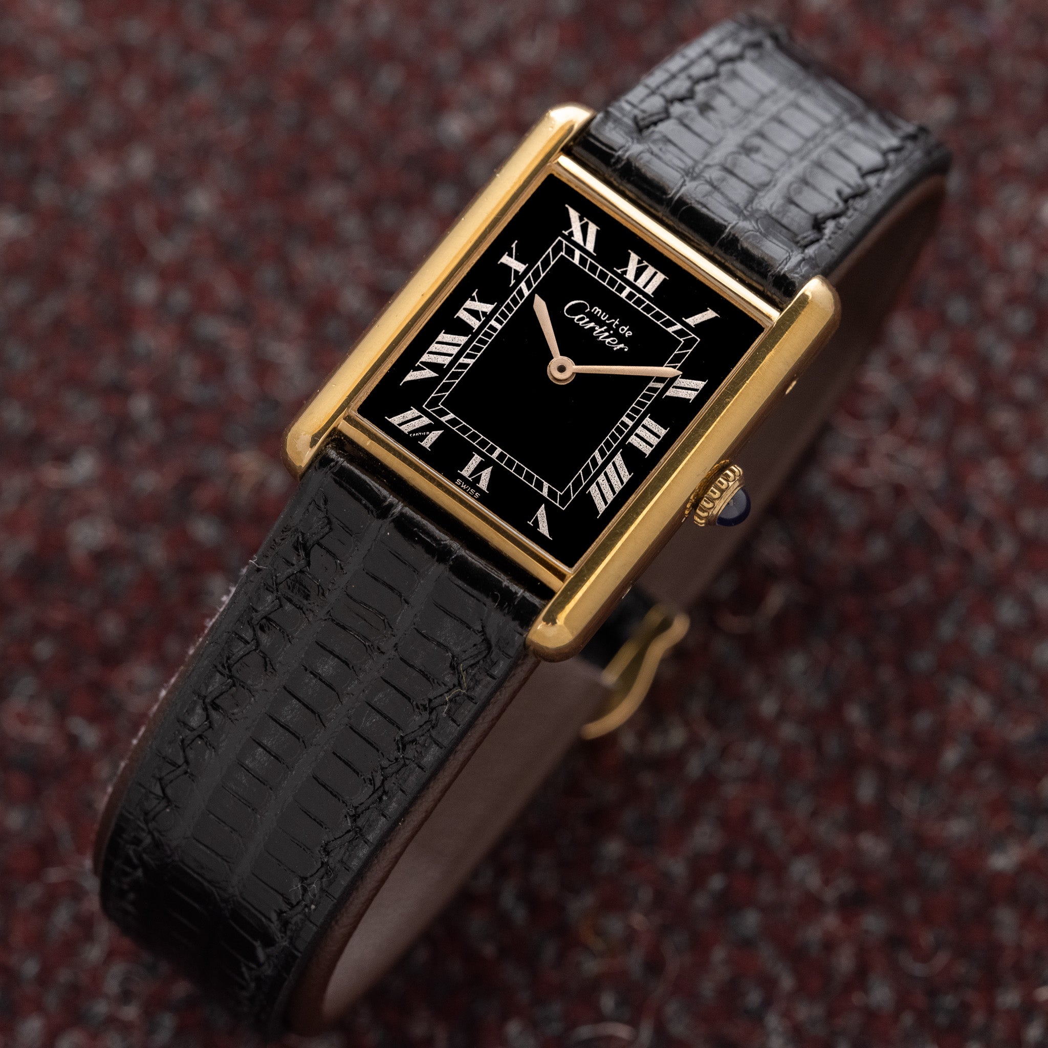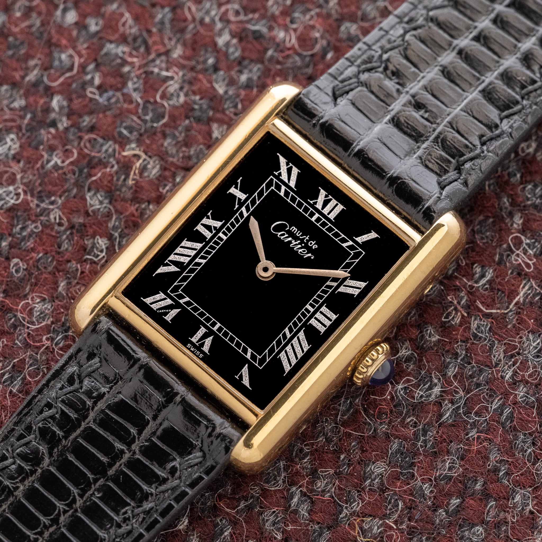 The History of The Must De Cartier - The Must de Cartier line, created by Robert Hocq and Alain-Dominique Perrin, aimed to attract new customers by offering accessories and leather goods with the essence of Cartier. The Must de Cartier Tank wristwatch was the brand's most iconic item, made from sterling silver with a minimum of 10k plating at 2.5 microns thick. Launched in 1976, the line marked key milestones for the brand, including being the first non-precious metal watch and the first mass-produced watch. The brand produced around 3000 watches per year before the Must Line, and by the end of the 70s, they were producing over 160,000 watches per year. The dials varied, with faux-stone dials resembling onyx and lapis, lacquer dials in wood and tortoiseshell, and the Trinity dial featuring five stripes in a center section in yellow, white, and rose gold. The Trinity dial was a favorite among fans.