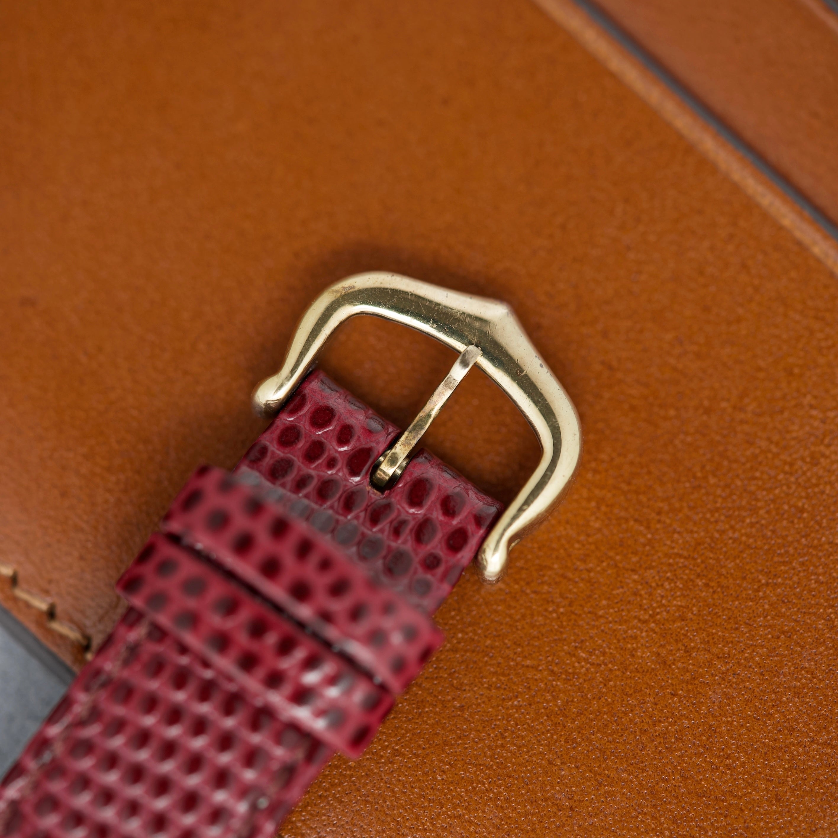 Strap & Buckle: The watch comes on a Hirsch strap perfectly matching the dial color. The watch does have its original Cartier buckle.