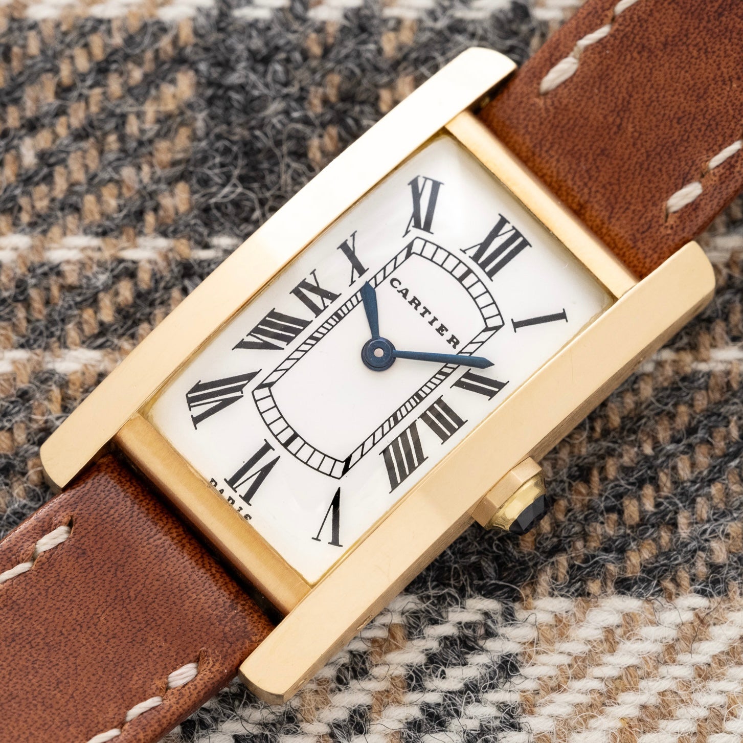 The Cintree is perhaps the most desired of all of the Tank variations. Its beautifully curved case has drawn the attention of collectors across the world. Over its many years, several different sizes of the Cintree have been produced, which have come to be classified as large, midsize, and small. We personally love the way that the midsize wears, and it is perhaps the best wearing of the three variations.