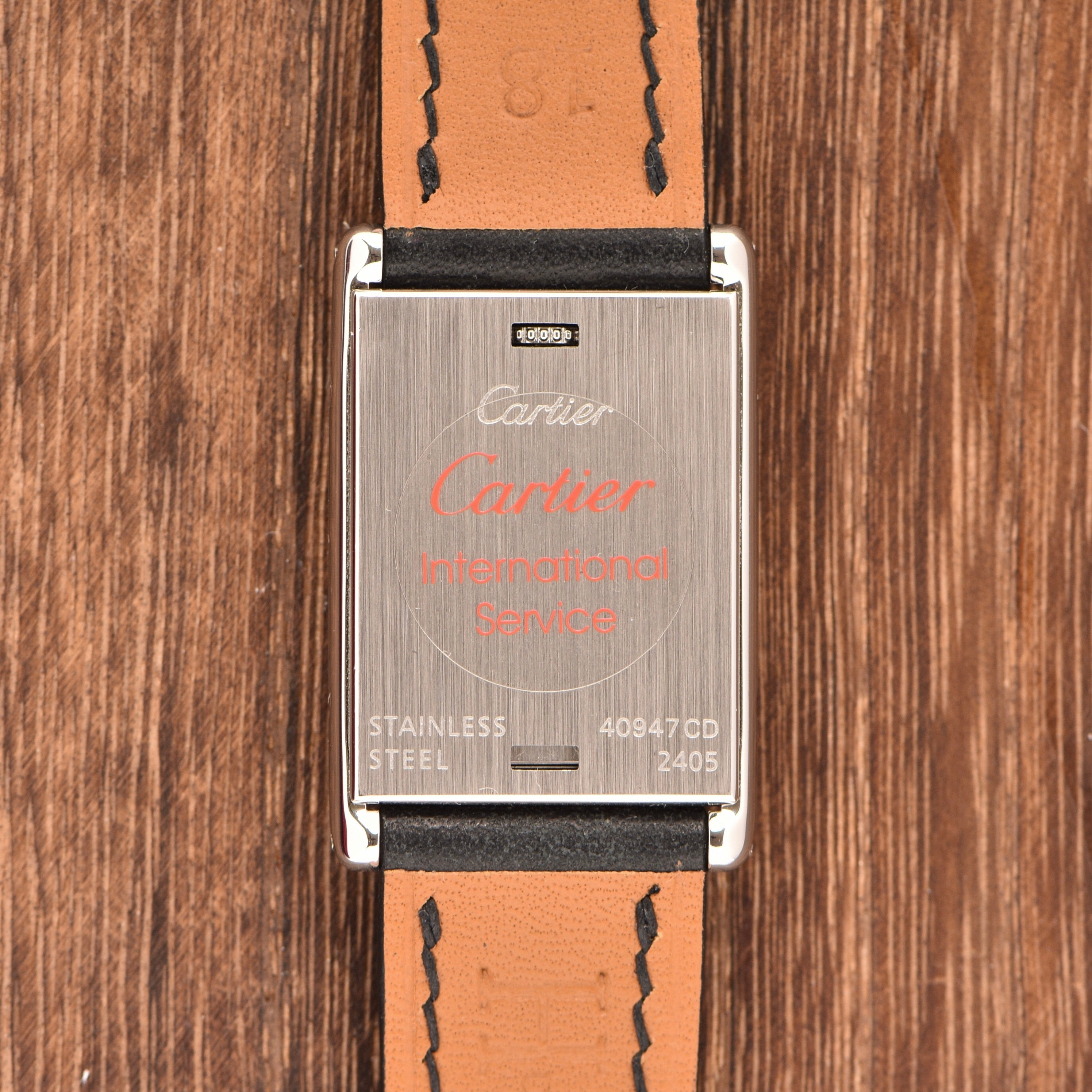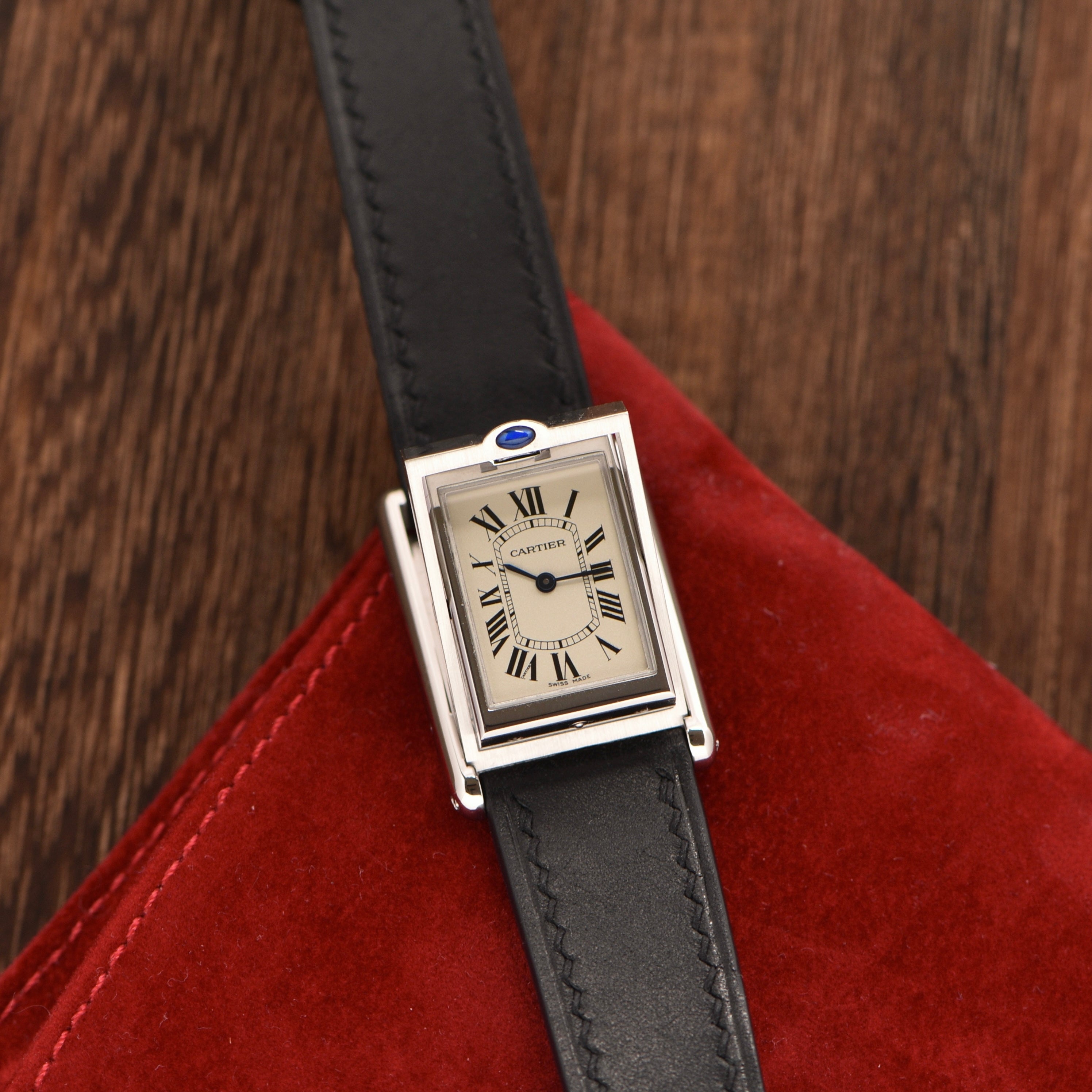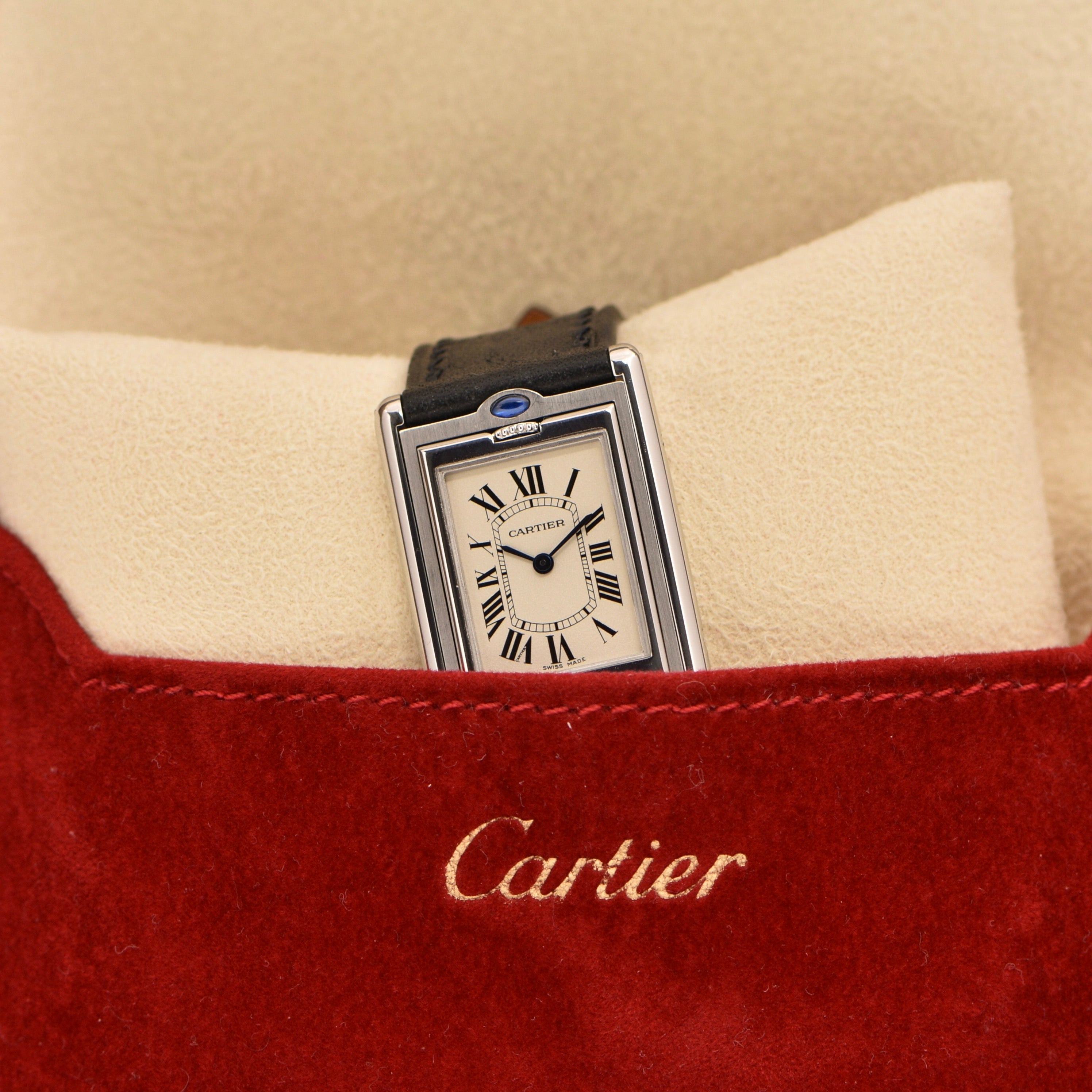 Case: The case is 23x35mm and is in great condition. The case back has the Cartier sticker from a recent service done with the paperwork. The case mechanism has also been serviced and is nice and stiff; it feels brand new.