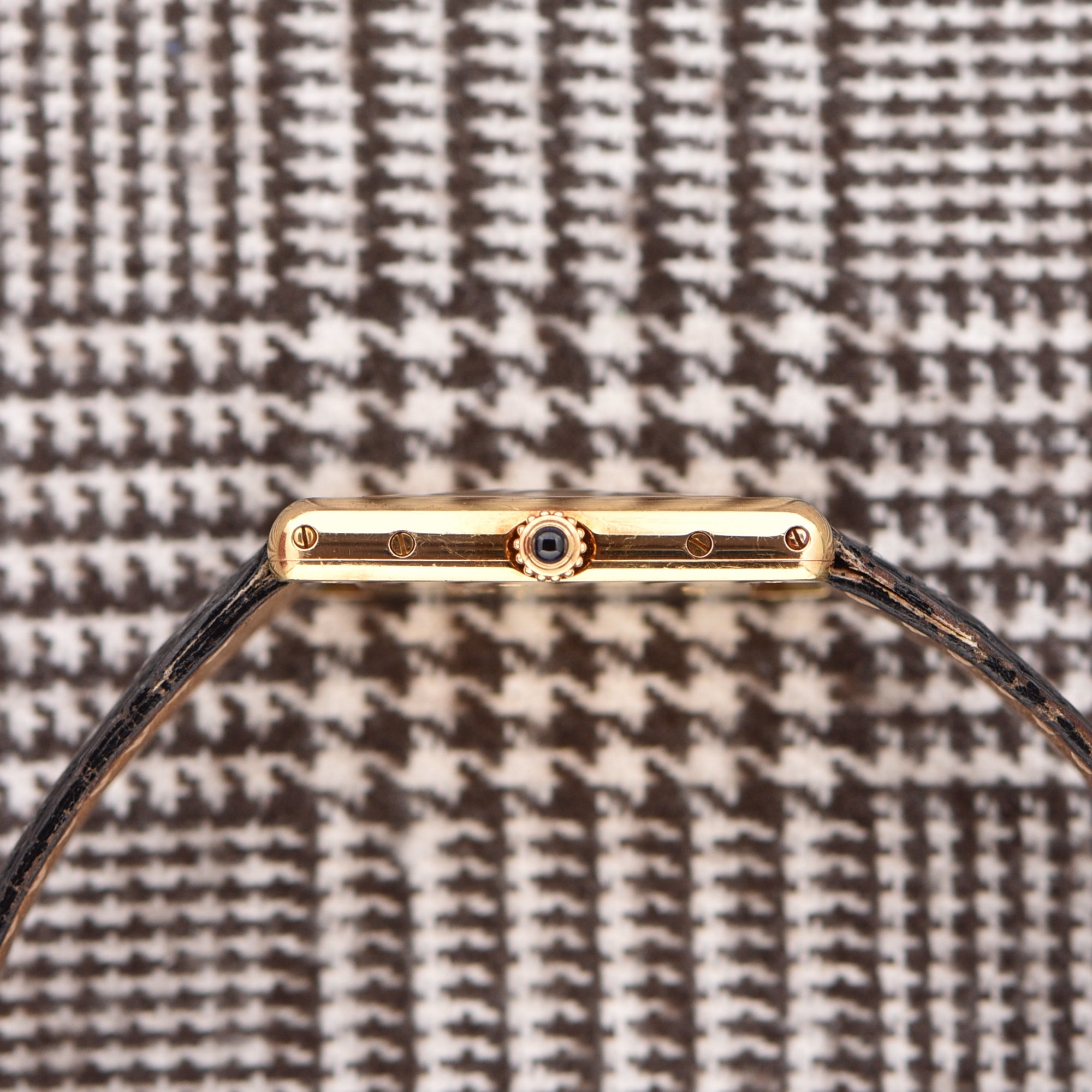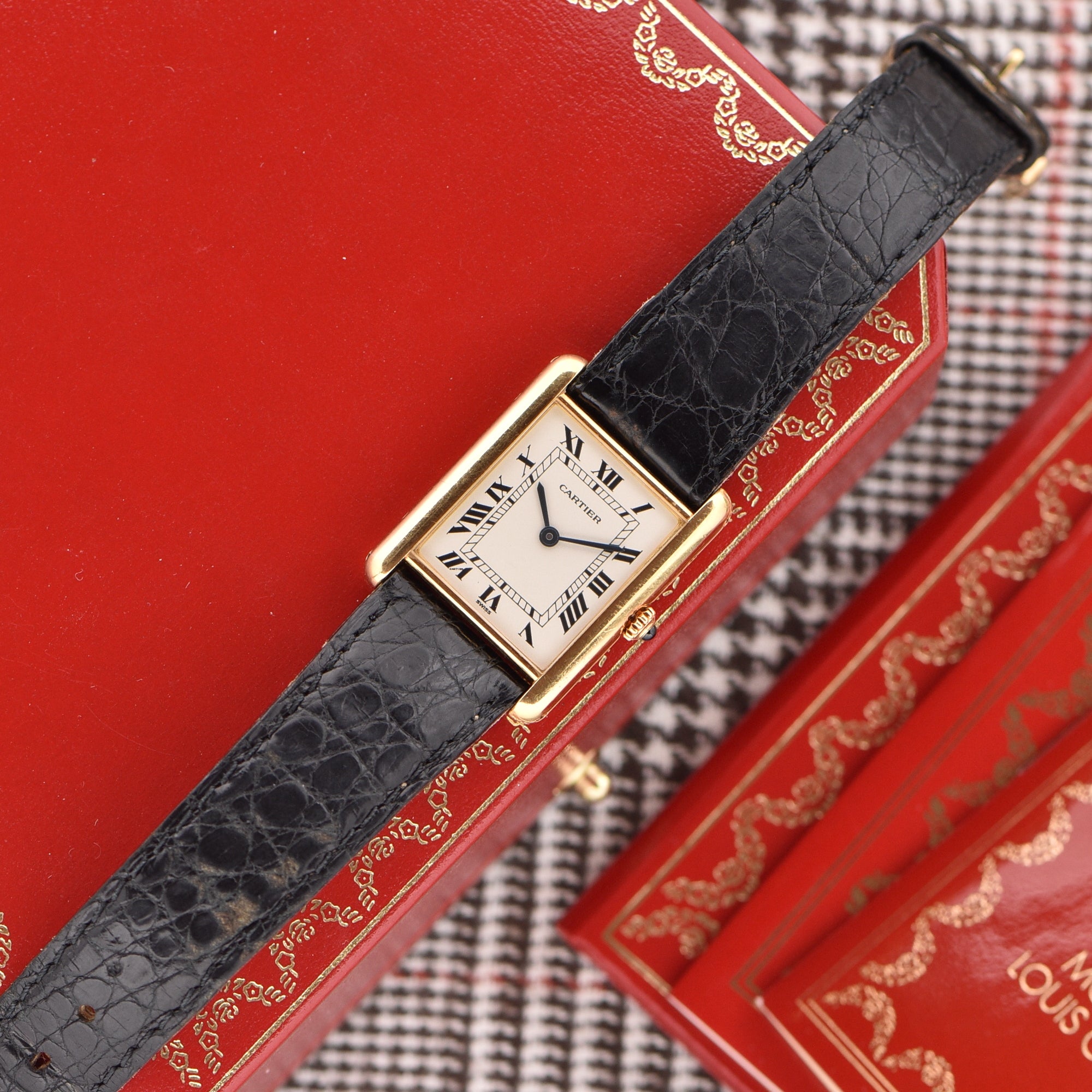 This is a clean example of the tank overall. The case has normal wear. The dial is very clean with beautiful blued hands. The watch comes as a complete set with its box and papers plus the original strap and buckle.