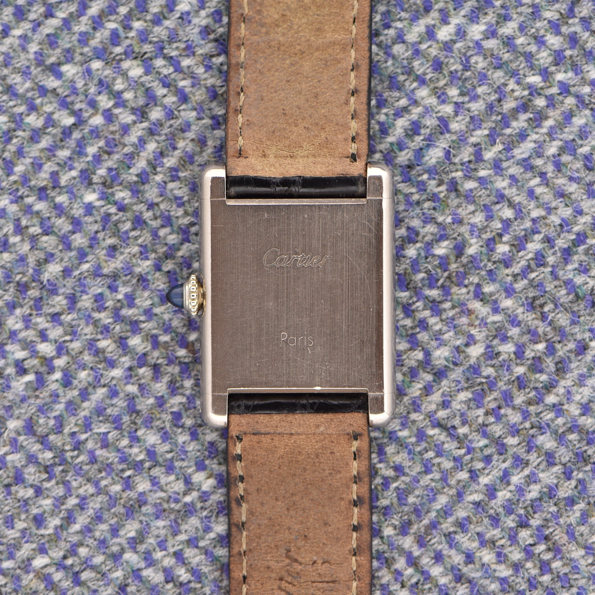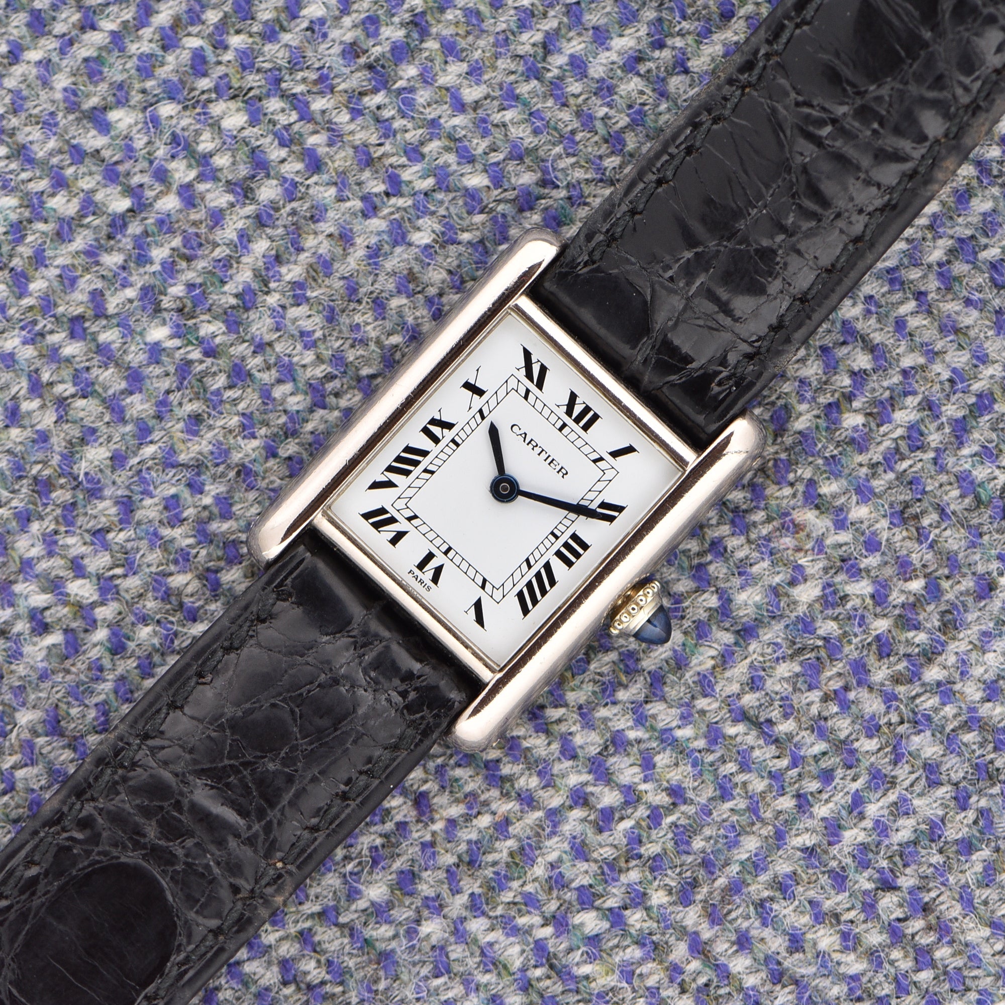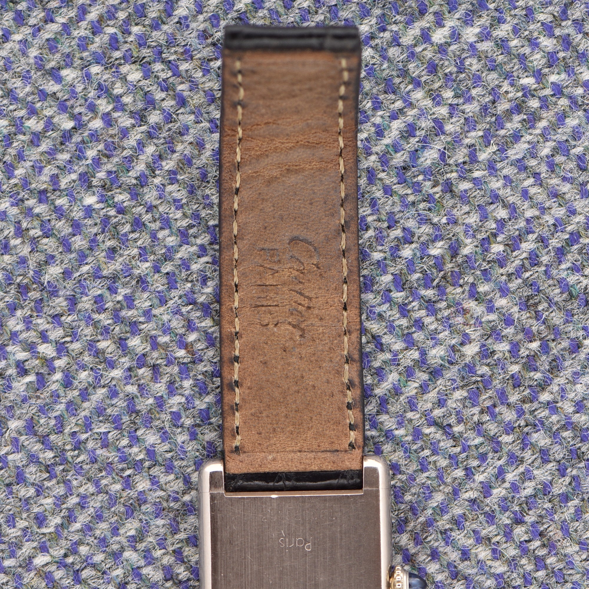 This Louis is in amazing condition, with normal wear. The rare white gold case does show signs of a polish. The watch is an early example of the 78087 with a large pointed crown. The Paris stamped dial has very little wear. The watch comes with a Cartier deployant buckle, also in white gold.