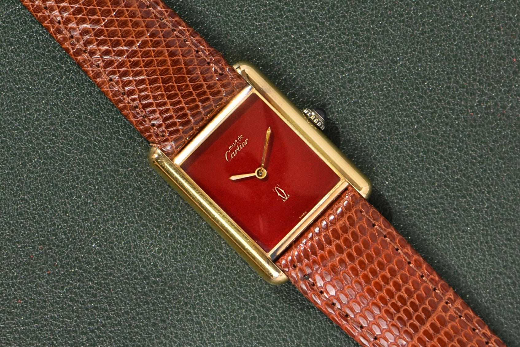 Cartier Tank Must De Cartier Burgundy Red Dial **Pending Sale**