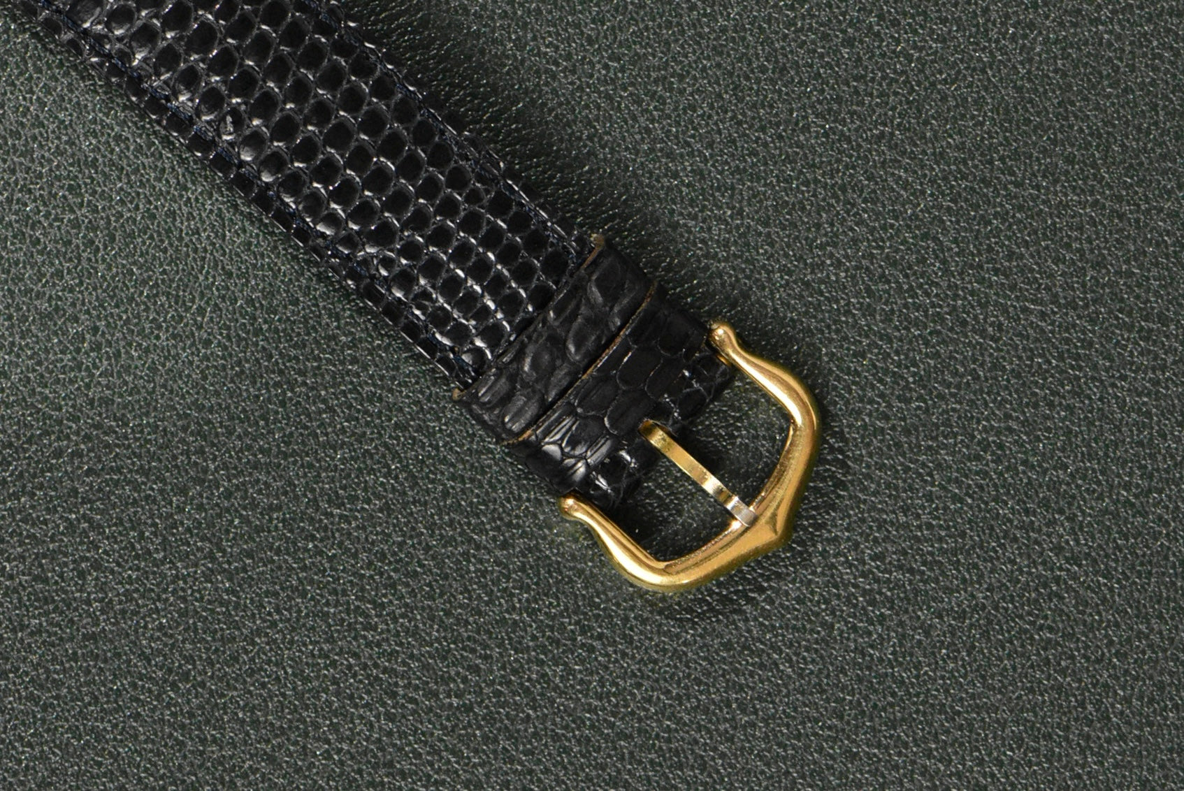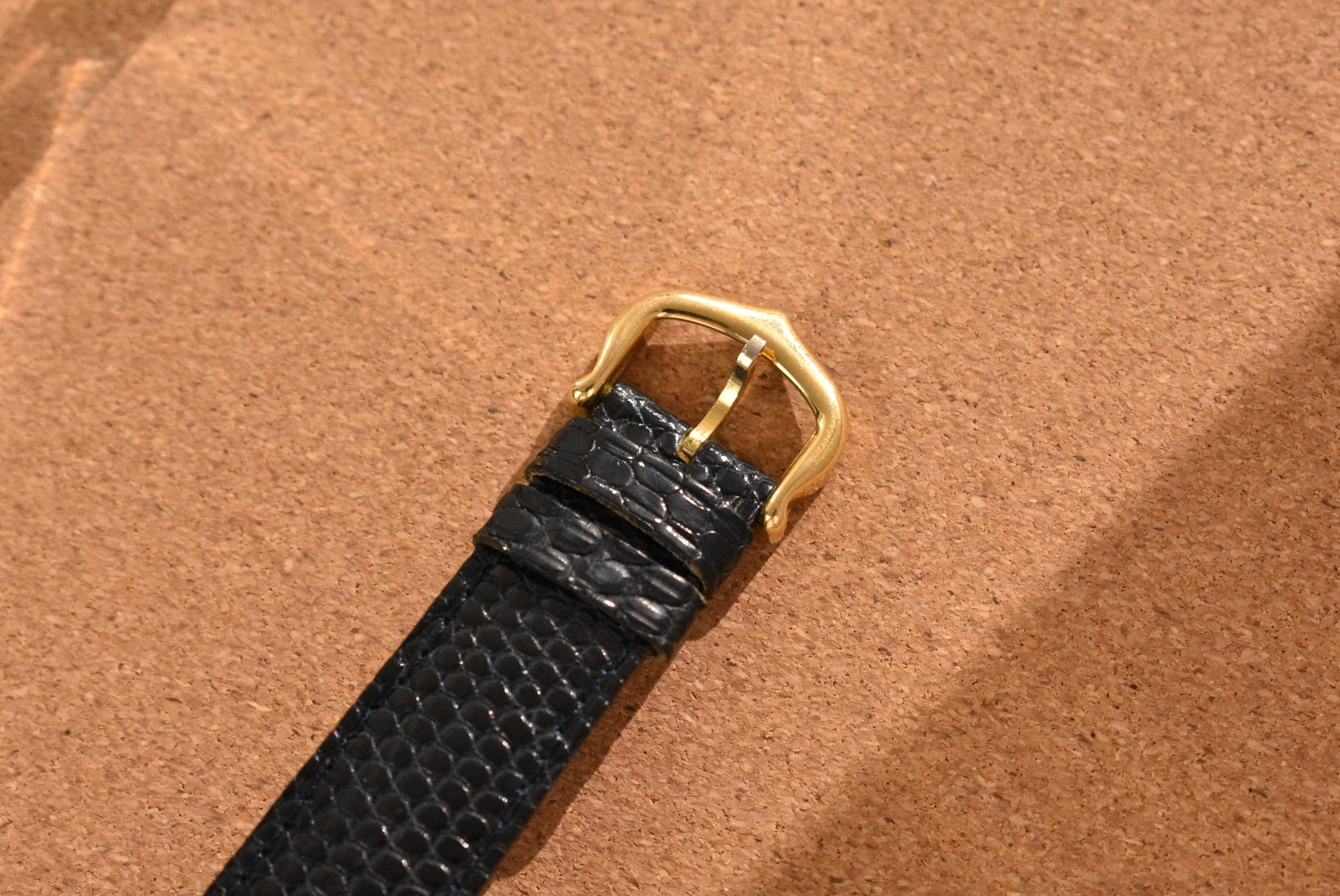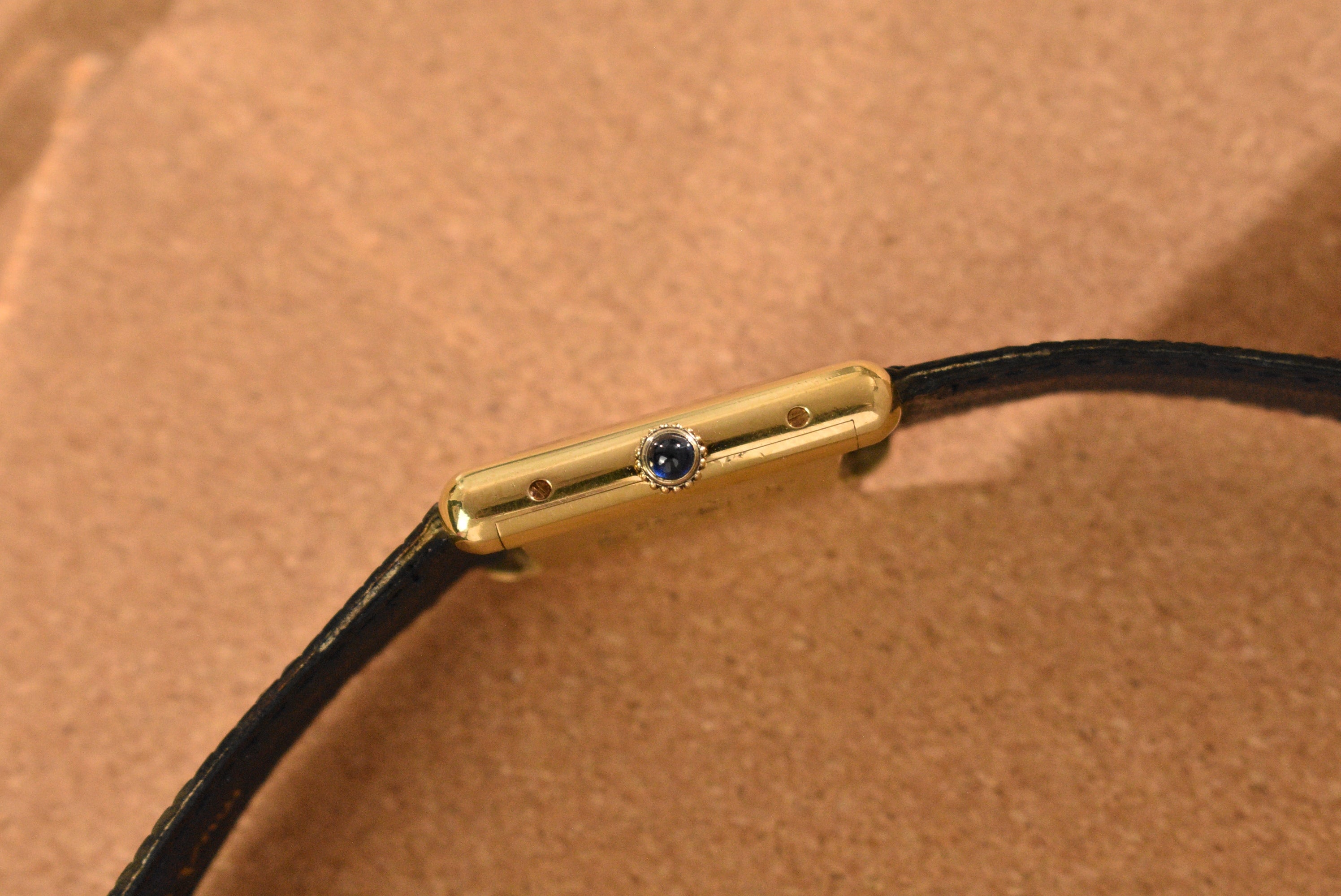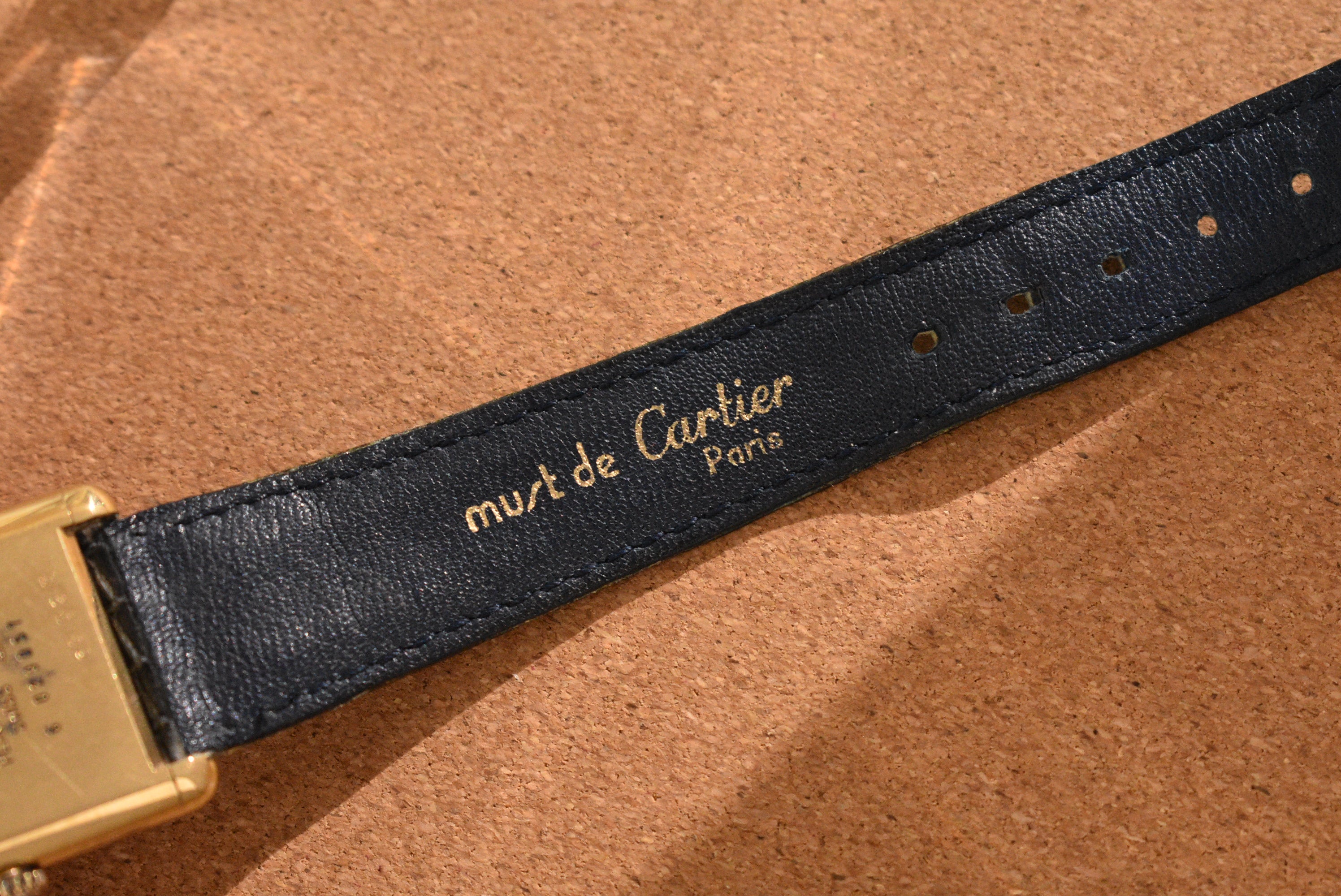 This Cartier Tank is in impeccable condition. Noticeable light marks in some places but nothing major. The dial is in great condition with little-to-no wear, not even noticeable to the naked eye. The best part is, this Tank is paired with the original strap and buckle. The strap is a very deep navy blue and is in crazy good condition.