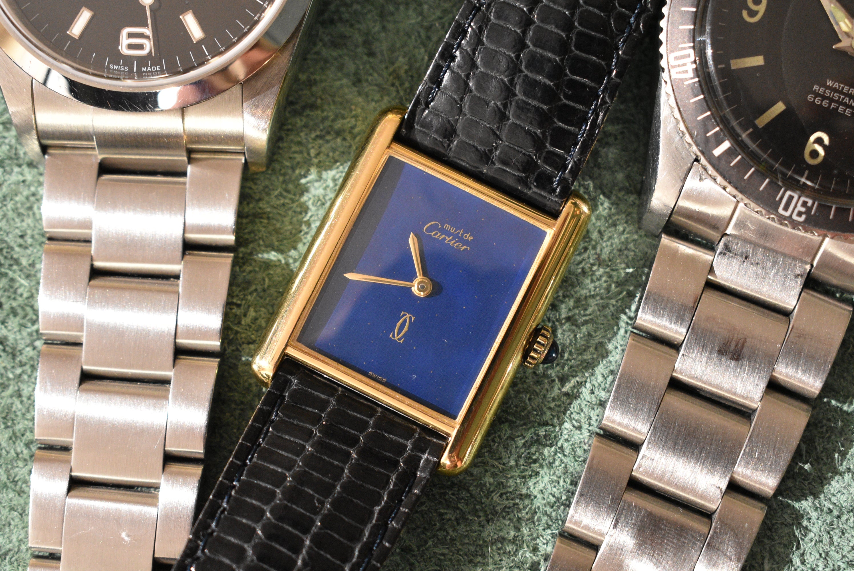 A timeless staple, the Cartier Tank. A simple, time-only watch that can be worn anywhere and with anything. A design that has stayed true to what it started out to be. The Cartier tank deserves to be in every watch collection. Its size might be smaller than most watches, but that doesn't mean it doesn't look great on the wrist. This specific example is a great example of some of the more unique and fun dials Cartier released in the early era of the Must De Cartier Tank.