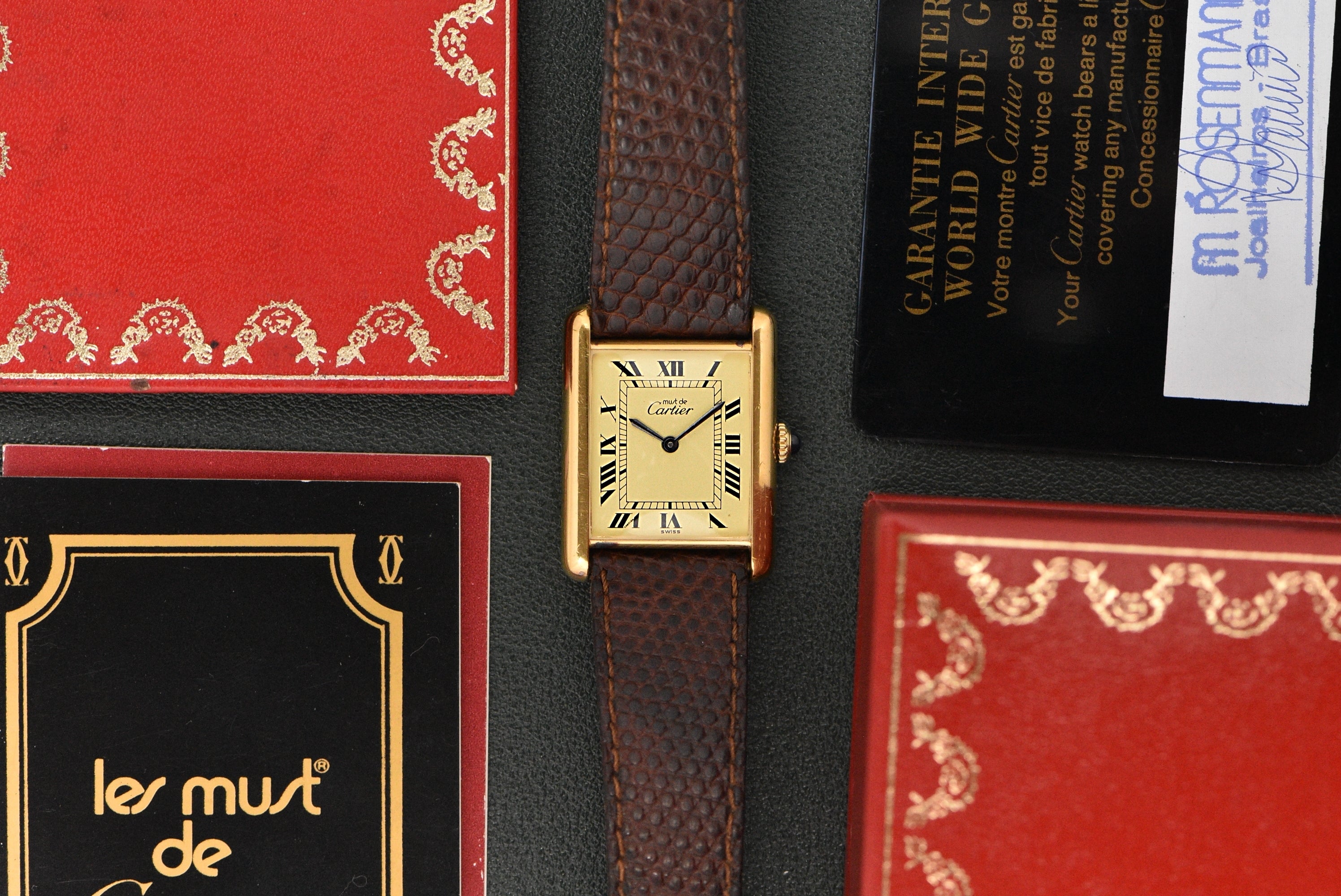 Cartier Tank 'Must De' Lemon Roman Complete Set - Rare Brazilian Hallmark